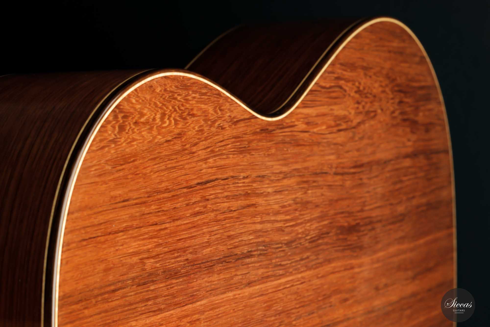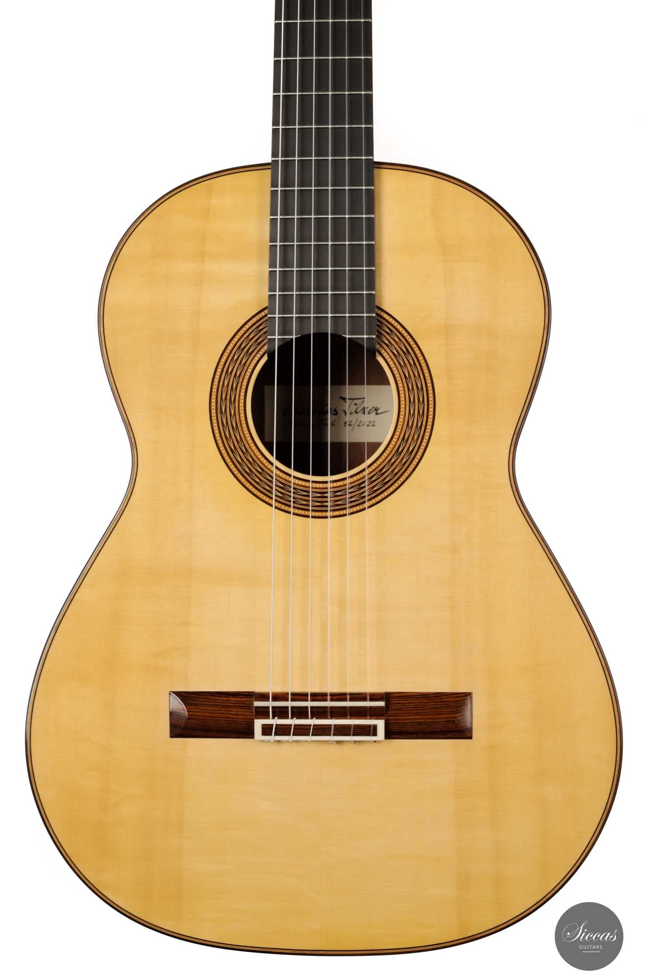 This Matthias Tilzer guitar, number 92 built in 2022, clearly shows his decisive goal and concept. It has a remarkable build quality, with immaculate execution on every detail. Moreover, it plays effortlessly, with smooth, round trebles accompanied by deep, strong basses. For the one looking for the pure richness of sound, this is definitely the guitar to look at.