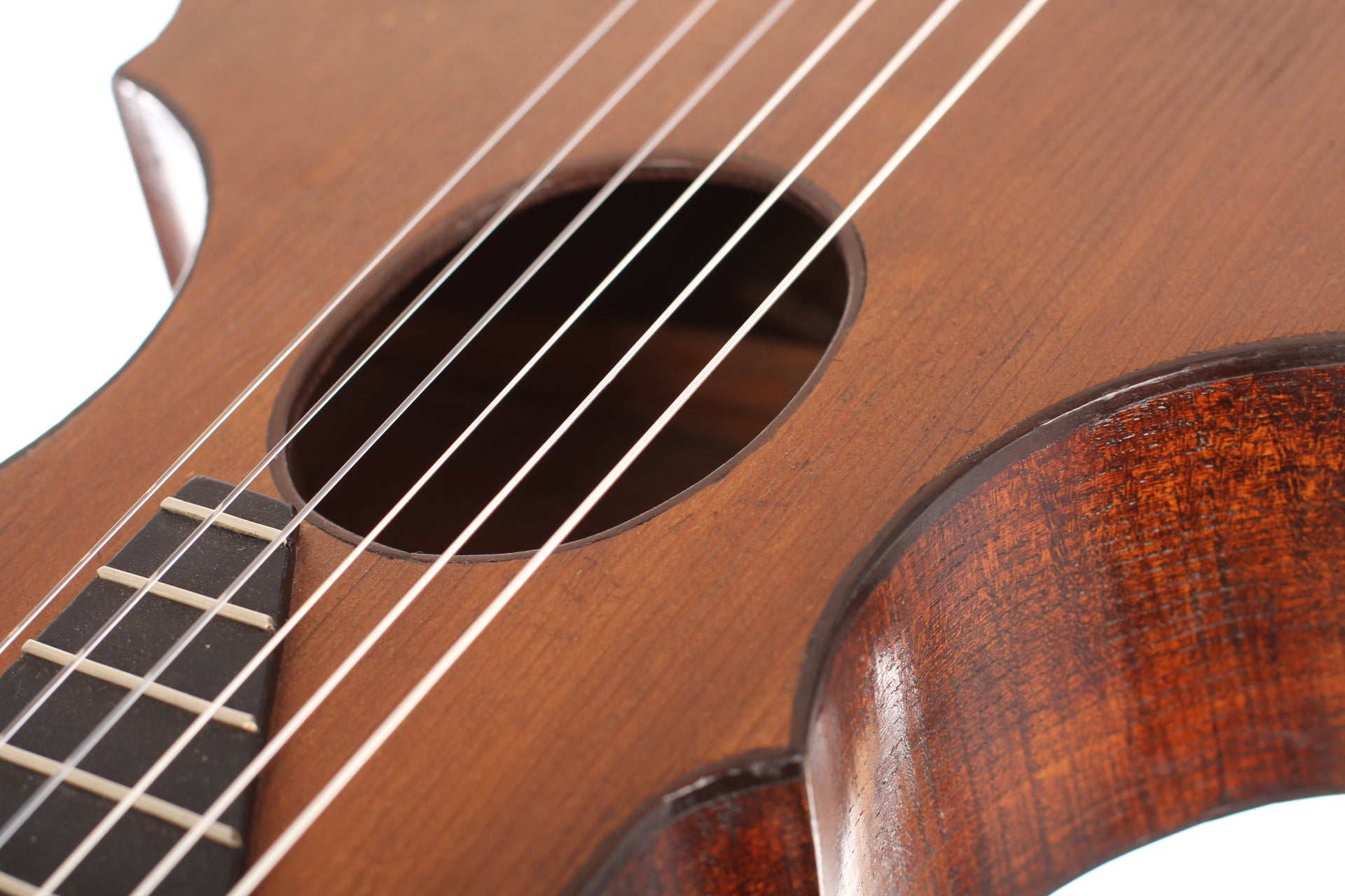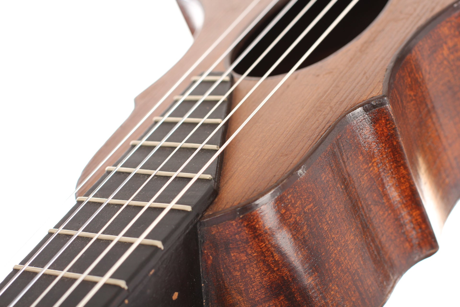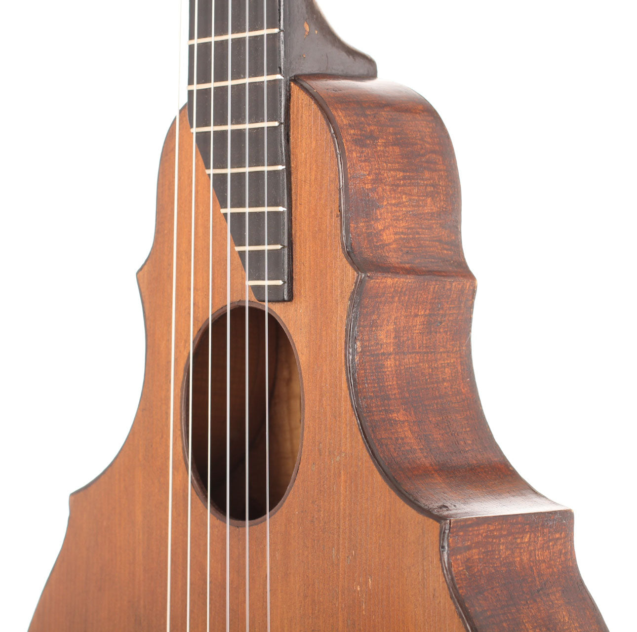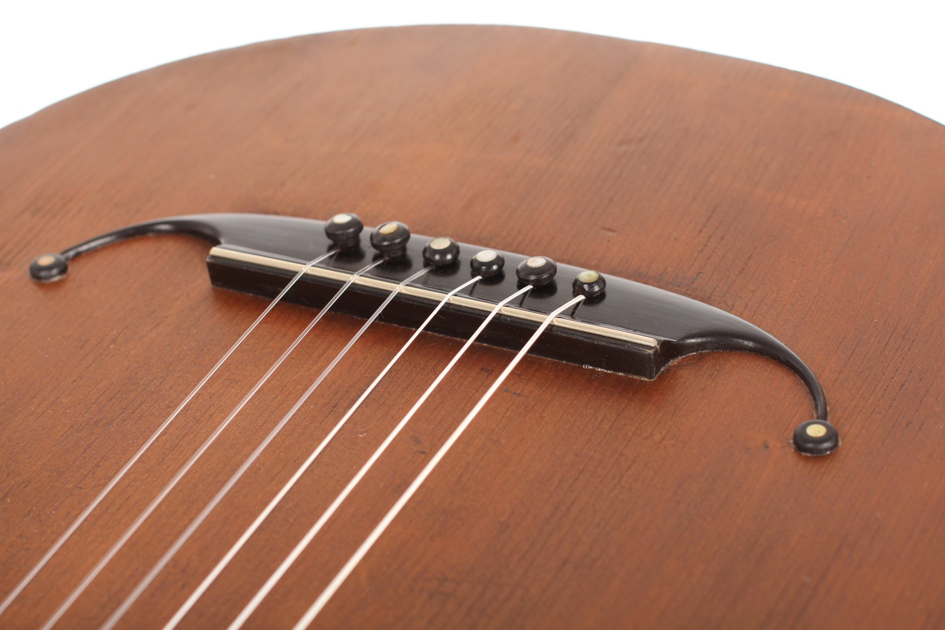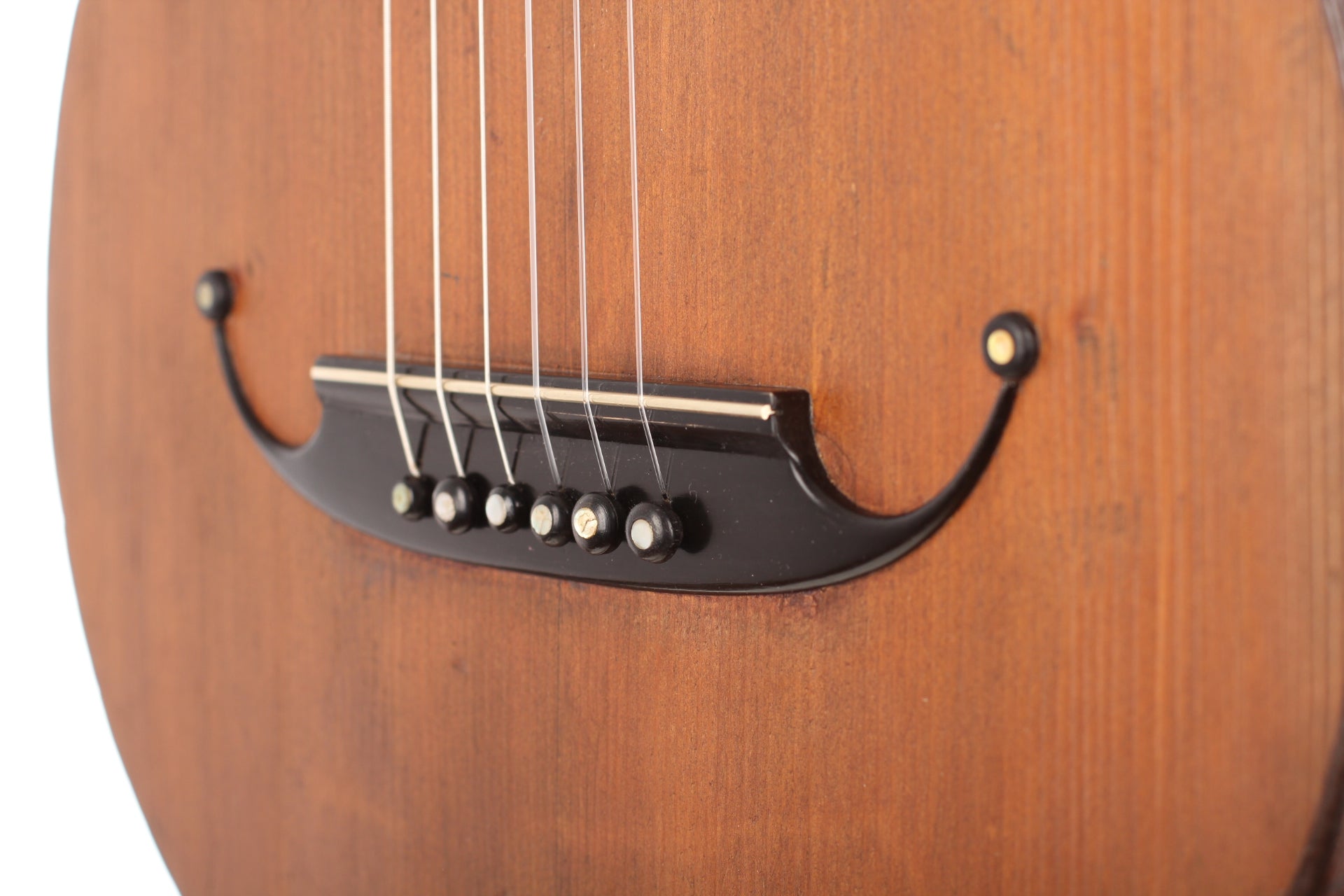 This guitar comes from the Max Amberger workshop and was manufactured in 1923. Max Amberger himself had lived from 1838 until 1889 and was a Munich instrument maker. His company, which was founded around 1860, concentrated mainly on the construction of violins, guitars and zithers. After his death his son, Henry Amberger, took charge of his father’s company and later, when the son died as well, H. Amberger’s widow continued to operate the business. In the year 1921 the company was taken over by Hermann Hauser ® I. The top of this wappen guitar is made of German spruce wood. The bridge is not original. The two-piece back and the sides are made of beech wood. A hardshell case is included.
