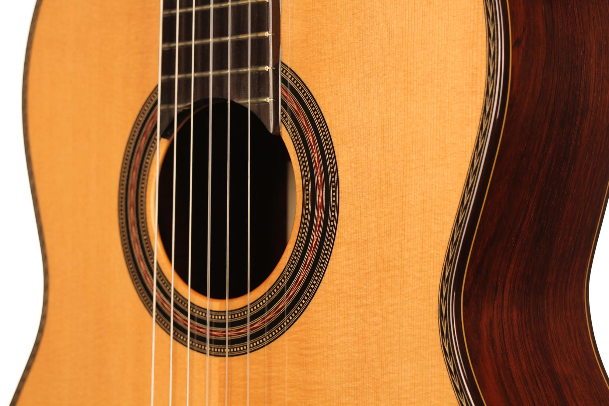 The classical guitar, with its soft nylon strings and characteristic timbre, has become a symbol of chamber music, Spanish tradition, and concert repertoire. Its modern form was shaped by Antonio de Torres in the 19th century, setting the standard for the body, fan bracing, and the 65-centimeter scale length that are still used today. Instruments in this category open up a rich palette from the refined Romantic miniatures of Tárrega to the majestic concertos of Rodrigo. Here you will find guitars that preserve historical continuity and at the same time inspire new interpretations.Look all products of the collection -