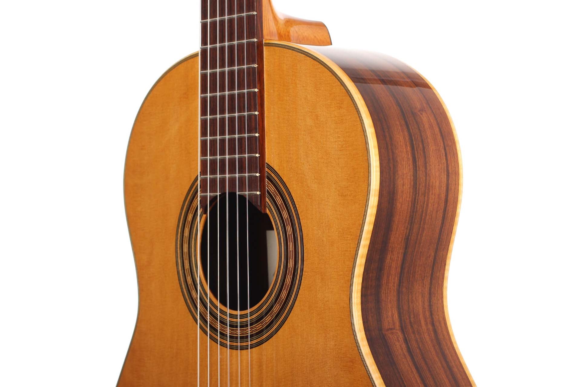 The classical guitar, with its soft nylon strings and characteristic timbre, has become a symbol of chamber music, Spanish tradition, and concert repertoire. Its modern form was shaped by Antonio de Torres in the 19th century, setting the standard for the body, fan bracing, and the 65-centimeter scale length that are still used today. Instruments in this category open up a rich palette from the refined Romantic miniatures of Tárrega to the majestic concertos of Rodrigo. Here you will find guitars that preserve historical continuity and at the same time inspire new interpretations.