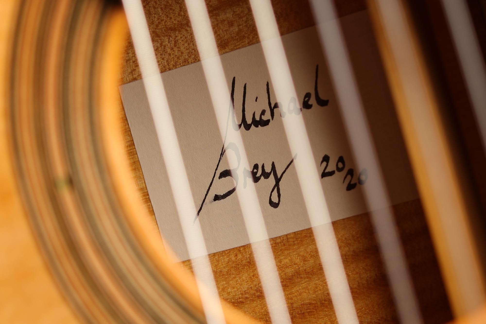 Michael Brey, born in 1966, initially learned his craft from Peter Barton in the years 1994 to 1996. Nowadays he lives and works in the beautiful Chiemgau region of Bavaria and has completely dedicated himself to the traditional Spanish guitar in the style of Antonio de Torres and Santos Hernandez, without just copying them, however. A distinctive feature of his guitars is a stabilizing brace between the heel of the neck and the end block, which reduces the tension on the soundboard and the back in order to enhance the sustain.