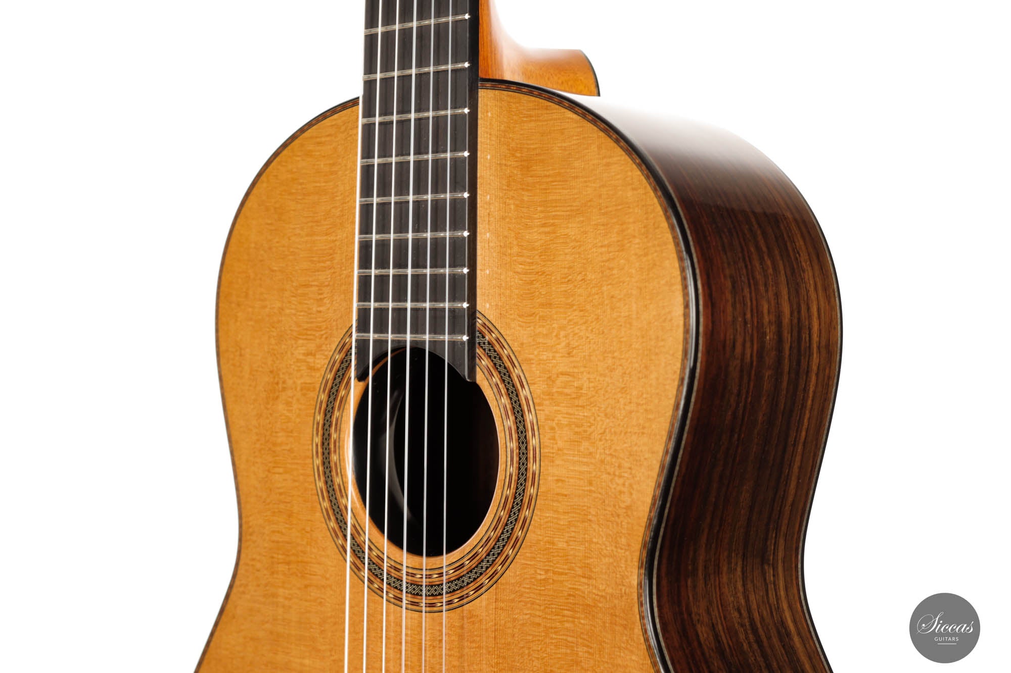 This instrument is beyond amazing, and this guitar will bring Michel Belair's career as a guitar maker to the next level. Bathed in the velvety shadows of sound, the instrument's dark, warm, and rounded tone envelopes listeners, mercifully concealing nail imperfections even after the most grueling concert programs. It is one of the most effortlessly playable instruments we've ever had the privilege to encounter. Given that numerous prominent figures in the classical guitar world have ordered Belair guitars, it's unsurprising if his waiting list expands significantly in the coming years.
