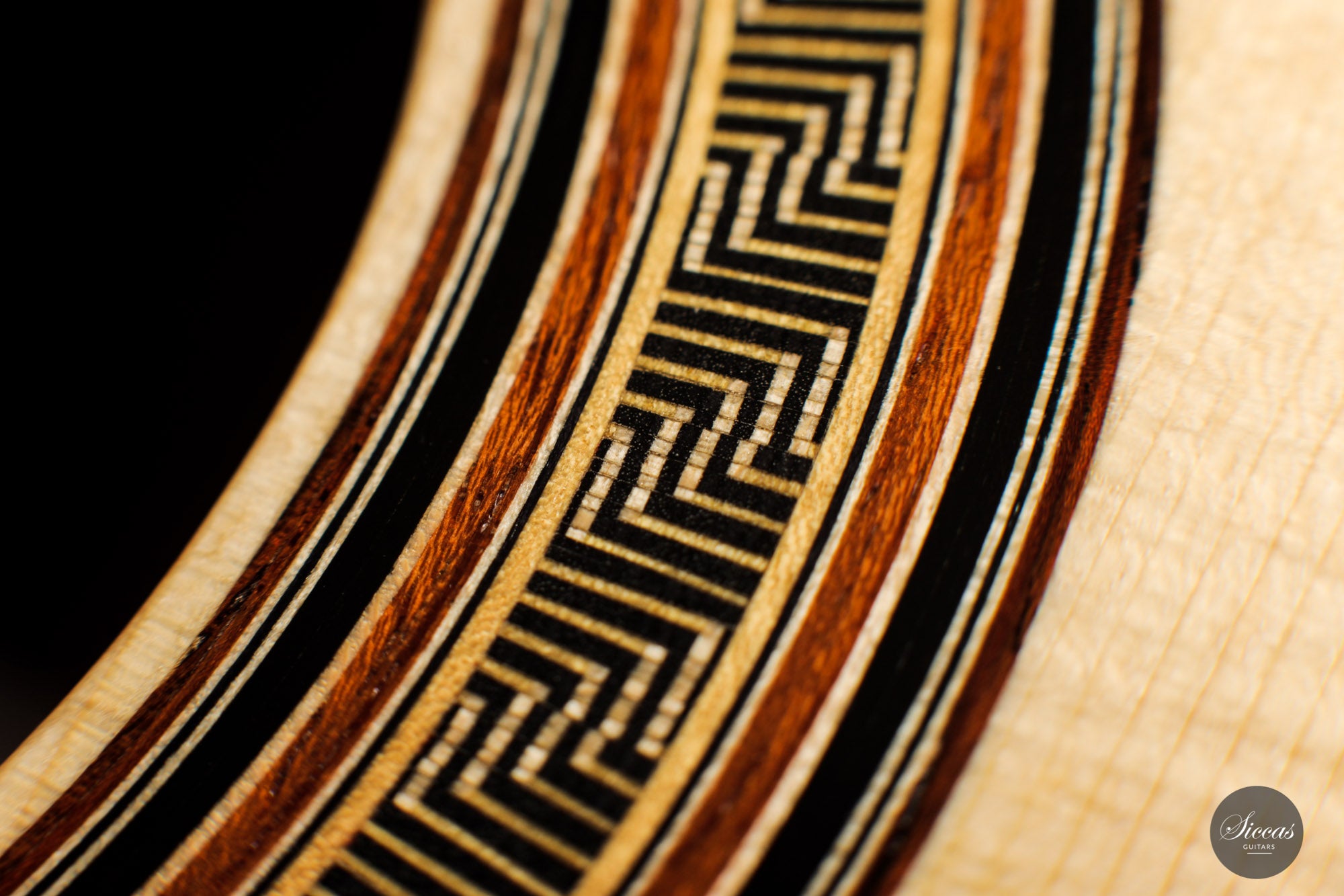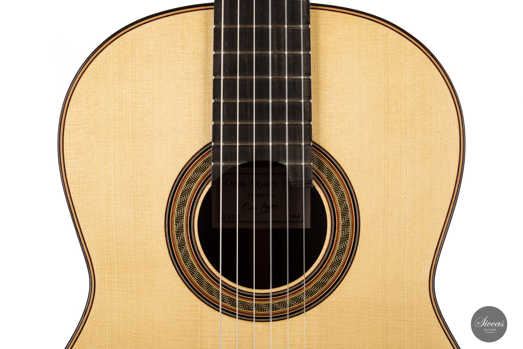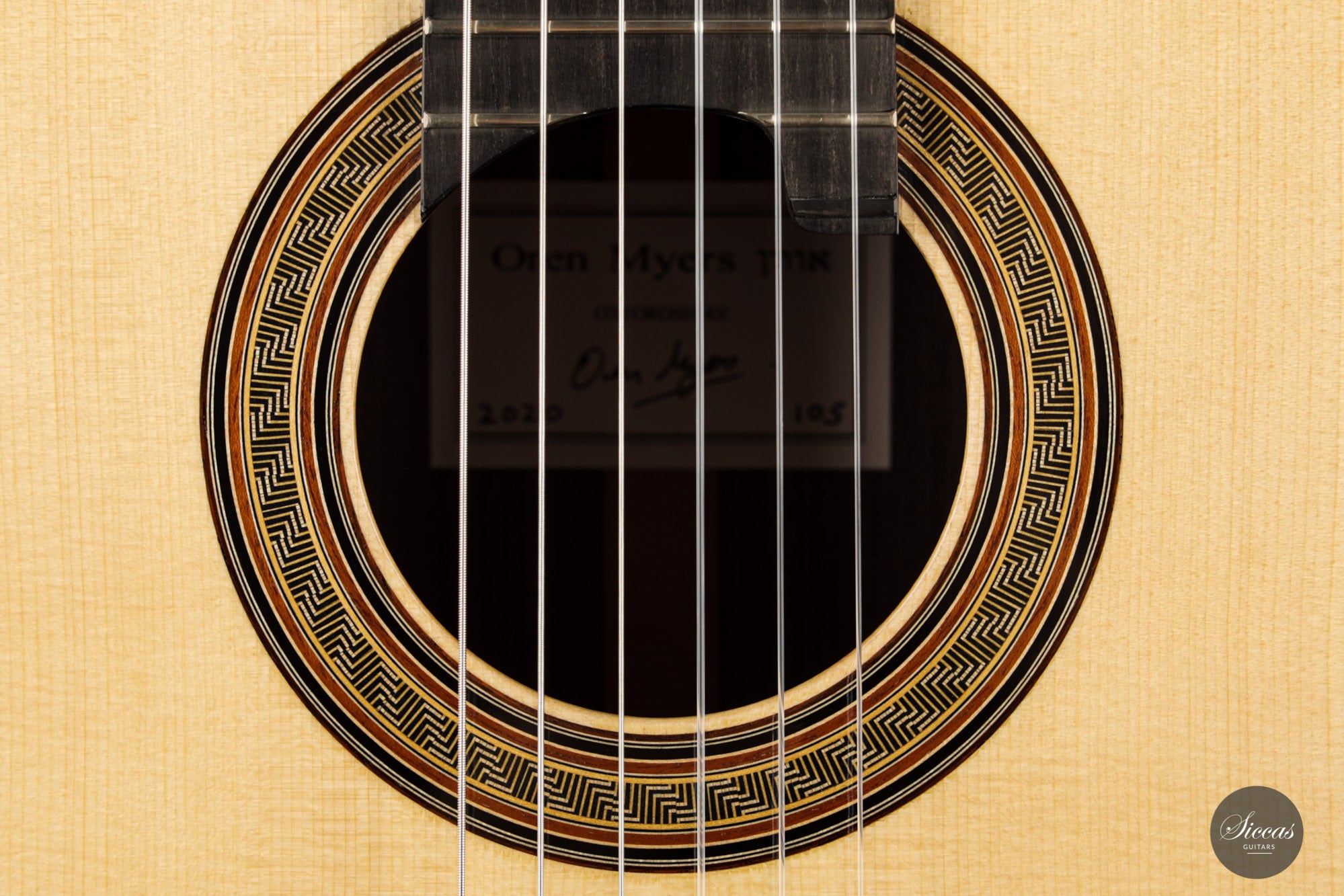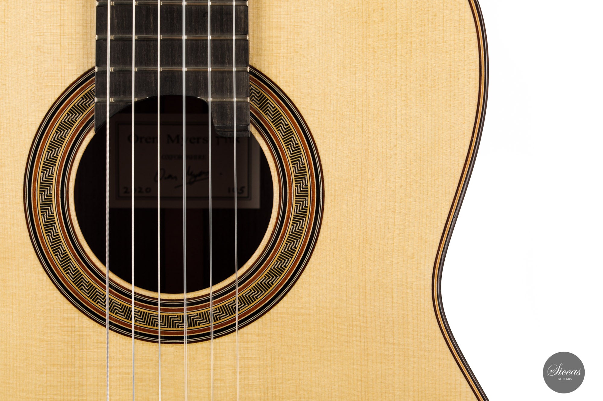 The design of Oren Myers' guitars and the construction methods he uses fall into the broad category of "traditional" guitars. Although he works within established parameters, he does not copy any particular guitar maker or construction method. Each tonewood is unique and therefore the exact thickness of the components of each guitar is adjusted accordingly. The body shape is the result of his plantilla and the decorative elements of the guitars are also created by him.