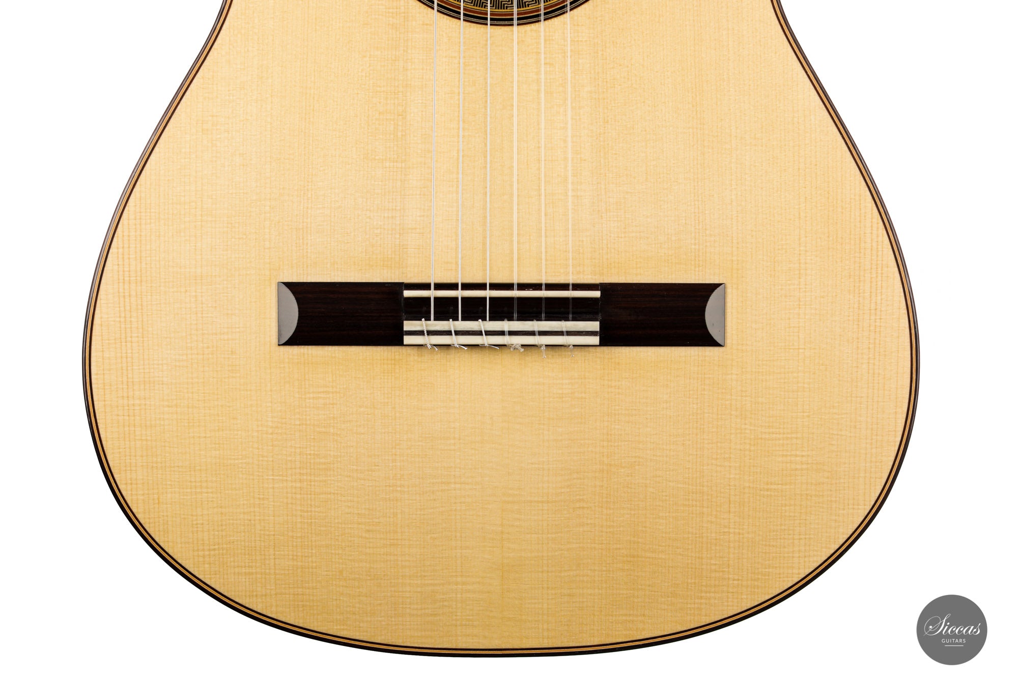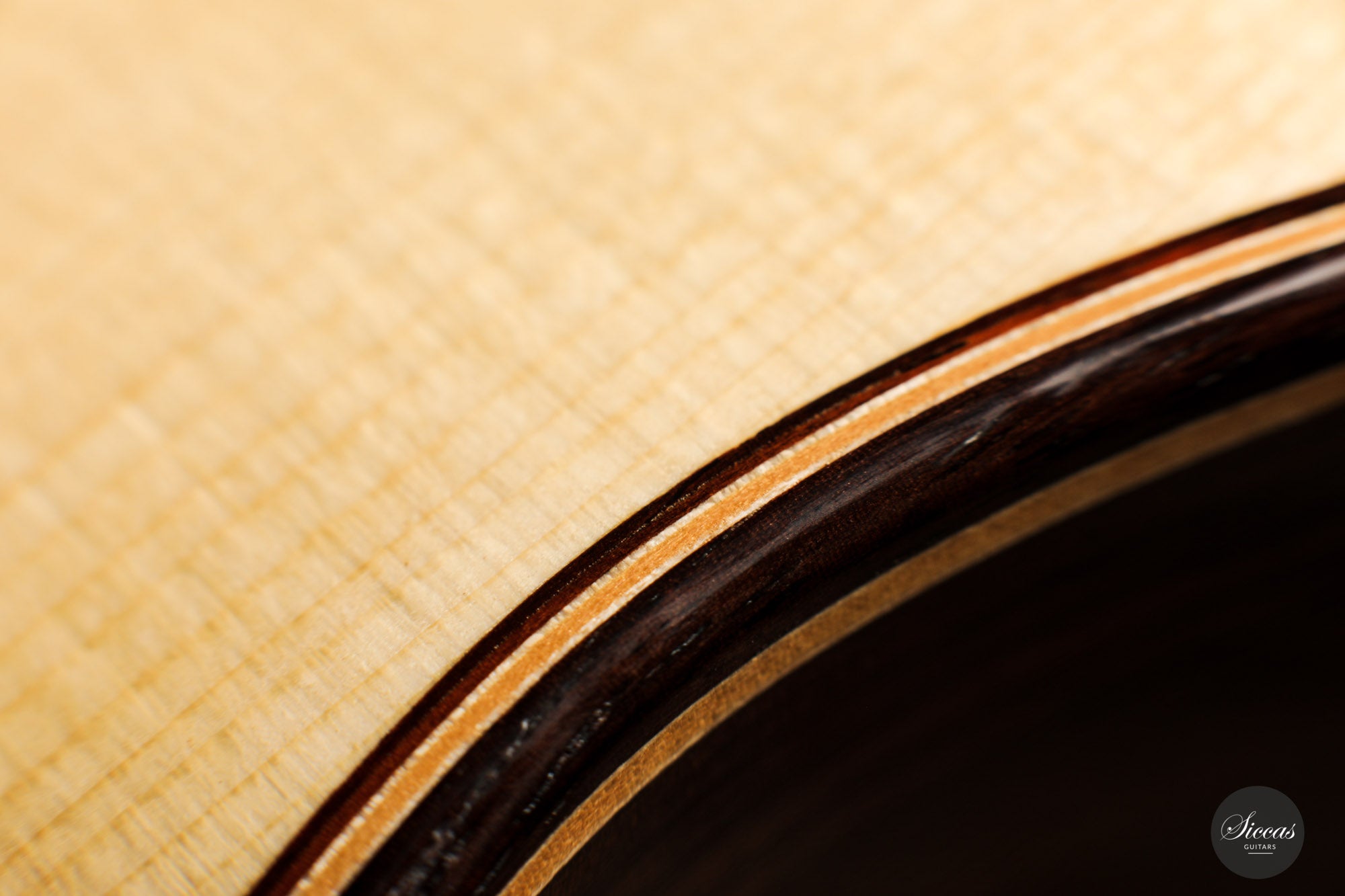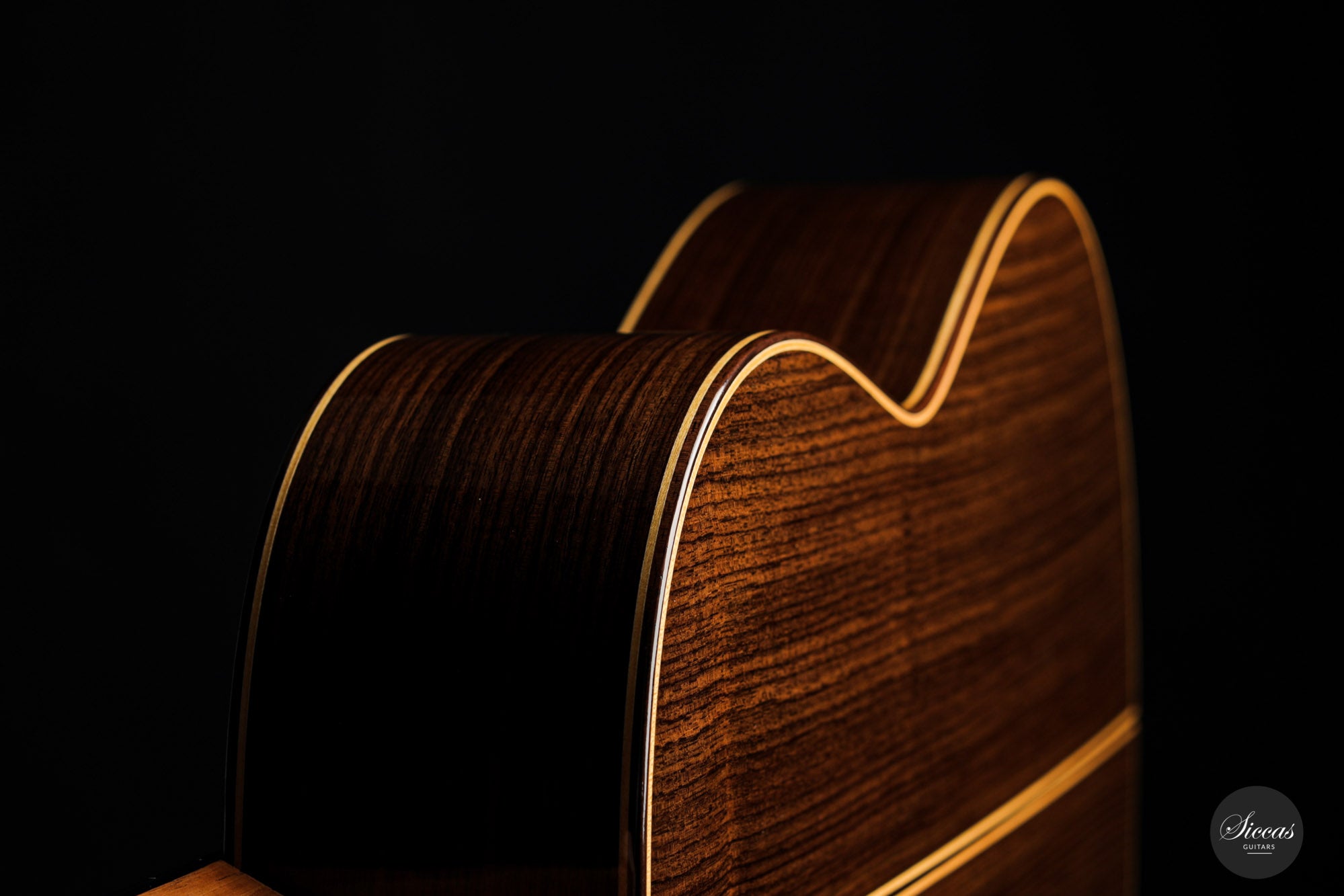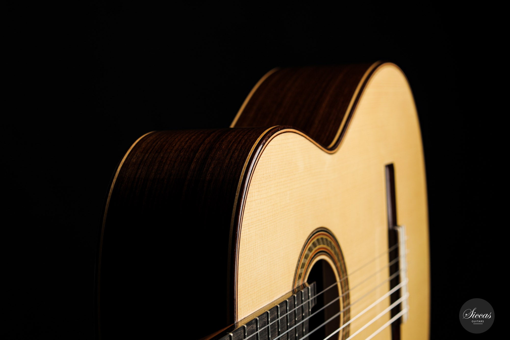 The design of Oren Myers' guitars and the construction methods he uses fall into the broad category of "traditional" guitars. Although he works within established parameters, he does not copy any particular guitar maker or construction method. Each tonewood is unique and therefore the exact thickness of the components of each guitar is adjusted accordingly. The body shape is the result of his plantilla and the decorative elements of the guitars are also created by him.