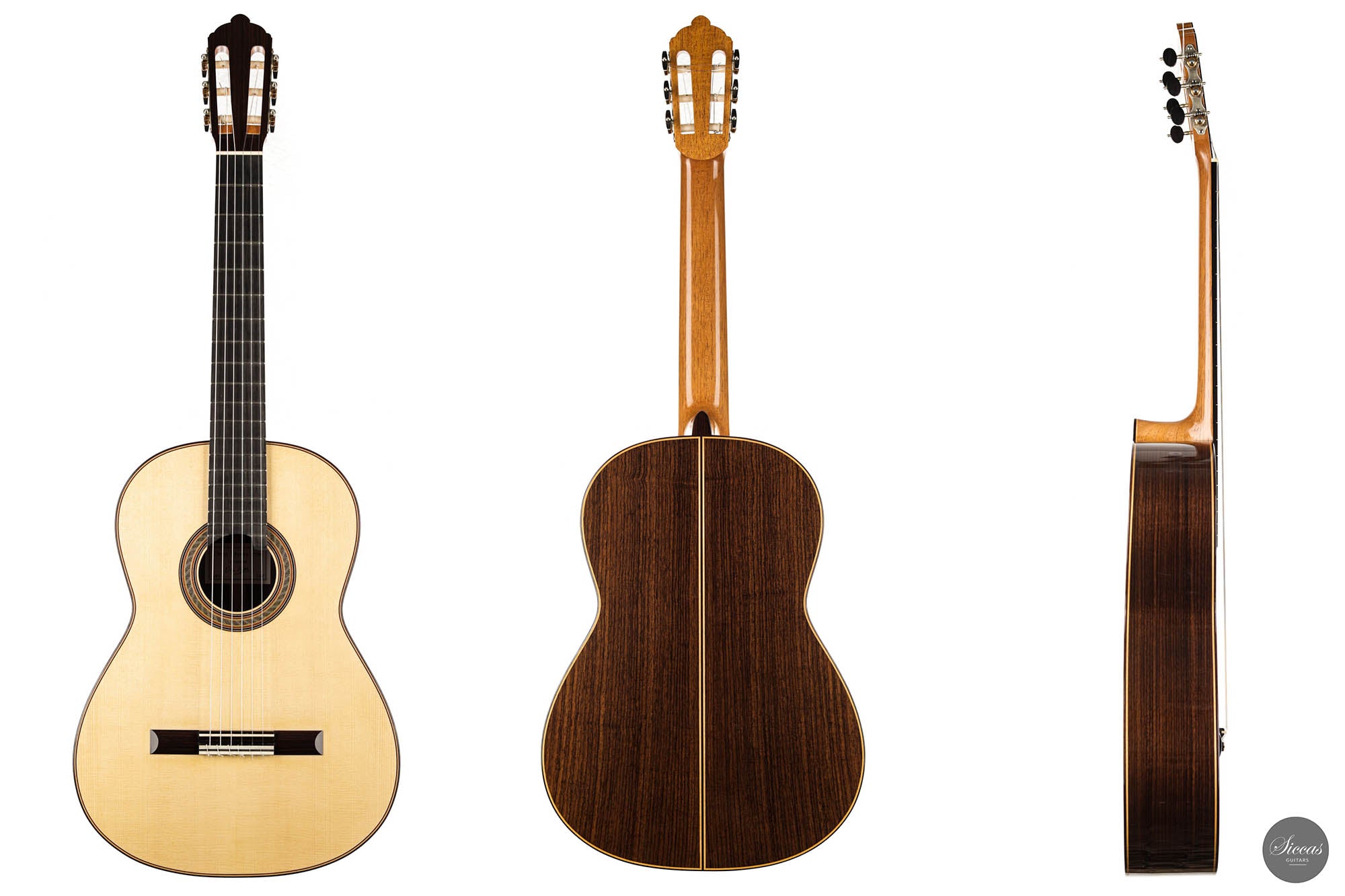 The classical guitar, with its soft nylon strings and characteristic timbre, has become a symbol of chamber music, Spanish tradition, and concert repertoire. Its modern form was shaped by Antonio de Torres in the 19th century, setting the standard for the body, fan bracing, and the 65-centimeter scale length that are still used today. Instruments in this category open up a rich palette from the refined Romantic miniatures of Tárrega to the majestic concertos of Rodrigo. Here you will find guitars that preserve historical continuity and at the same time inspire new interpretations.