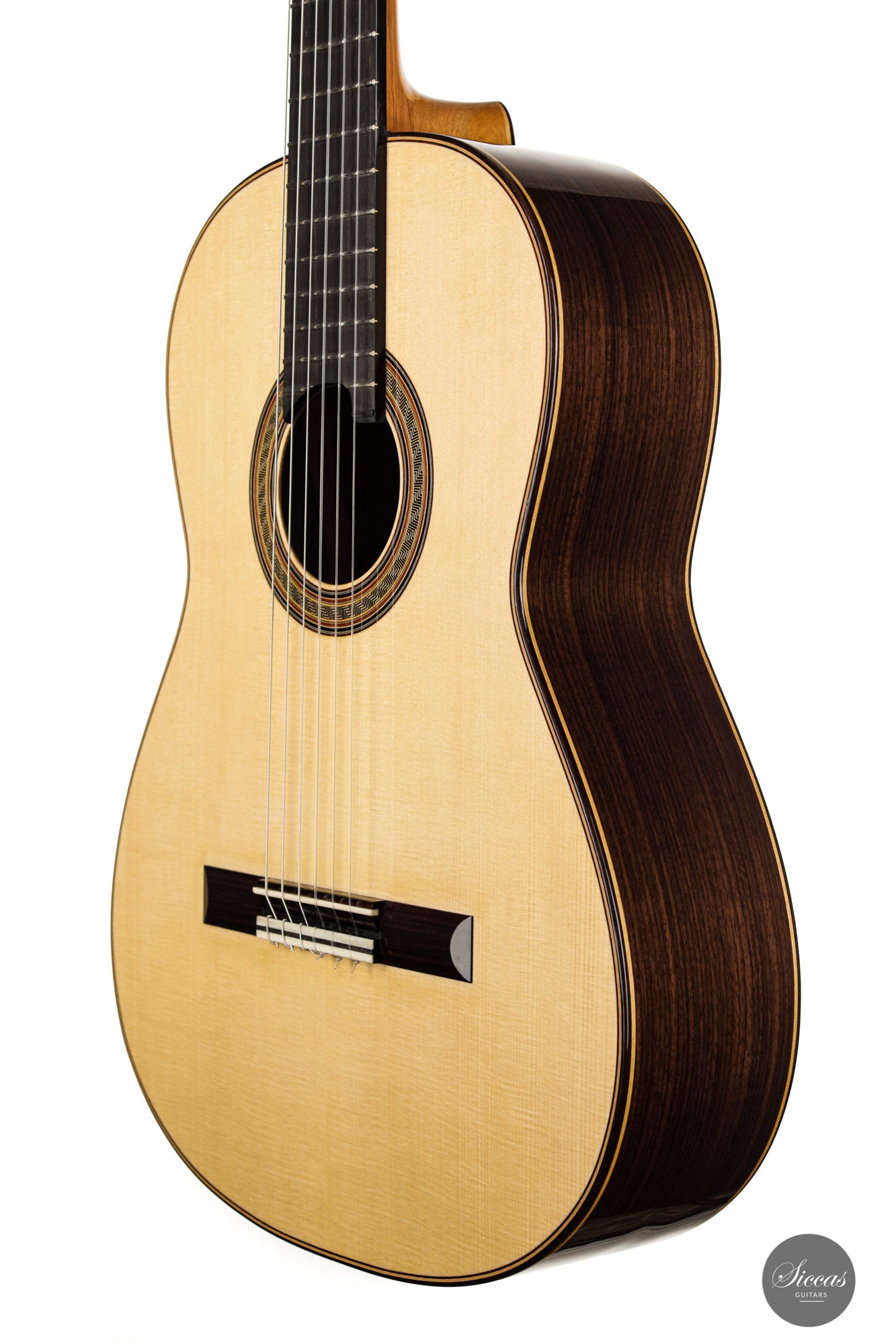 The head is inspired by the lines of a painting by Picasso, "Woman with yellow hair", and the rosette is inspired by the motif of an antique Greek vase, which is housed in the British Museum. When playing this gorgeous instrument, one will experience a fast response with a refined and coreful tone that fills the entire room. Sweet singing trebles paired with a snappy bass response makes for a surprisingly powerful guitar. Sweet singing trebles paired with a snappy bass Oren Myer's guitar impresses with its excellent build quality and an overall simple but tasteful and elegant design.This is a true concert guitar that meets even the highest standards in the classical guitar repertoire.