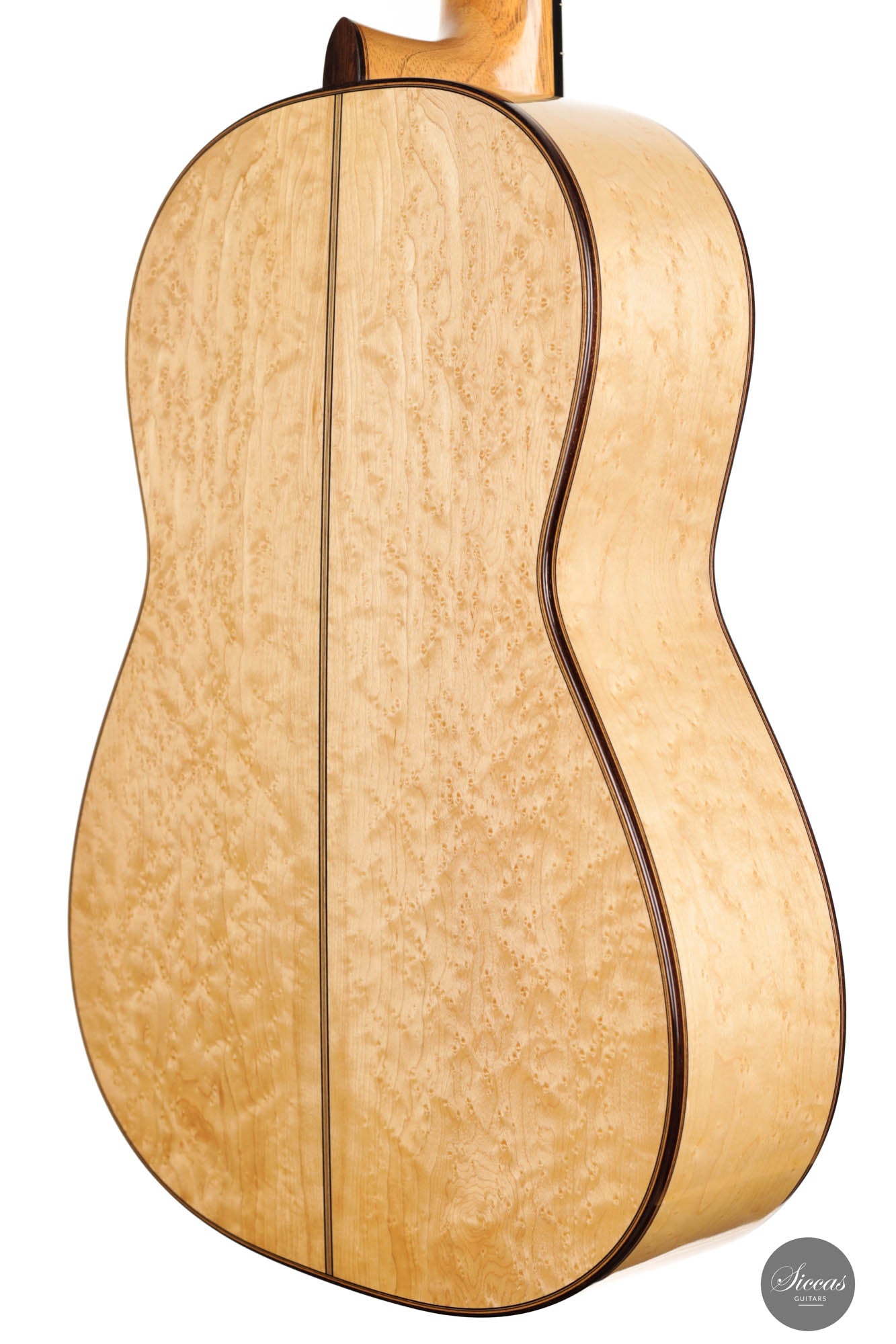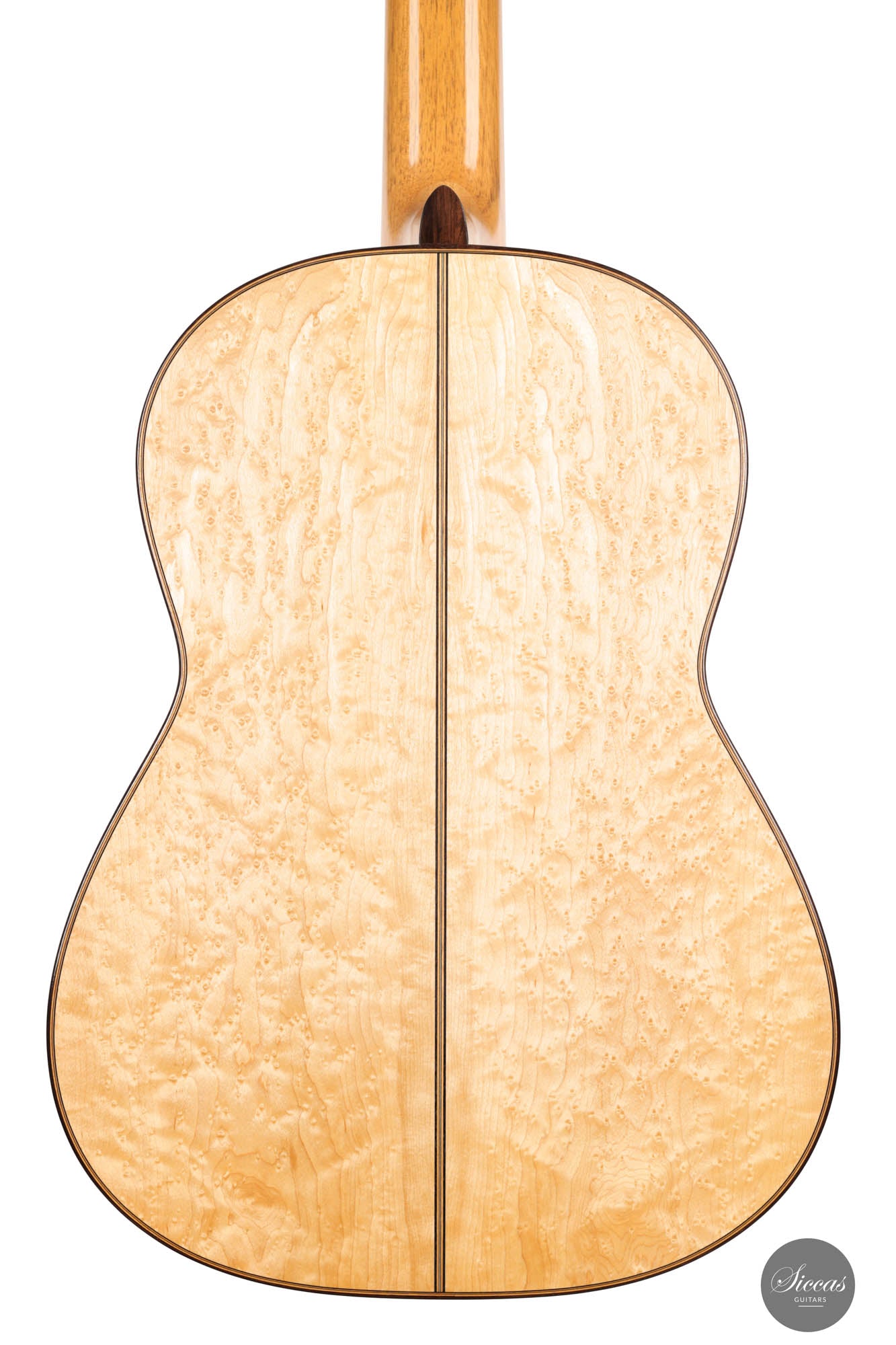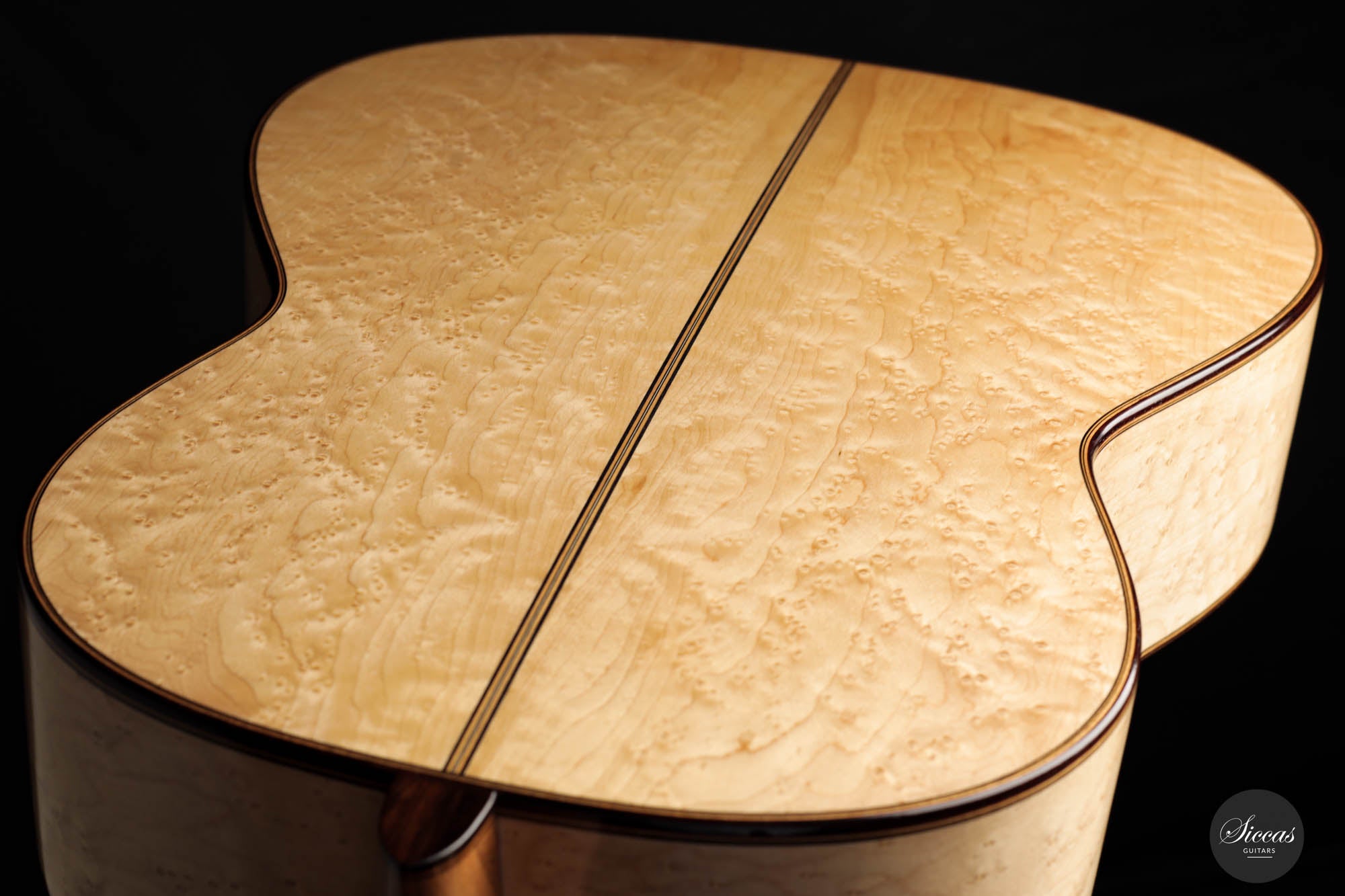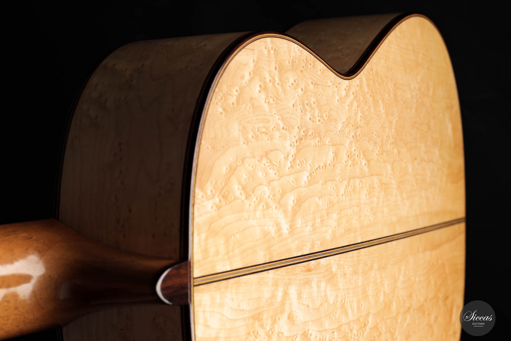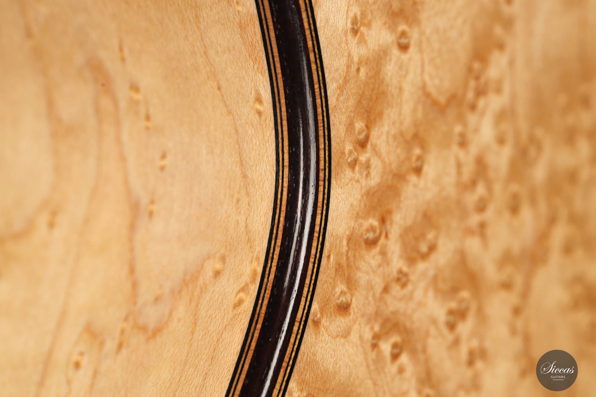 Beyond its visual appeal, the Oren Myers No. 126 is acoustically remarkable. With its spruce soundboard, it promises a tone that's both bright and responsive. The stunning bird's eye maple composing its back and sides further amplifies its unique visual texture and aesthetic allure.
