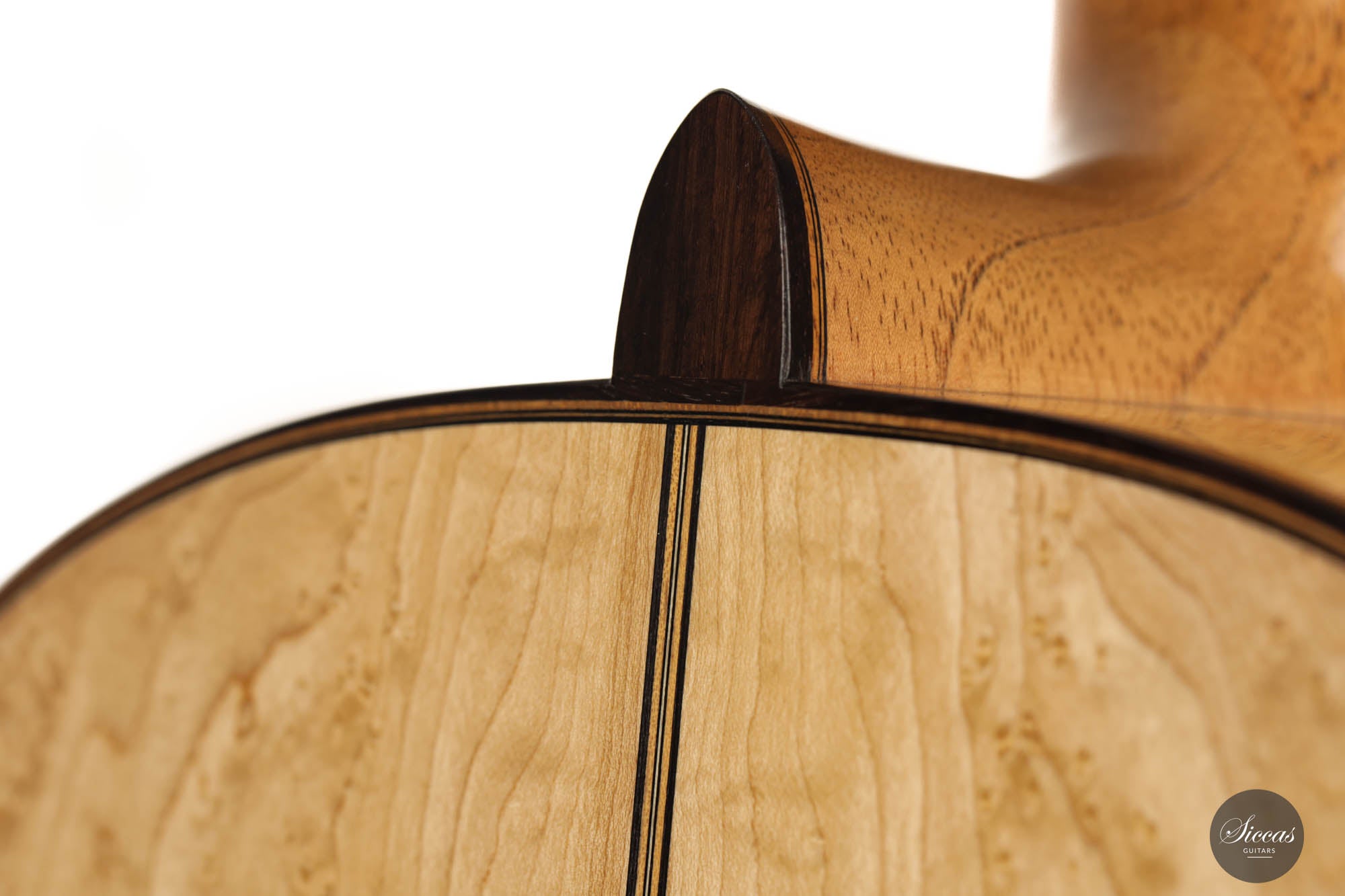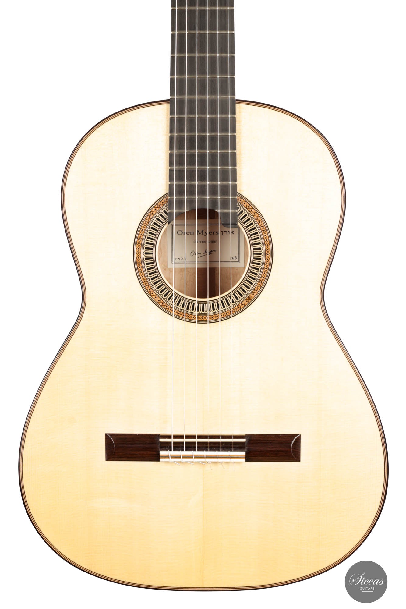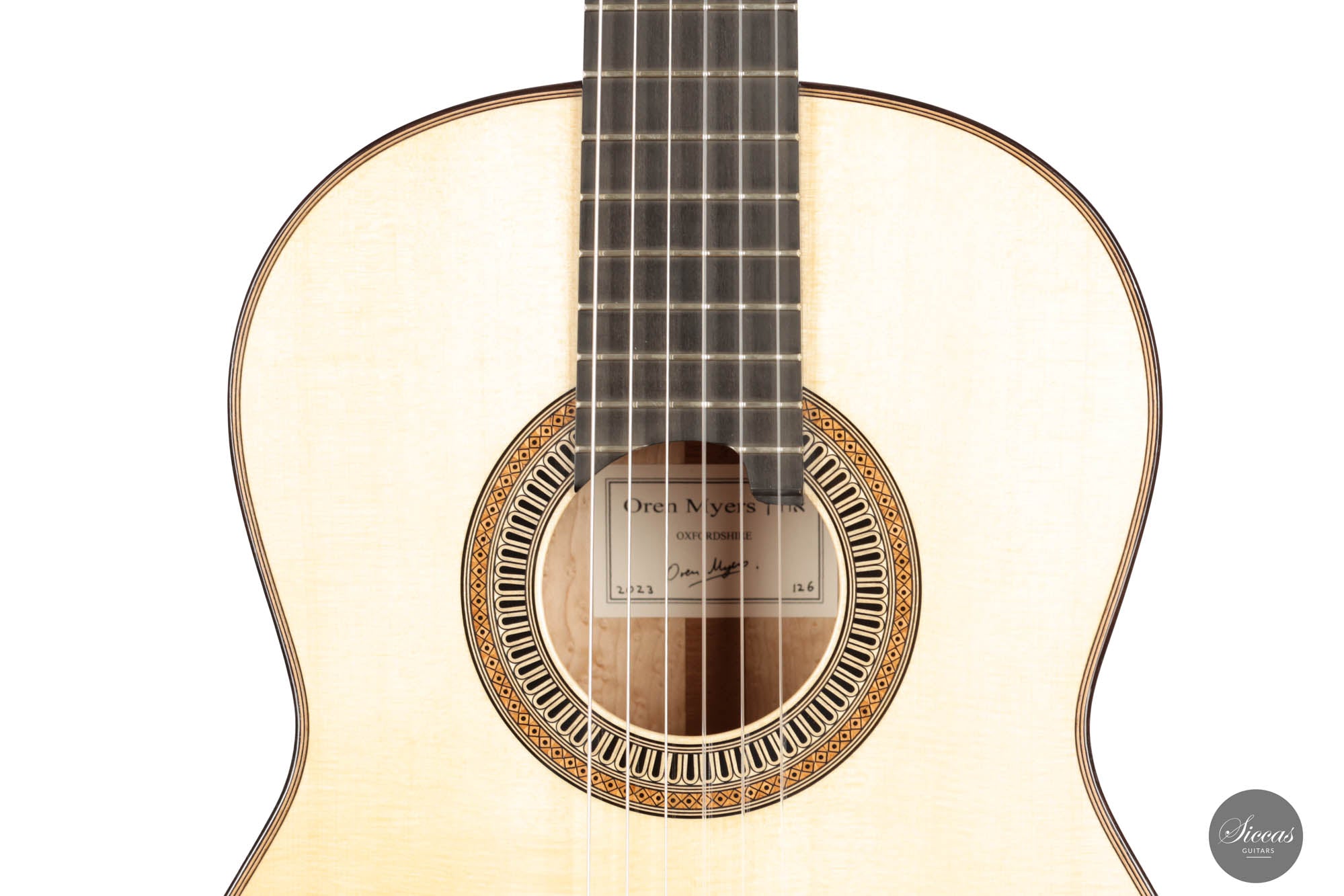 The design of Oren Myers' guitars and the construction methods he uses fall into the broad category of "traditional" guitars. Although he works within established parameters, he does not copy any particular guitar maker or construction method. Each tonewood is unique; therefore, the exact thickness of the components of each guitar is adjusted accordingly. The body shape is the result of his plantilla and the decorative elements of the guitars are also created by him.