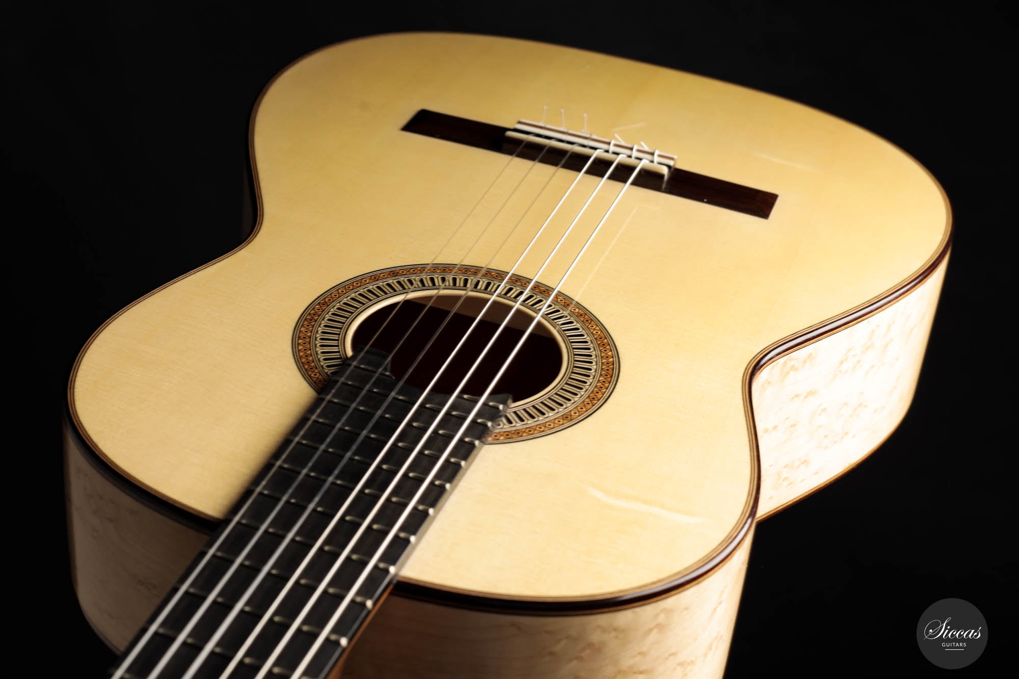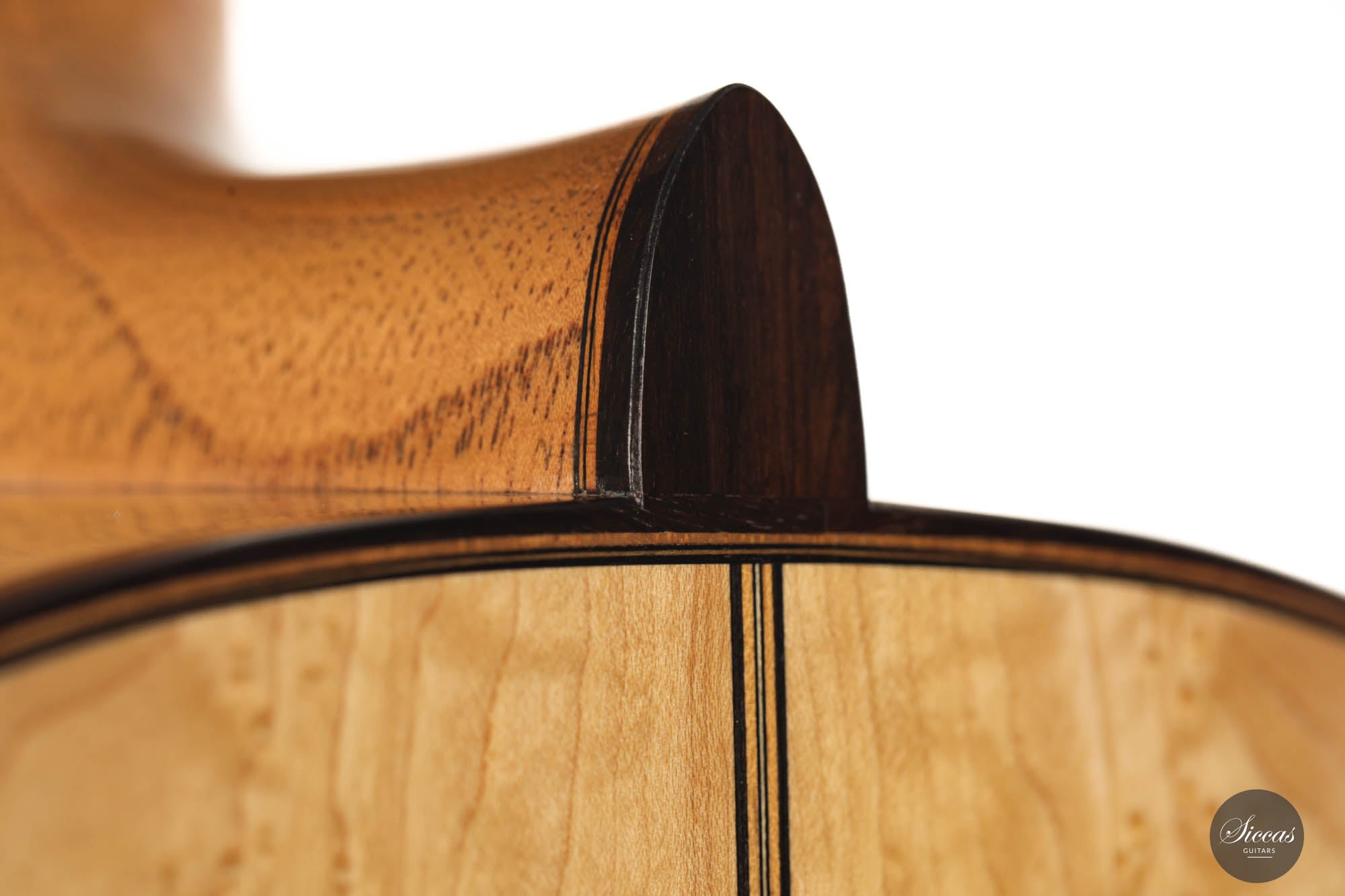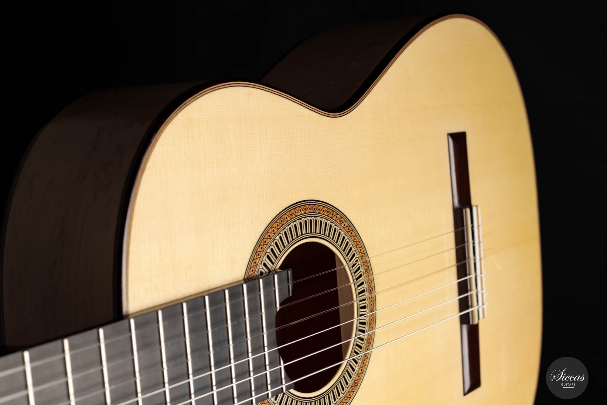 The design of Oren Myers' guitars and the construction methods he uses fall into the broad category of "traditional" guitars. Although he works within established parameters, he does not copy any particular guitar maker or construction method. Each tonewood is unique; therefore, the exact thickness of the components of each guitar is adjusted accordingly. The body shape is the result of his plantilla and the decorative elements of the guitars are also created by him.