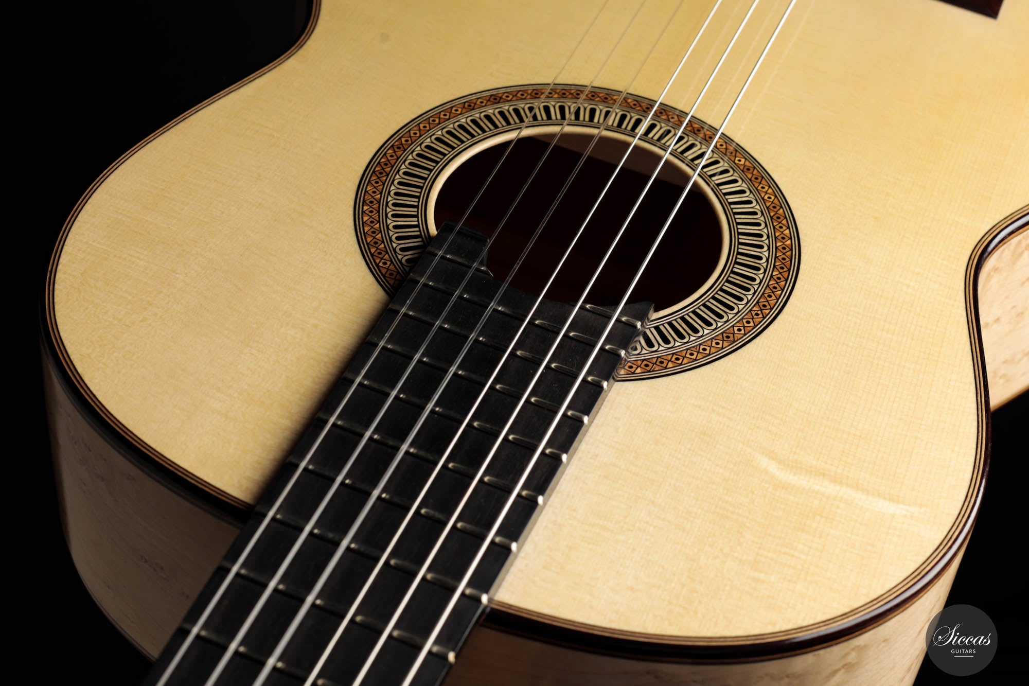 This exquisite instrument, marrying unparalleled craftsmanship with innovative design, stands as a testament to timeless elegance. Drawing design inspiration from Picasso's iconic "Woman with Yellow Hair" and the intricate patterns of an ancient Greek vase in the British Museum, this guitar transcends traditional boundaries, positioning itself as a masterpiece in the world of classical guitars.