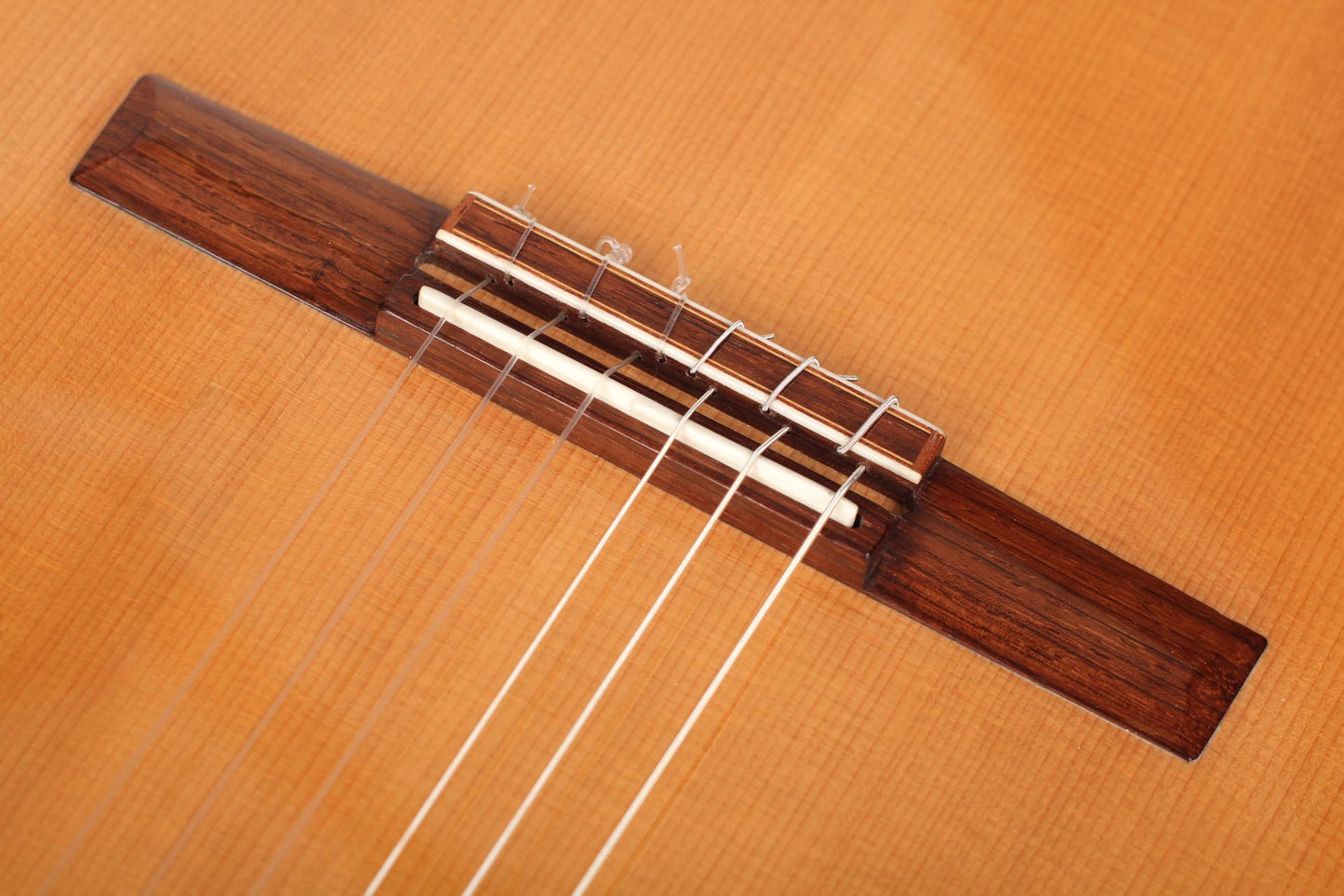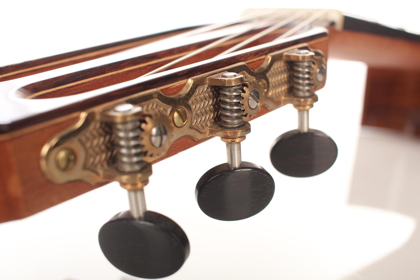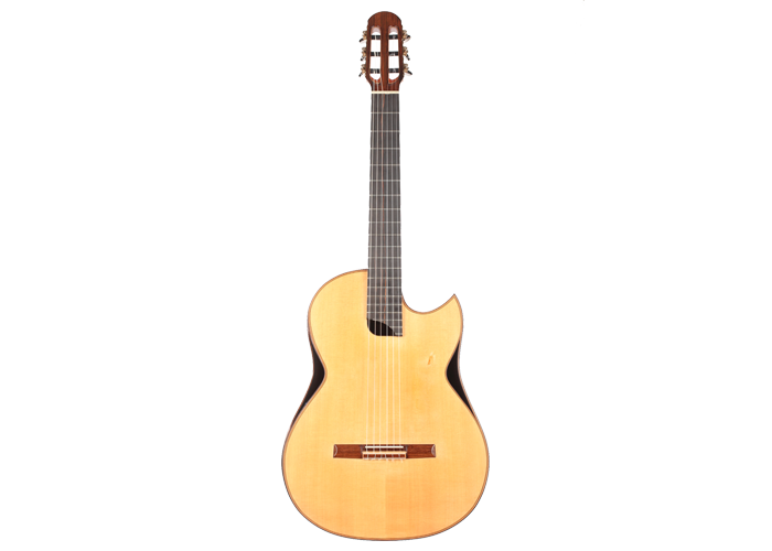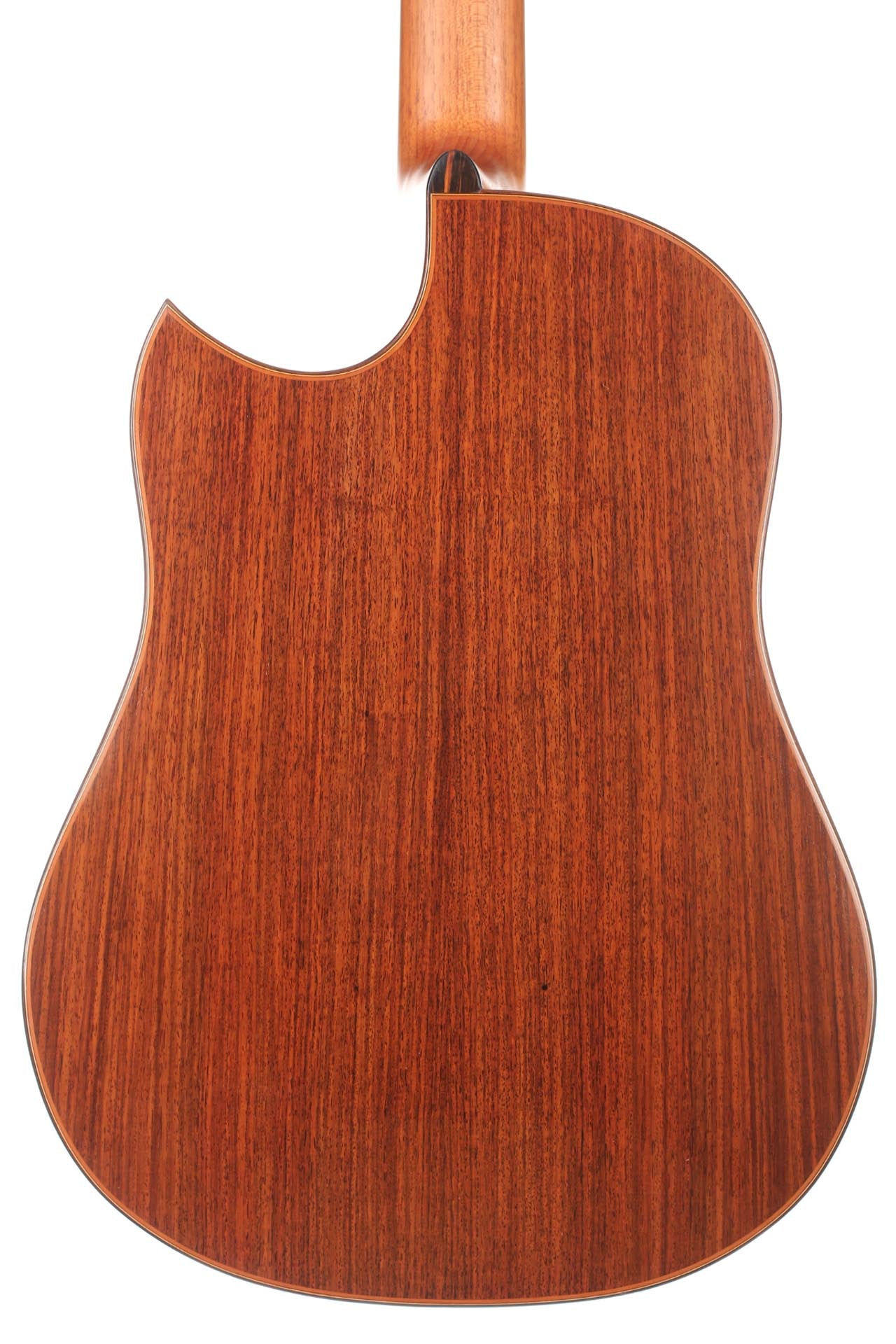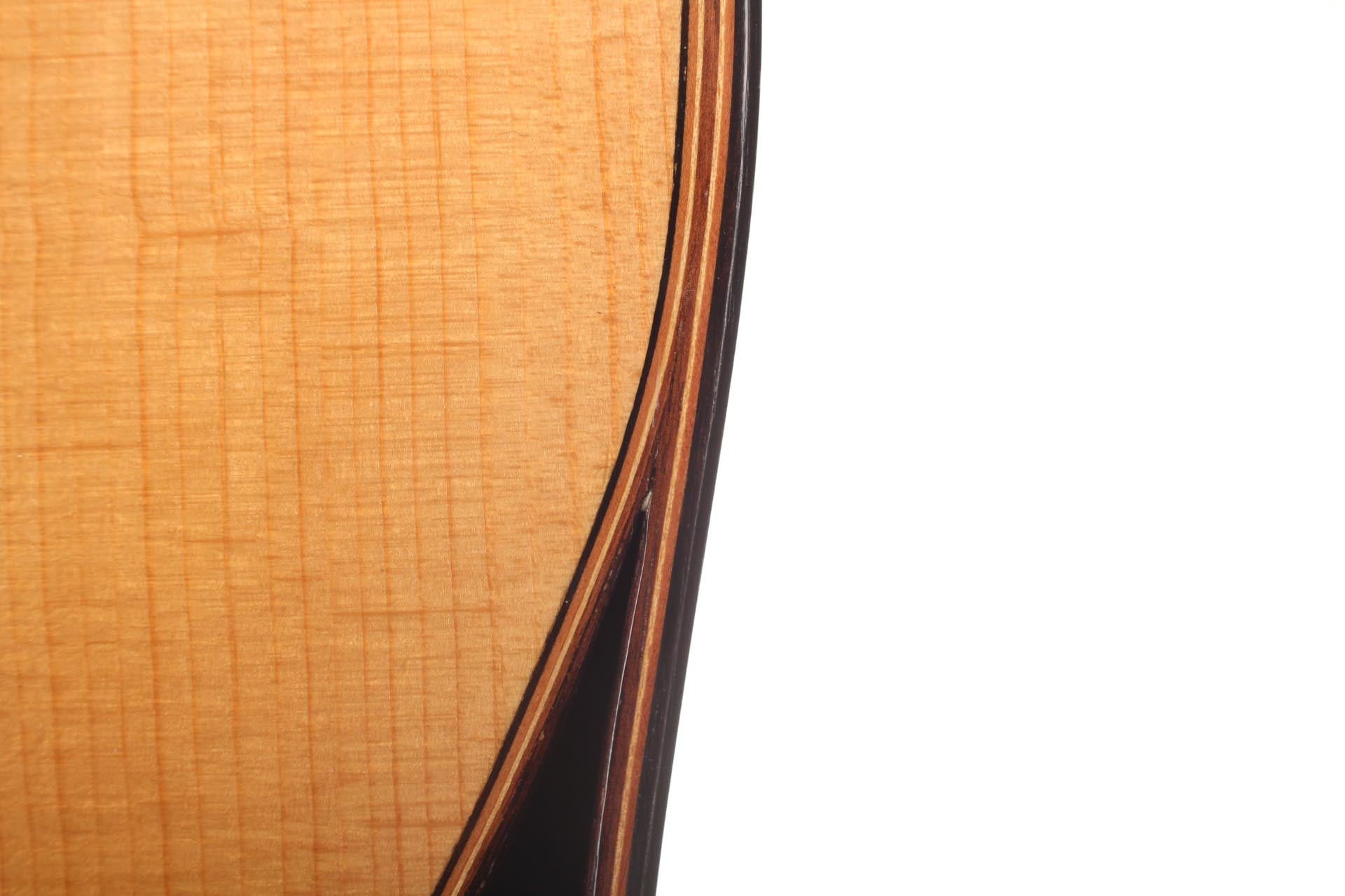 Every single one of Philipp's guitars is the product of a long, intensive process. All his knowledge and experience are integrated in the production of his high-quality instruments. This is why he never builds more than two guitars at the same time, so that he can concentrate on every detail. Since the sound of the instrument depends greatly on the type of material that is used, he uses only the best quality tone woods and no prefabricated parts at all. A guitar is not finished until it completely satisfies his demands for a clear and open sound with full, round basses, velvety facials, clear brilliant trebles, moduled timbre, a singing, sustained tone and responsiveness. Only when all these criteria have been met in the finished guitar he is satisfied. The results are melodious, unique pieces and professional instruments for guitarists. His work is based on the Spanish Granada tradition of guitar making using time-tested techniques. The methods incorporate an analysis of historic guitars and modern insights into acoustic processes and the wishes of today's musicians. Whilst he's very traditional, he is also open to experiments. He tries to combine traditional instrument building skills with modern methods in order to develop the sound of the guitar for the future. This guitar has three sound holes, two near the sides on the soundboard and one at the end of the fretboard. It has a double-soundboard that is made of cedar. Back and sides are made of Indian Rosewood. The tuning machines are made by Sloane. The pickup system (piezo and microphone) in made by AER. You can see light signs of repair on the top. A hard-shell case is included.