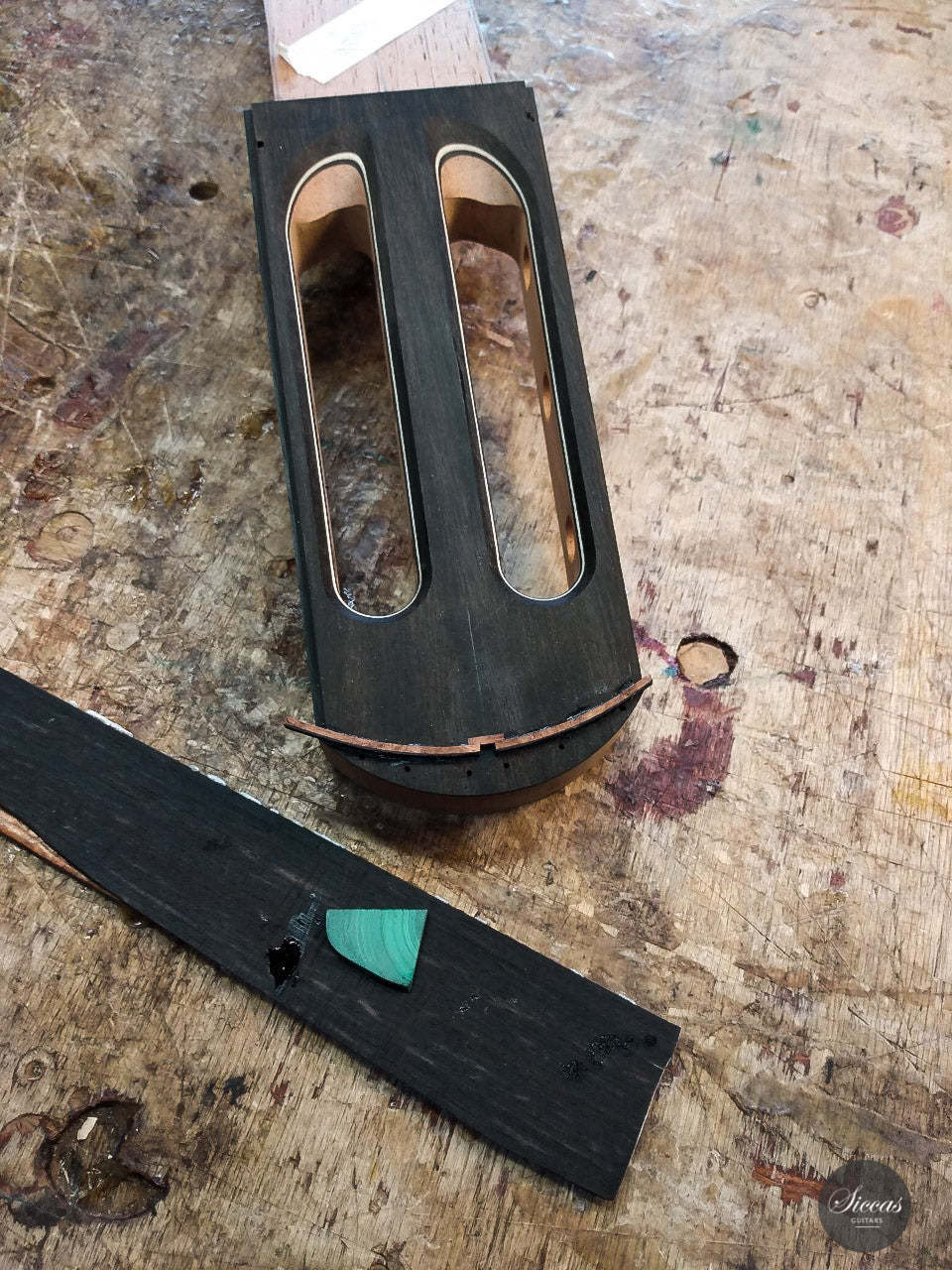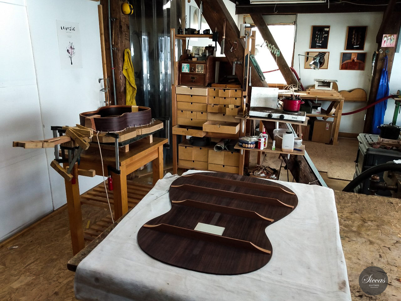 Every single one of Philipp’s guitars is the product of a long, intense process. He uses all his knowledge and experience to produce high quality instruments. Therefore, he never builds more than two guitars at the same time, so that he can concentrate on every detail. Since the sound of the instrument depends greatly on the type of material that are used, he uses only the best quality tone woods and no prefabricated parts at all. A guitar is not finished until it completely satisfies his demands for a clear and open sound with full and round basses, clear and brilliant trebles, modulated timbre, a singing, sustained tone and responsiveness. The results are melodious, unique pieces and professional instruments for guitarists. His work is based on the Spanish Granada tradition of guitar making using time-tested techniques. The methods incorporate an analysis of historic guitars and modern insights into acoustic processes and the wishes of today’s musicians. Whilst he is very traditional, he is also open to experiments. He tries to combine traditional instrument building skills with modern methods in order to develop the sound of the guitar for the future.