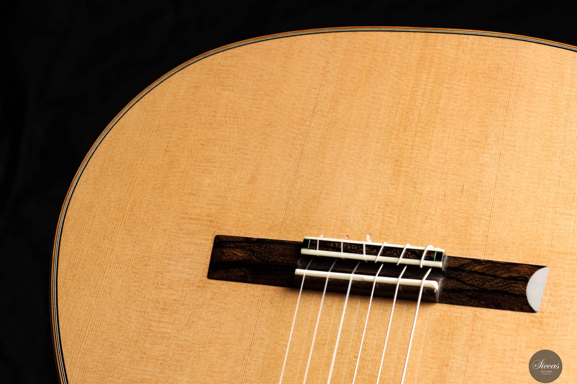 Every single one of Philipp’s guitars is the product of a long, intense process. He uses all his knowledge and experience to produce high quality instruments. Therefore, he never builds more than two guitars at the same time, so that he can concentrate on every detail. Since the sound of the instrument depends greatly on the type of material that are used, he uses only the best quality tone woods and no prefabricated parts at all. A guitar is not finished until it completely satisfies his demands for a clear and open sound with full and round basses, clear and brilliant trebles, modulated timbre, a singing, sustained tone and responsiveness. The results are melodious, unique pieces and professional instruments for guitarists. His work is based on the Spanish Granada tradition of guitar making using time-tested techniques. The methods incorporate an analysis of historic guitars and modern insights into acoustic processes and the wishes of today’s musicians. Whilst he is very traditional, he is also open to experiments. He tries to combine traditional instrument building skills with modern methods in order to develop the sound of the guitar for the future.