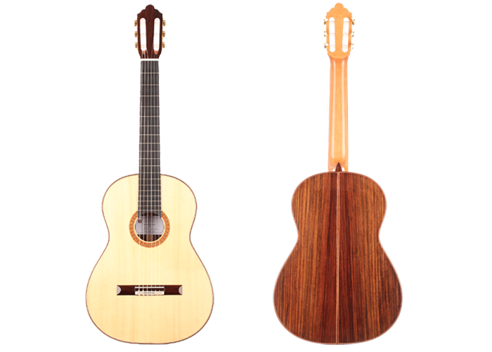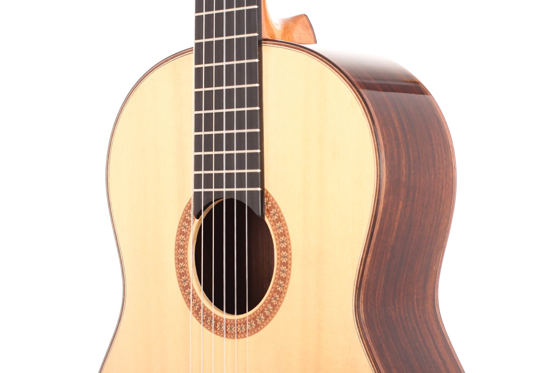 The classical guitar, with its soft nylon strings and characteristic timbre, has become a symbol of chamber music, Spanish tradition, and concert repertoire. Its modern form was shaped by Antonio de Torres in the 19th century, setting the standard for the body, fan bracing, and the 65-centimeter scale length that are still used today. Instruments in this category open up a rich palette from the refined Romantic miniatures of Tárrega to the majestic concertos of Rodrigo. Here you will find guitars that preserve historical continuity and at the same time inspire new interpretations.Look all products of the collection -