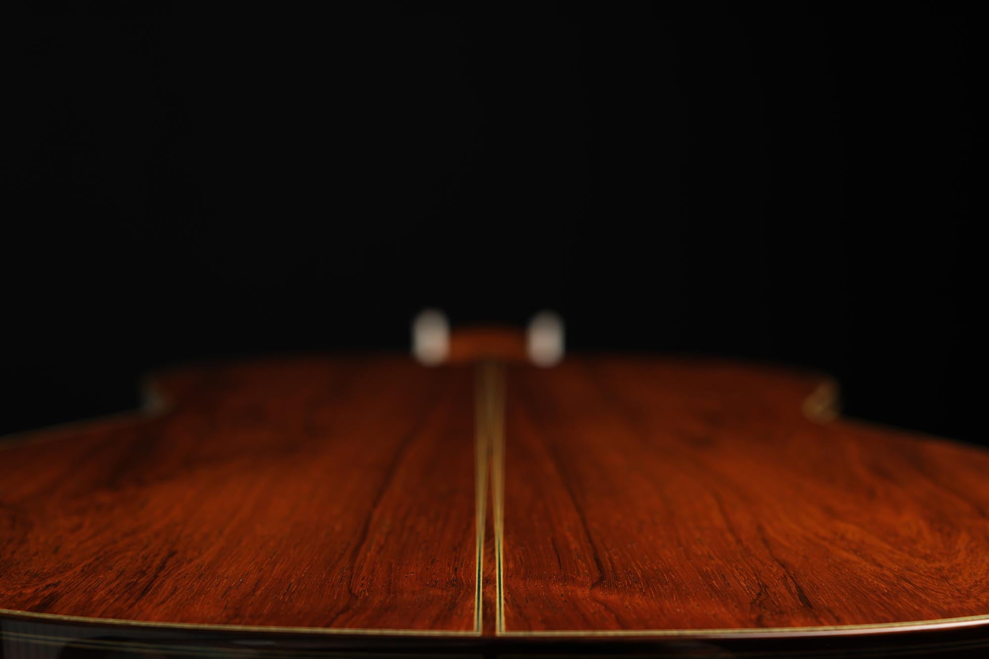 The model “Professional J” is a beautiful instrument, which is easily recognizable by its symmetrical bridge, as it is the only model of the Sakurai-Kohno line that has this feature, as well as by its beautiful back and sides made of Madagascar rosewood. Masaki Sakurai builds this guitar in the same tradition and manner as his uncle Masaru Kohno used to, resulting in an instrument very similar to the Model 30 from the early 1970s. However, unlike the earlier 664 mm scale models, this instrument has a more comfortable 650 mm scale, which makes it much more accessible for most guitarists.