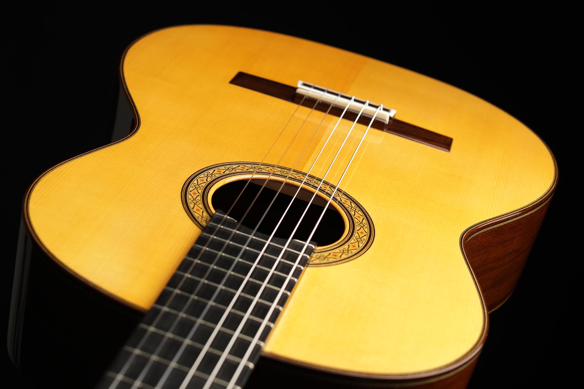 This guitar, built with the extreme precision of Japanese craftsmanship, is of the highest quality. It is characterized by a beautiful selection of precious woods and a great love for detail. The Kohno Professional J feels very light to the touch and also impresses with its beautiful sound, while the singing trebles, in particular, have attracted our attention, as they are very clear and delicate with a very even sustain over the entire fretboard. One must also point out that this guitar, although it is still new, already has a very open and balanced sound, which is a general characteristic of all Kohno instruments.