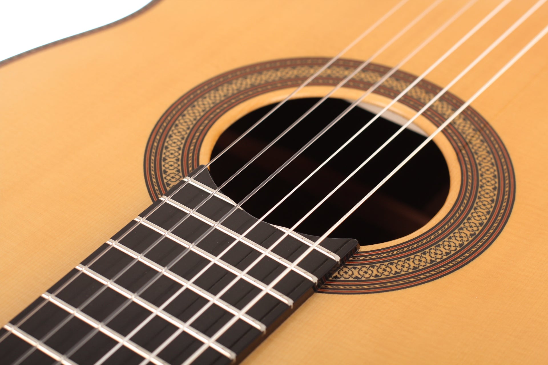 The classical guitar, with its soft nylon strings and characteristic timbre, has become a symbol of chamber music, Spanish tradition, and concert repertoire. Its modern form was shaped by Antonio de Torres in the 19th century, setting the standard for the body, fan bracing, and the 65-centimeter scale length that are still used today. Instruments in this category open up a rich palette from the refined Romantic miniatures of Tárrega to the majestic concertos of Rodrigo. Here you will find guitars that preserve historical continuity and at the same time inspire new interpretations.Look all products of the collection -
