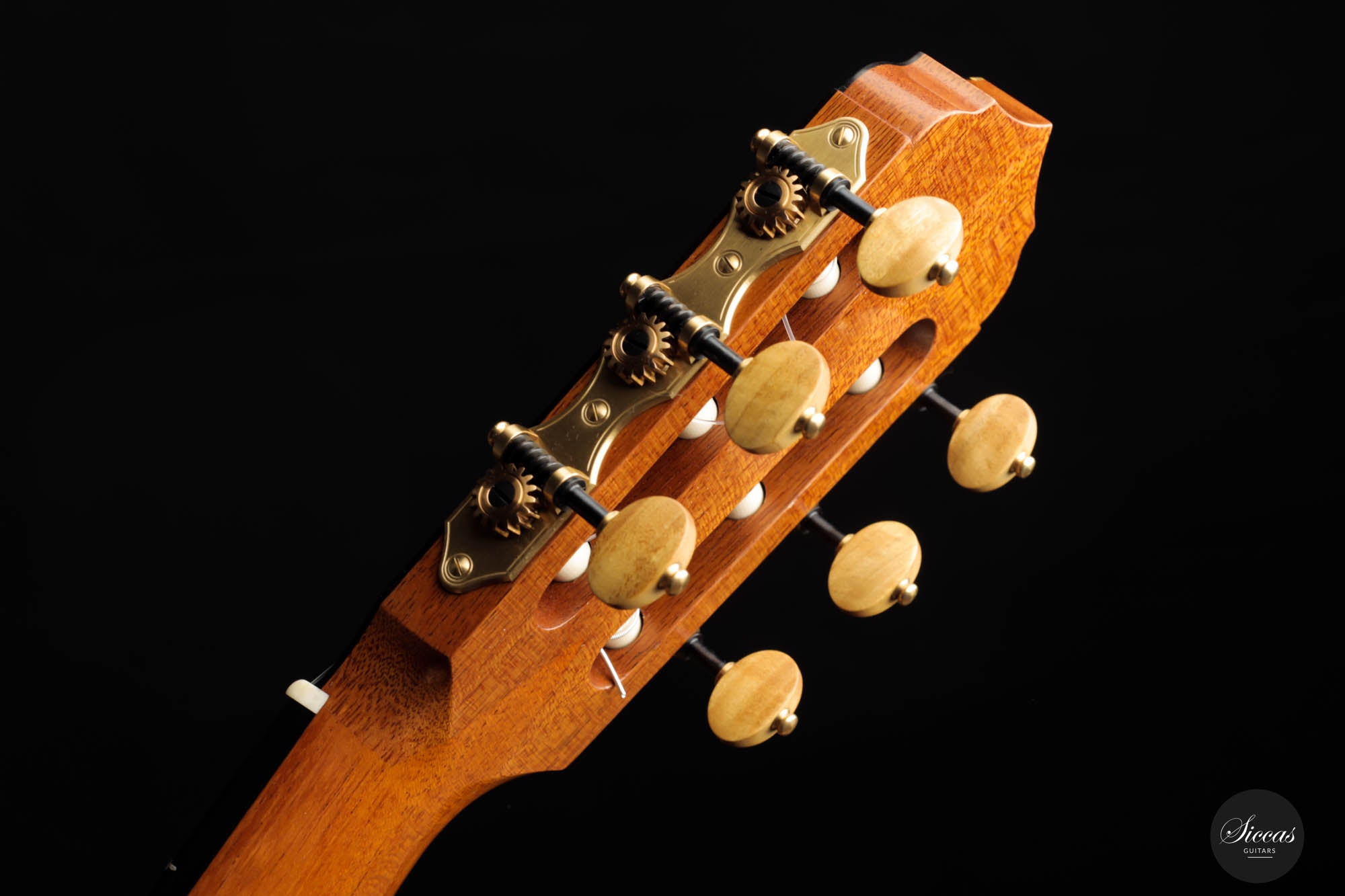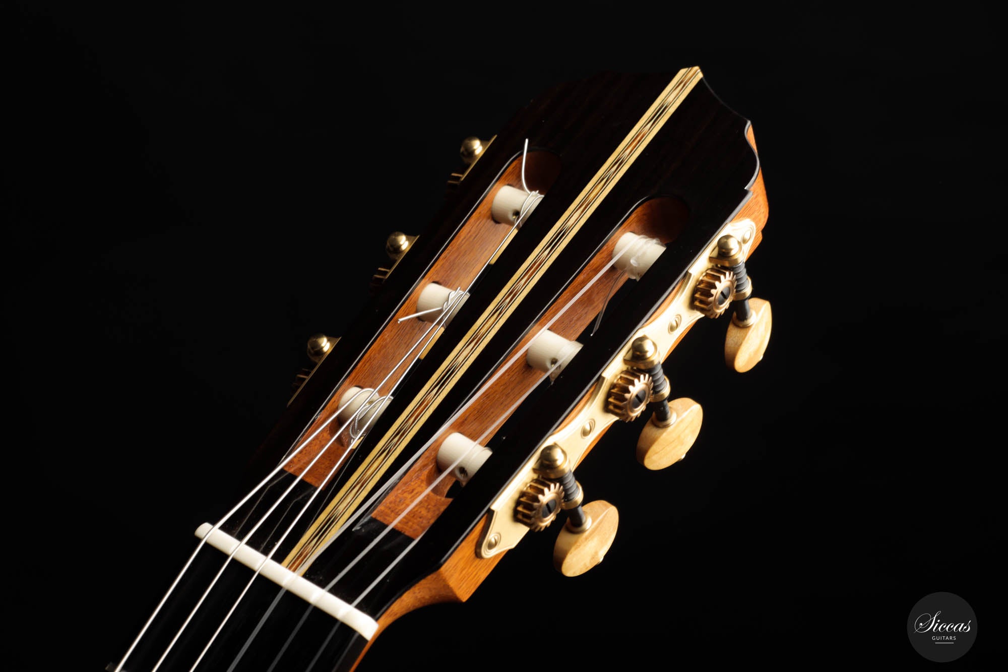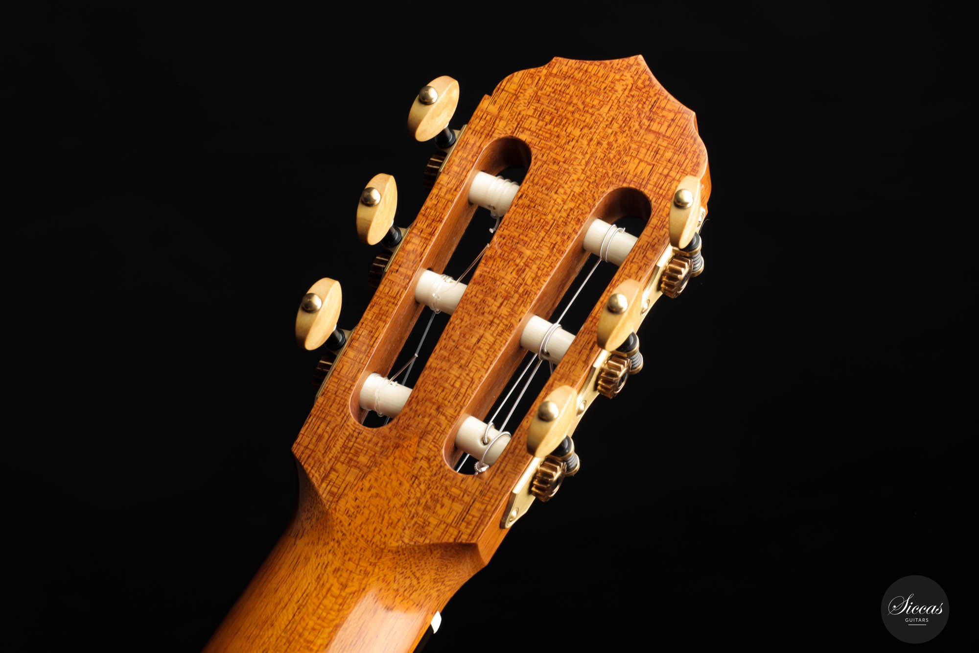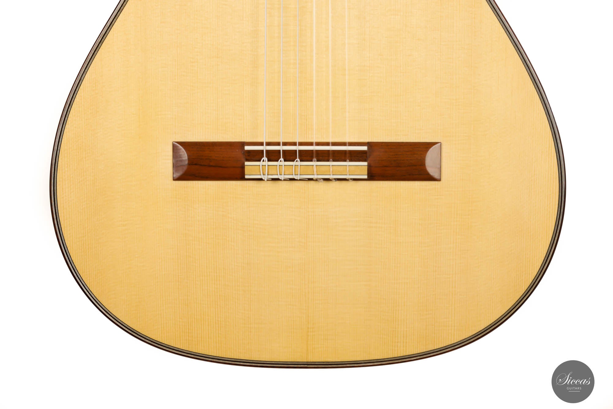 His concert guitars (like this one) owe their inspiration to the instruments of Antonio de Torres, the early 20th-century Spanish makers. By combining design elements from wonderful makers with his own ideas he produces instruments that are traditional in style, lightly built, and very responsive. He’s aiming for a sound that has real beauty, with the notes evenly focused and well-balanced across the whole musical spectrum.