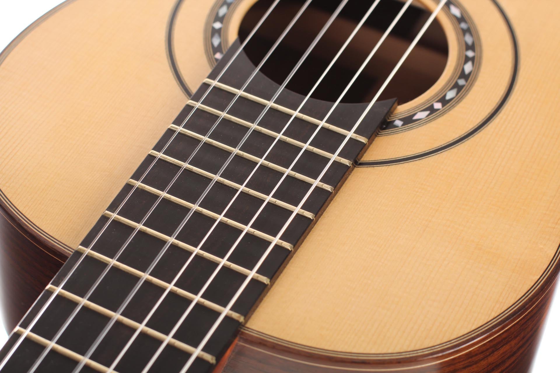 The classical guitar, with its soft nylon strings and characteristic timbre, has become a symbol of chamber music, Spanish tradition, and concert repertoire. Its modern form was shaped by Antonio de Torres in the 19th century, setting the standard for the body, fan bracing, and the 65-centimeter scale length that are still used today. Instruments in this category open up a rich palette from the refined Romantic miniatures of Tárrega to the majestic concertos of Rodrigo. Here you will find guitars that preserve historical continuity and at the same time inspire new interpretations.