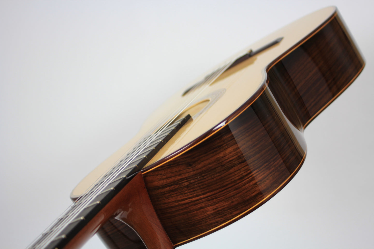 Price on requestLuthier: Fritz OberConstruction Year: 2019Construction Type: TraditionalTop: SpruceBack and Sides: Brazilian rosewood (CITES certified)Soundboard Finish: French polishBody Finish: French polishAir Body Frequency: C sharp / DWeight (g): 1345Tuner: Klaus SchellerCondition: Excellent -
