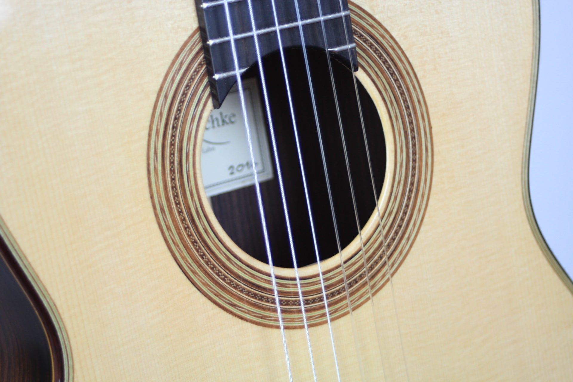 Stefan Nitschke is a young German luthier who learned the art of guitar-making under the guidance of Gerhard Oldiges. Stefan Nitschke has been building guitars for over 10 years now. The guitar is built in a traditional way in the style of Spanish/German masters. We are very pleased being able to present this beautiful guitar in our shop.