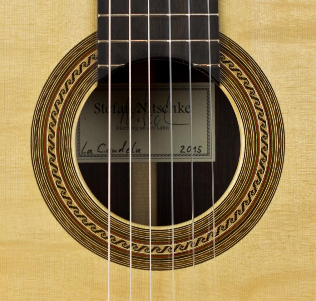 Stefan Nitschke is a young German luthier who learned the art of guitar-making under the guidance of Gerhard Oldiges. Stefan Nitschke has been building guitars for over 10 years now. The guitar is built in a traditional way in the style of Spanish/German masters. The top is made of very fine Alpine spruce. Back and sides are made of Indian rosewood. All shellac french-polished. The high quality tuning-machines with ebony buttons are made by Klaus Scheller. We are very pleased being able to present this beautiful guitar in our shop.