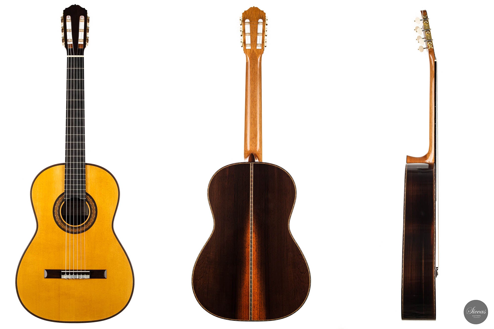The Premium models are unique instruments that are developed in cooperation with a selection of exceptional luthiers. These models are exclusively available at Siccas Guitars and are built with the finest Cites-certified Brazilian rosewood of premium quality. Due to its outstanding physical and tonal characteristics, this wood has been used in guitar building since the 19th century and is regarded as the most valuable and aesthetically appealing tonewood in guitar building.