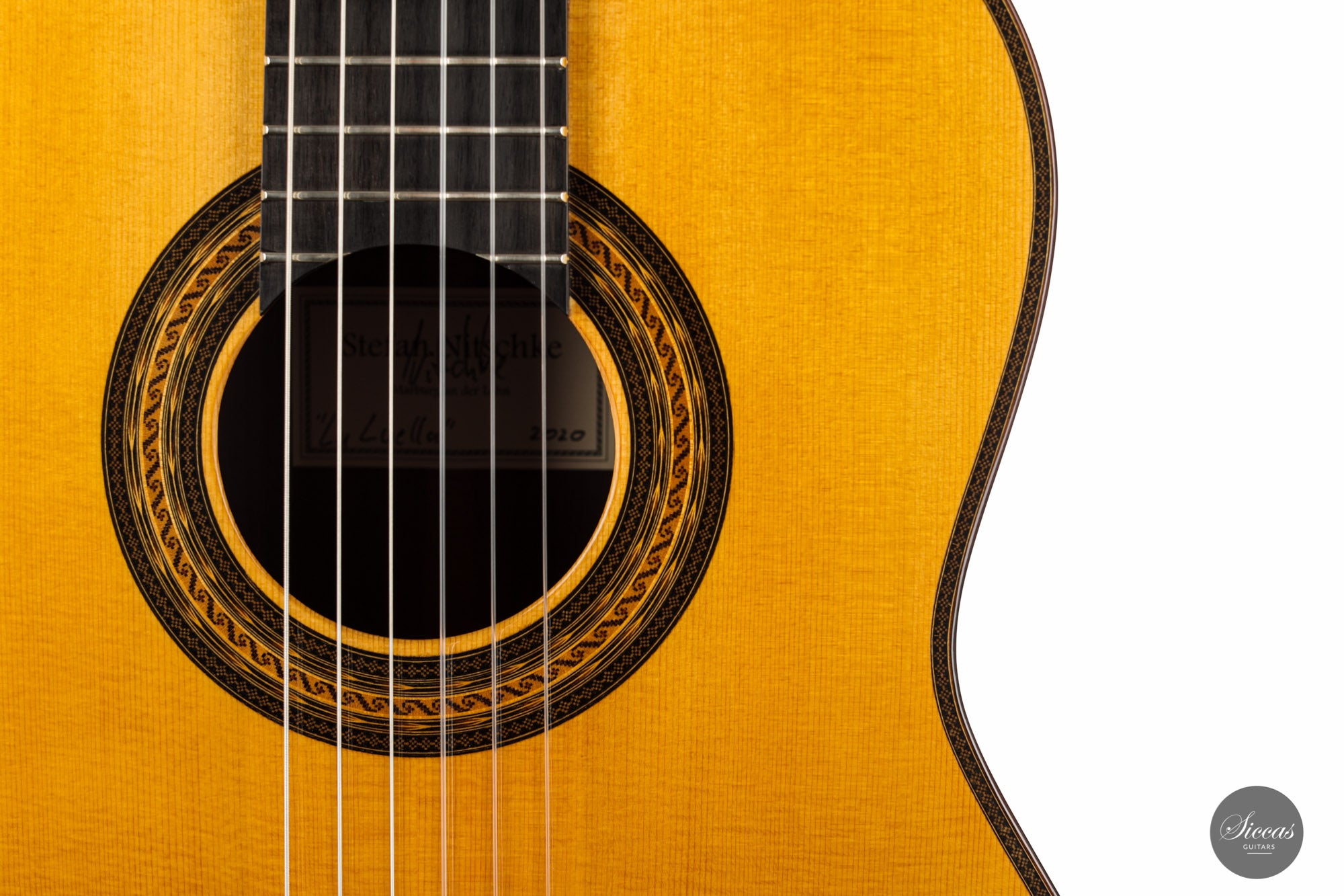 It is a pure joy to play and admire this wonderful guitar, named "La Luella". By choosing highest quality and rare woods Stefan Nitschke has created a colorful and symphonic work of art.Back and sides are made of (CITES-certified) Brazilian rosewood varying in the nuances from dark chocolate to vivid orange. The fine-grained spruce top gives the guitar a wide, open sound. This guitar has a deep singing and silky bass paired with smooth and playful trebles. The great general playability of this instrument adds once again to the pleasure of the guitarist. As a result, this vivid guitar is splendid both in its construction as well as in elegance and depth of its tone. A true concert guitar that will inspire many years to come.
