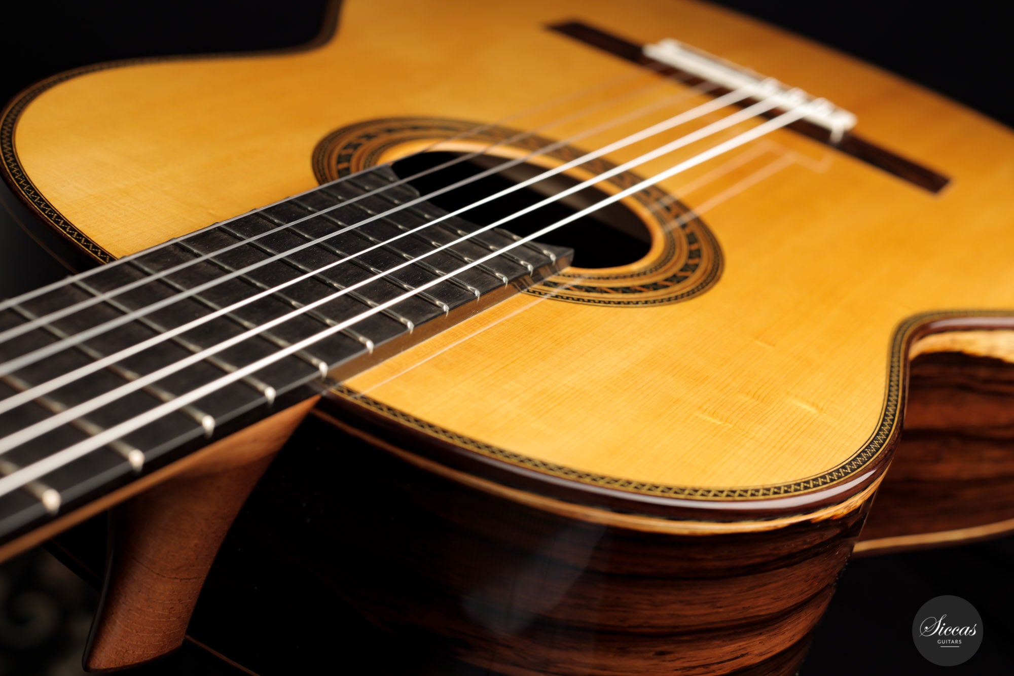 Equally impressive is the guitar's sound, which delights with its openness and rich color palette. The tone production is quick, and the response of the top is clearly reminiscent of the character of Santos Hernandez guitars. As a result, and not least because of the warm and overtone-rich trebles, the sound of this gem harmonizes perfectly with its noble and refined appearance.