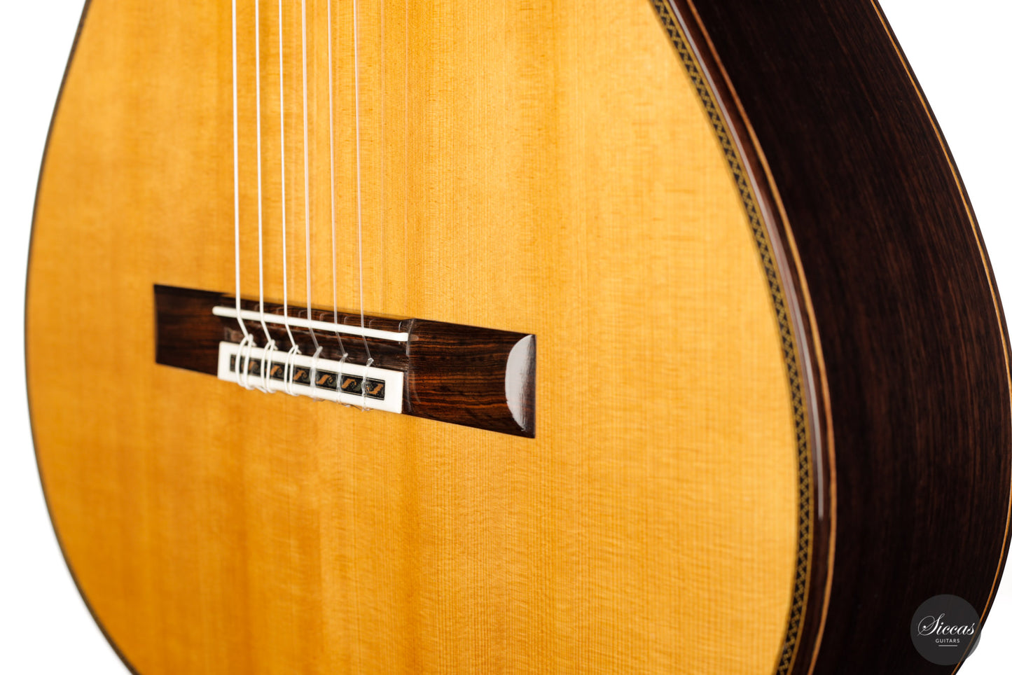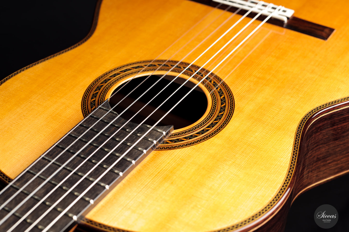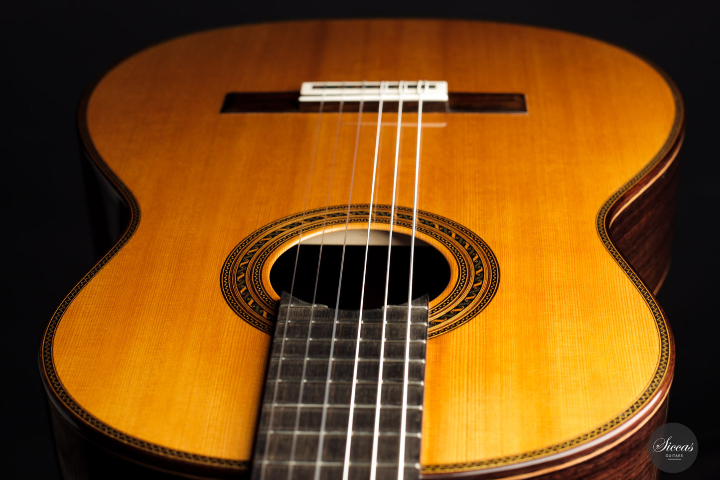 Equally impressive is the guitar's sound, which delights with its openness and rich color palette. The tone production is quick, and the response of the top is clearly reminiscent of the character of Santos Hernandez guitars. As a result, and not least because of the warm and overtone-rich trebles, the sound of this gem harmonizes perfectly with its noble and refined appearance.