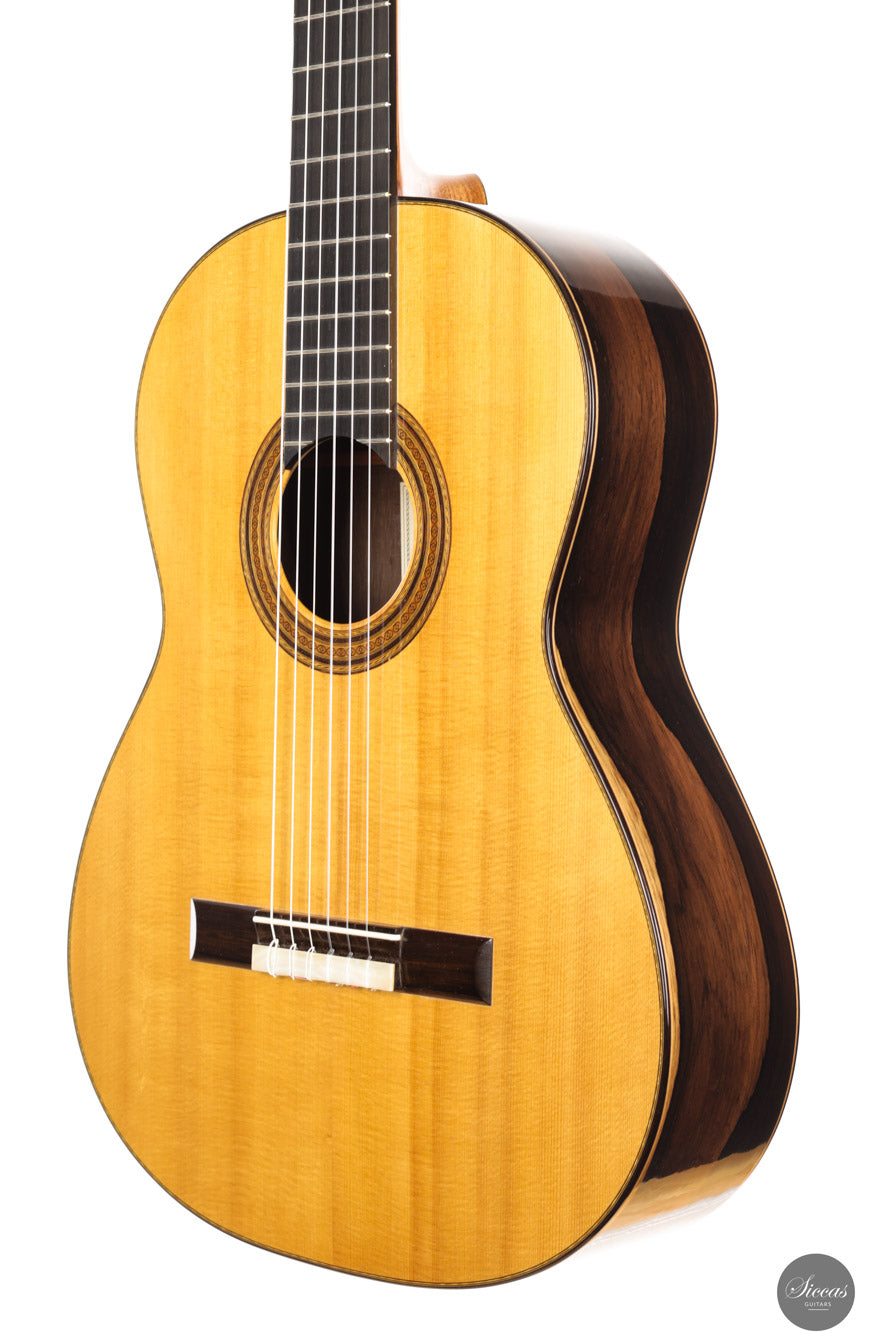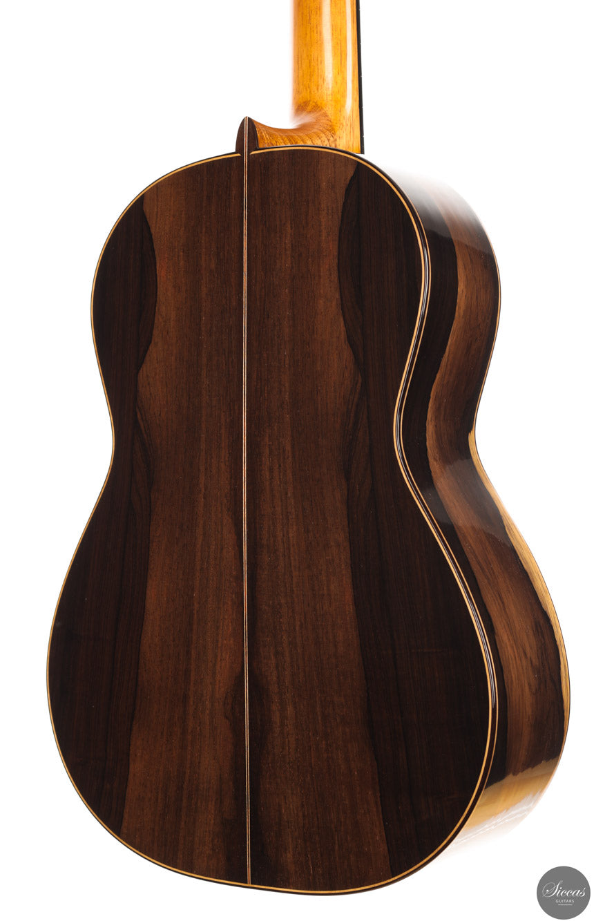 This 2024 Stefan Nitschke “La Maitechu” guitar is a masterful celebration of over two decades of lutherie, designed to offer a rich palette of frequencies and exceptional tonal versatility. The guitar is built with outstanding tone woods: spruce for the top and Brazilian rosewood for the back and sides. As a result, it delivers deep, resonant basses, one of Nitschke’s hallmarks, paired with lyrical, rounded trebles that echo Segovia’s vision of the guitar as a “little orchestra.” The name “La Maitechu” adds a personal, poetic dimension to the instrument, likely drawing from a Basque term of endearment meaning “little beloved one”, a fitting tribute that underscores the intimacy and expressive soul of this remarkable guitar.