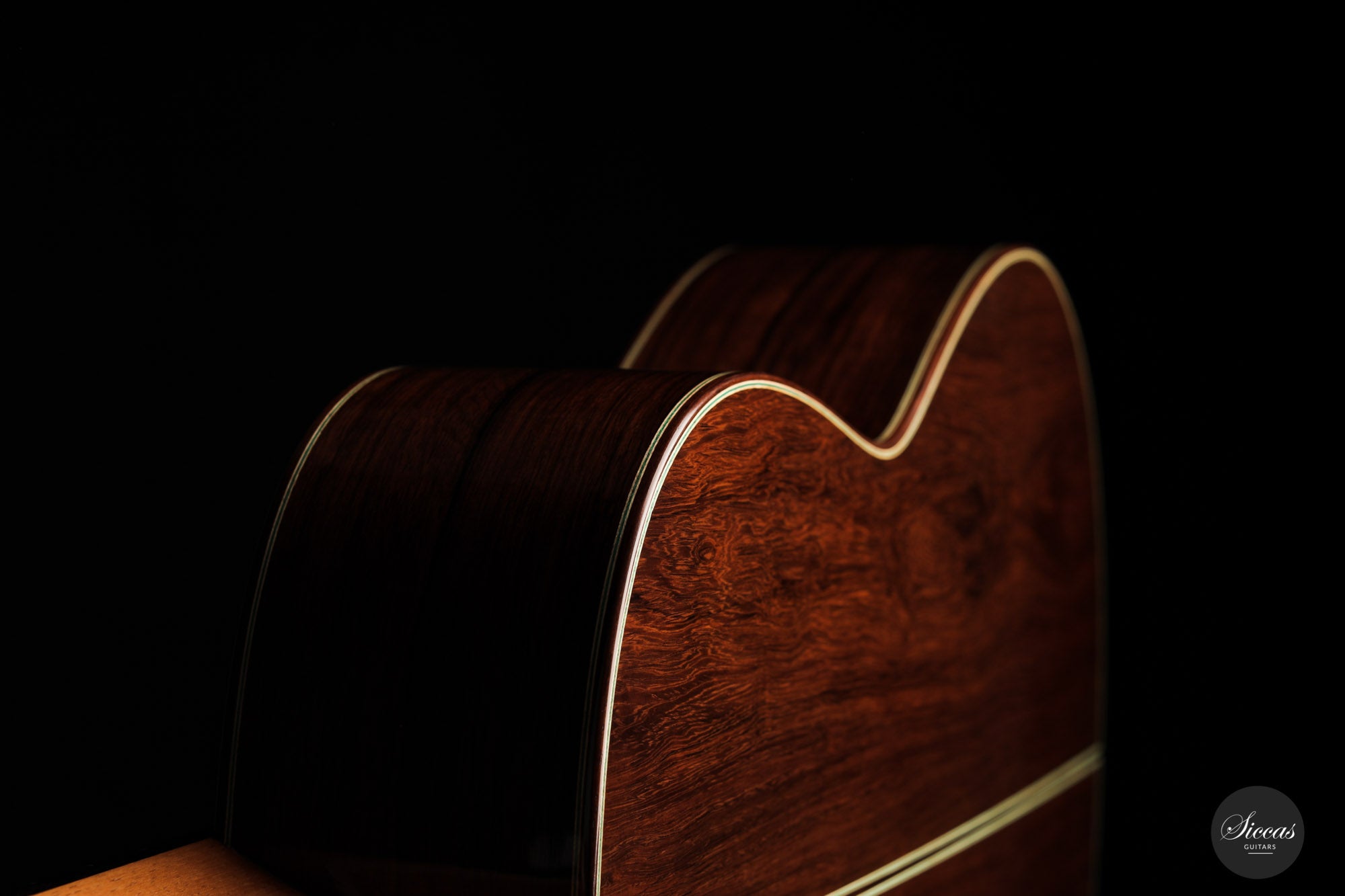 The ease of playability is a particularly valuable characteristic of this instrument. In addition to the power and warmth of tone, it can be played with impressive ease. As a guitarist, one feels supported and inspired by this double top, as it offers a great sense of freedom to the left hand. In addition, the treble is particularly powerful and lively, with plenty of sustain, making it effortless to control phrasing with the instrument.