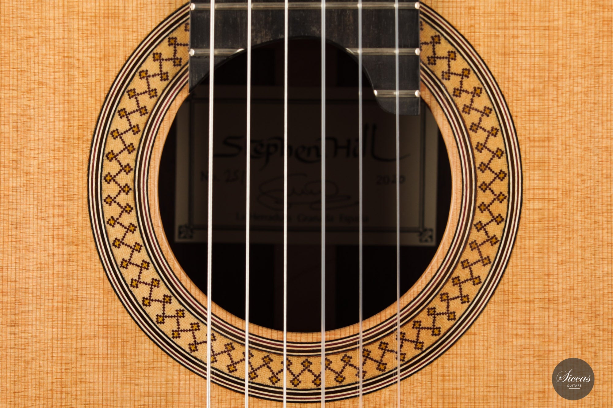 Stephen Hill is an English guitar maker based in Granada, Spain. In his inspiring career, he evolved from a talented flamenco guitarist to one of the most interesting and best builders of Spanish guitars on the market today. His inspiration came from legendary guitar makers as well as legendary guitarists with whom he built close relationships and friendships. Among others, one can mention Antonio Marin Montero, Paco Pena, Manuel Reyes, etc. Stephen Hill crafts fantastic Spanish guitars, but also shares his passion and knowledge with some talented students, from whom we have also received some very skillfully worked guitars.