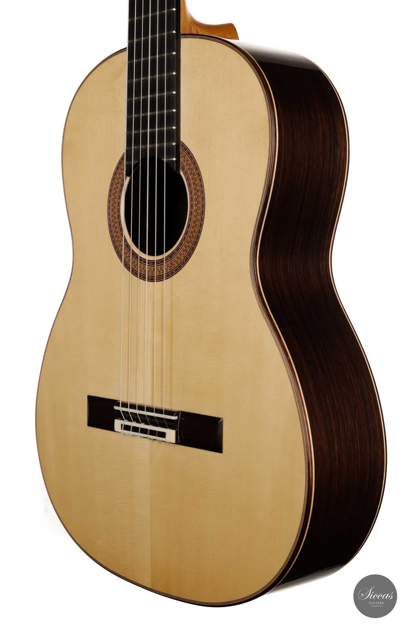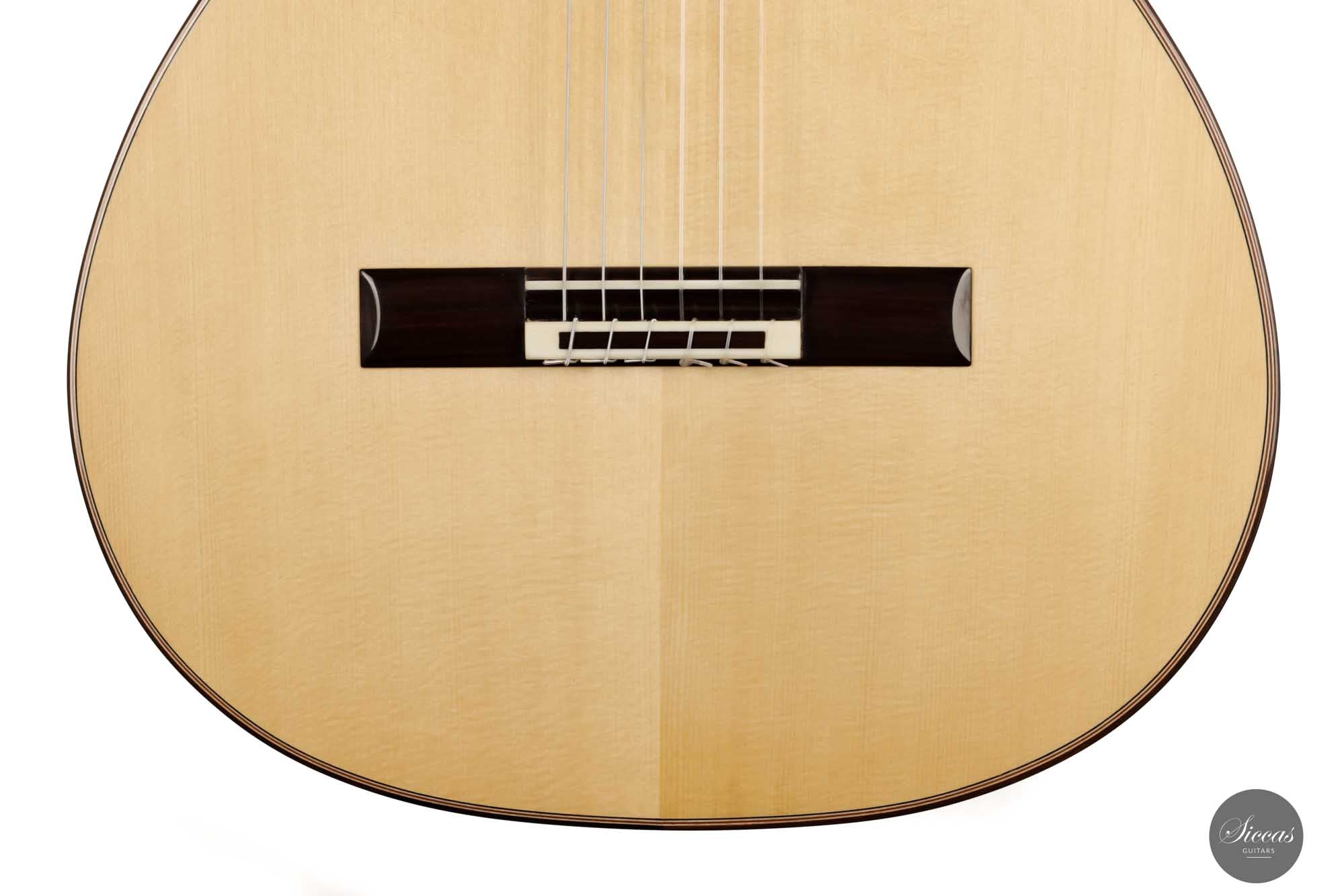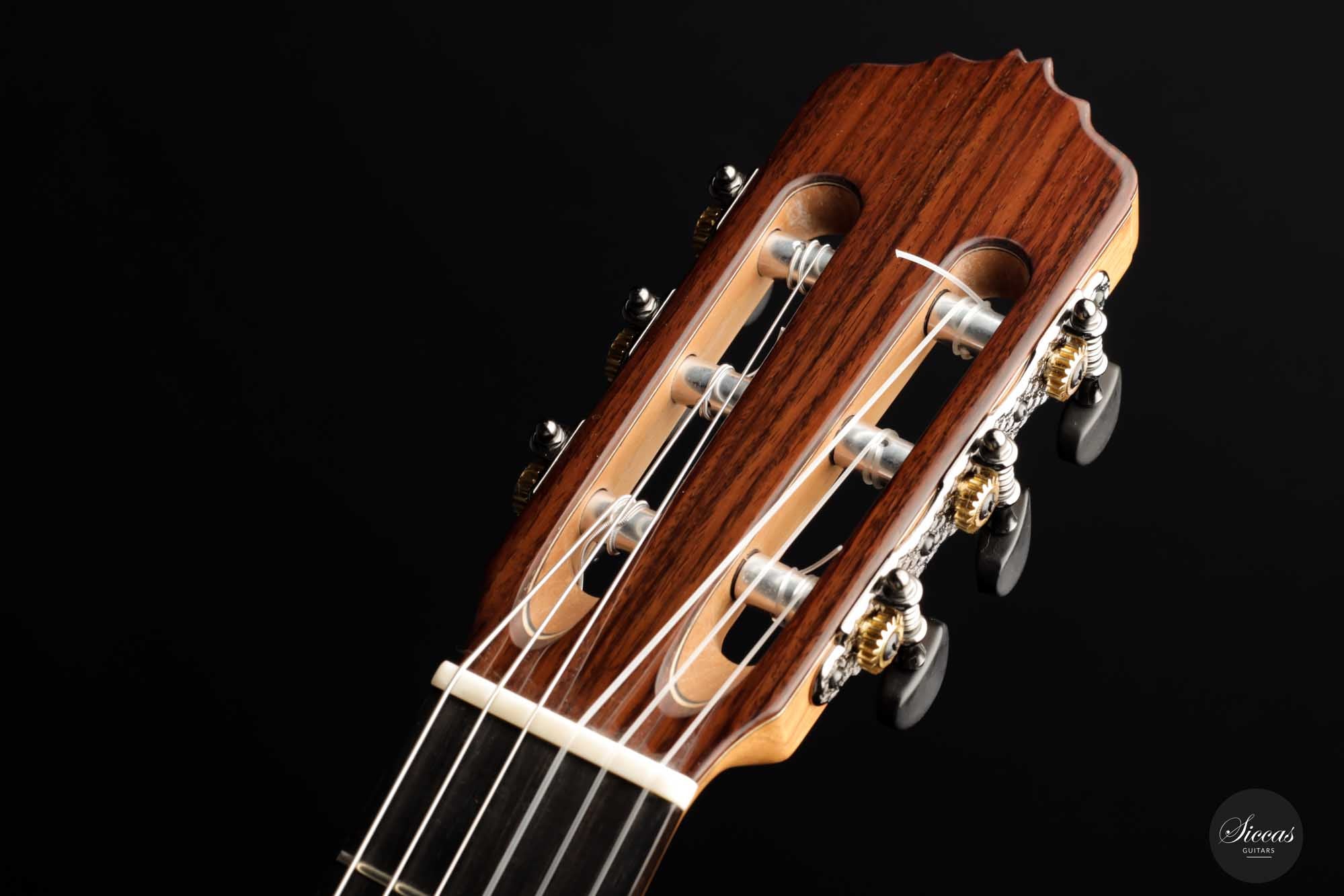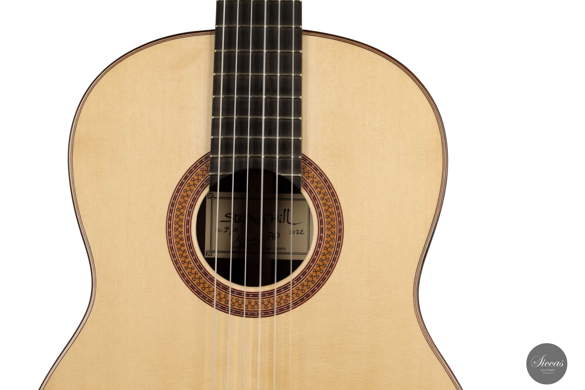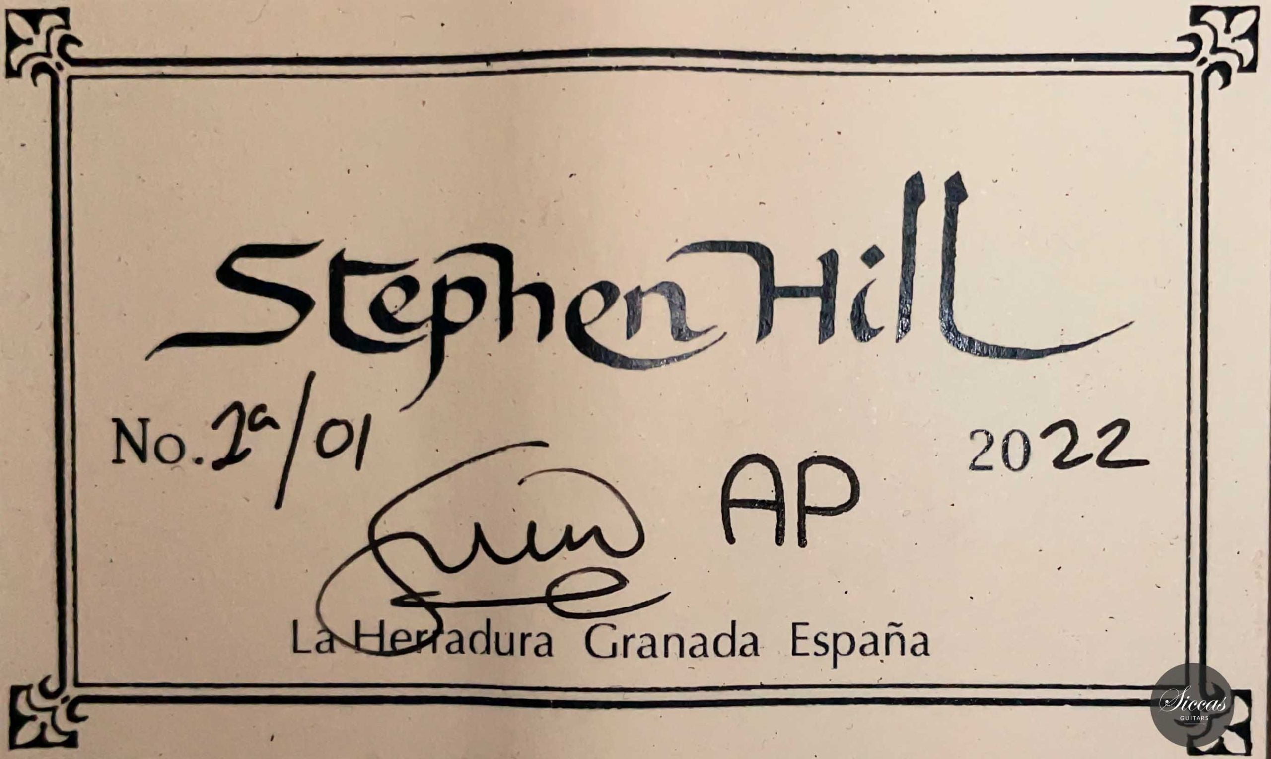 Stephen Hill is an English guitar maker based in Granada, Spain. In his inspiring career, he evolved from a talented flamenco guitarist to one of the most interesting and best builders of Spanish guitars on the market today. His inspiration came from legendary guitar makers as well as legendary guitarists with whom he built close relationships and friendships. Among others, one can mention Antonio Marin Montero, Paco Pena, Manuel Reyes, etc. Stephen Hill crafts fantastic Spanish guitars, but also shares his passion and knowledge with some talented students, from whom we have also received some very skillfully worked guitars.Stephen Hill offers a limited and exclusive production of his 2a guitars, built under Hill's complete direction in his own workshop by his experienced assistants. Only 6 per year are made. These guitars are built using excellent materials and are fully french polished. The 2a model is an outstanding opportunity to have a professional quality concert guitar built along the same lines as Stephen Hill 1a instruments. Each guitar is personally set up by Stephen Hill, individually voiced, and fine-tuned to produce a perfect instrument for concert use.