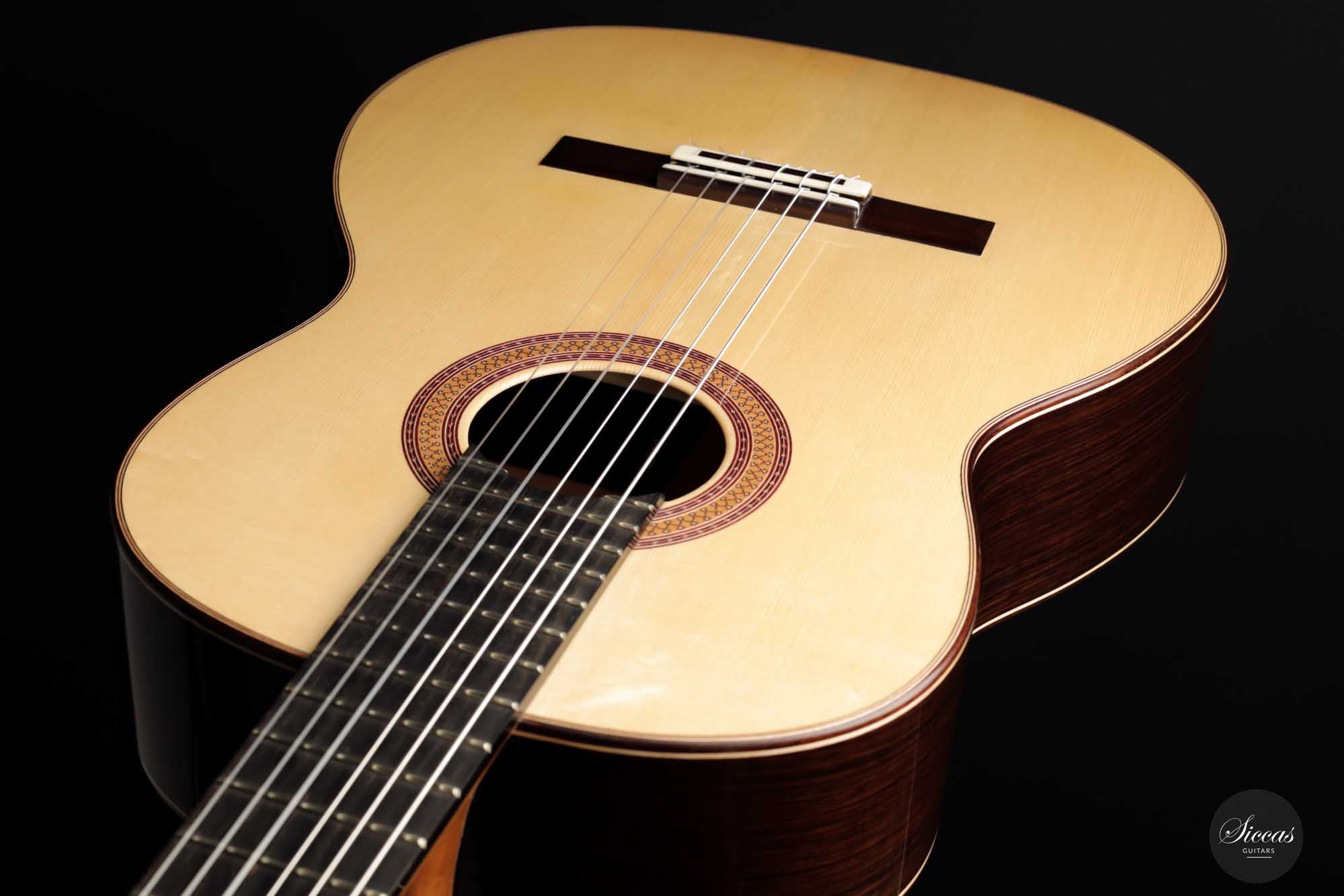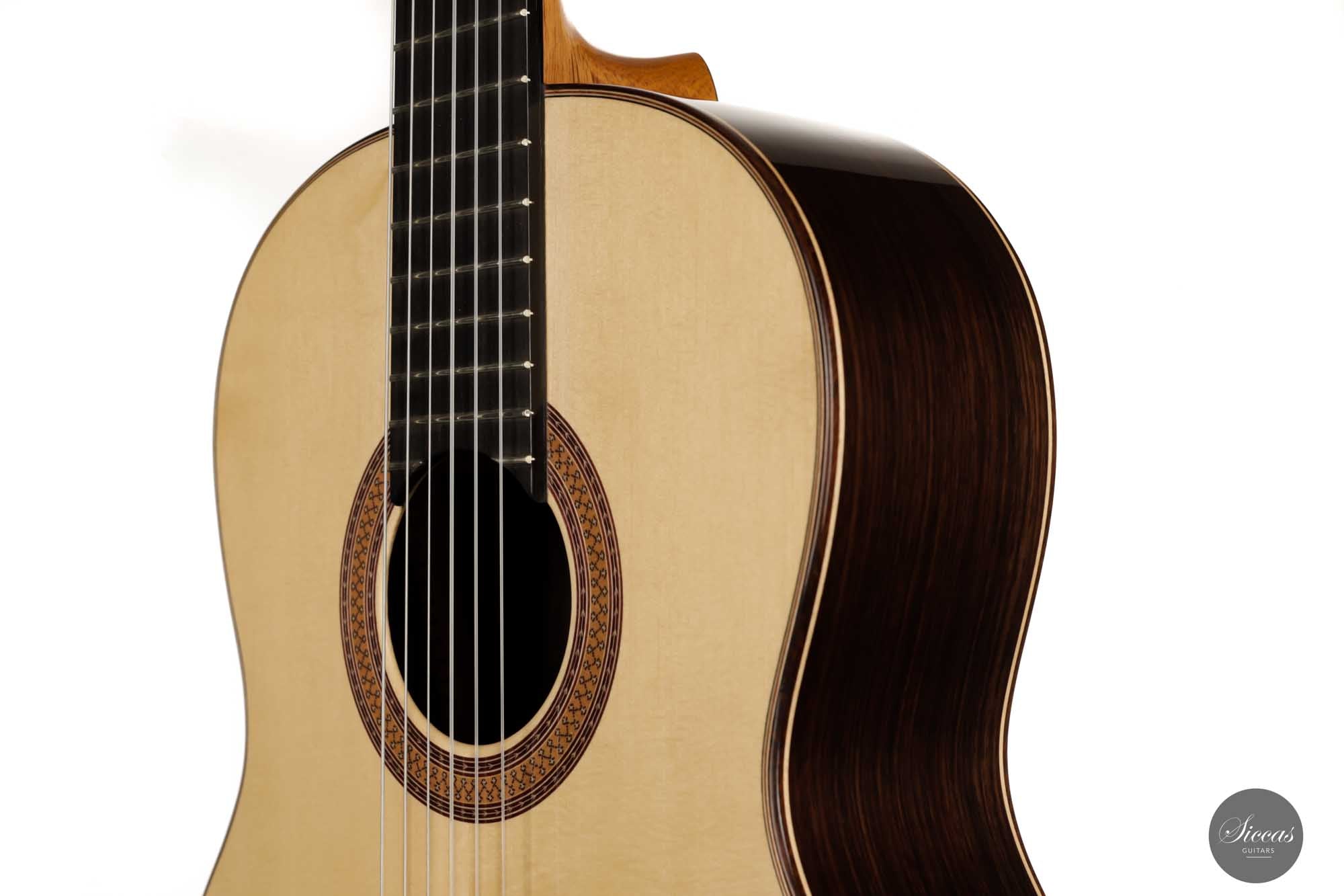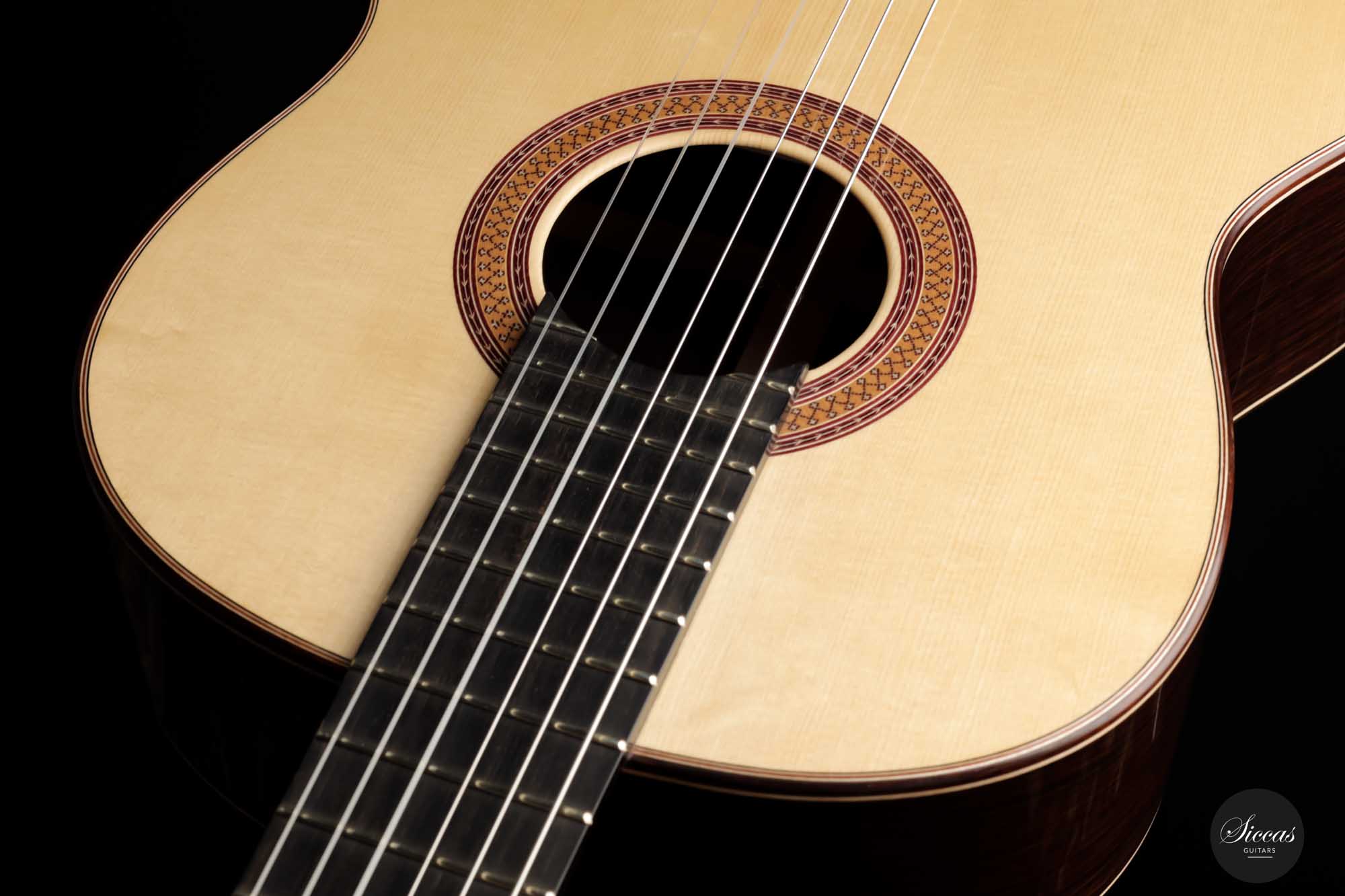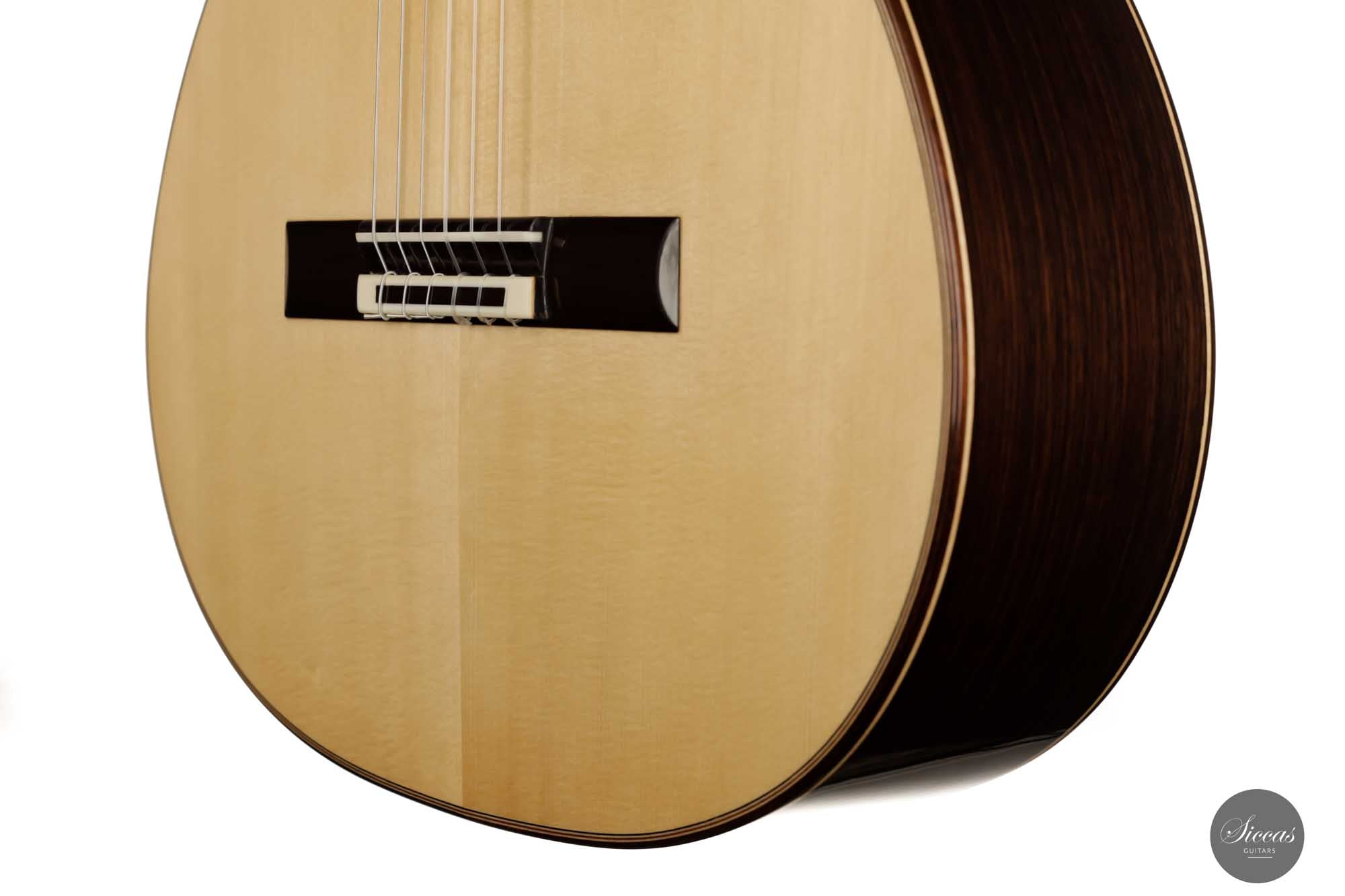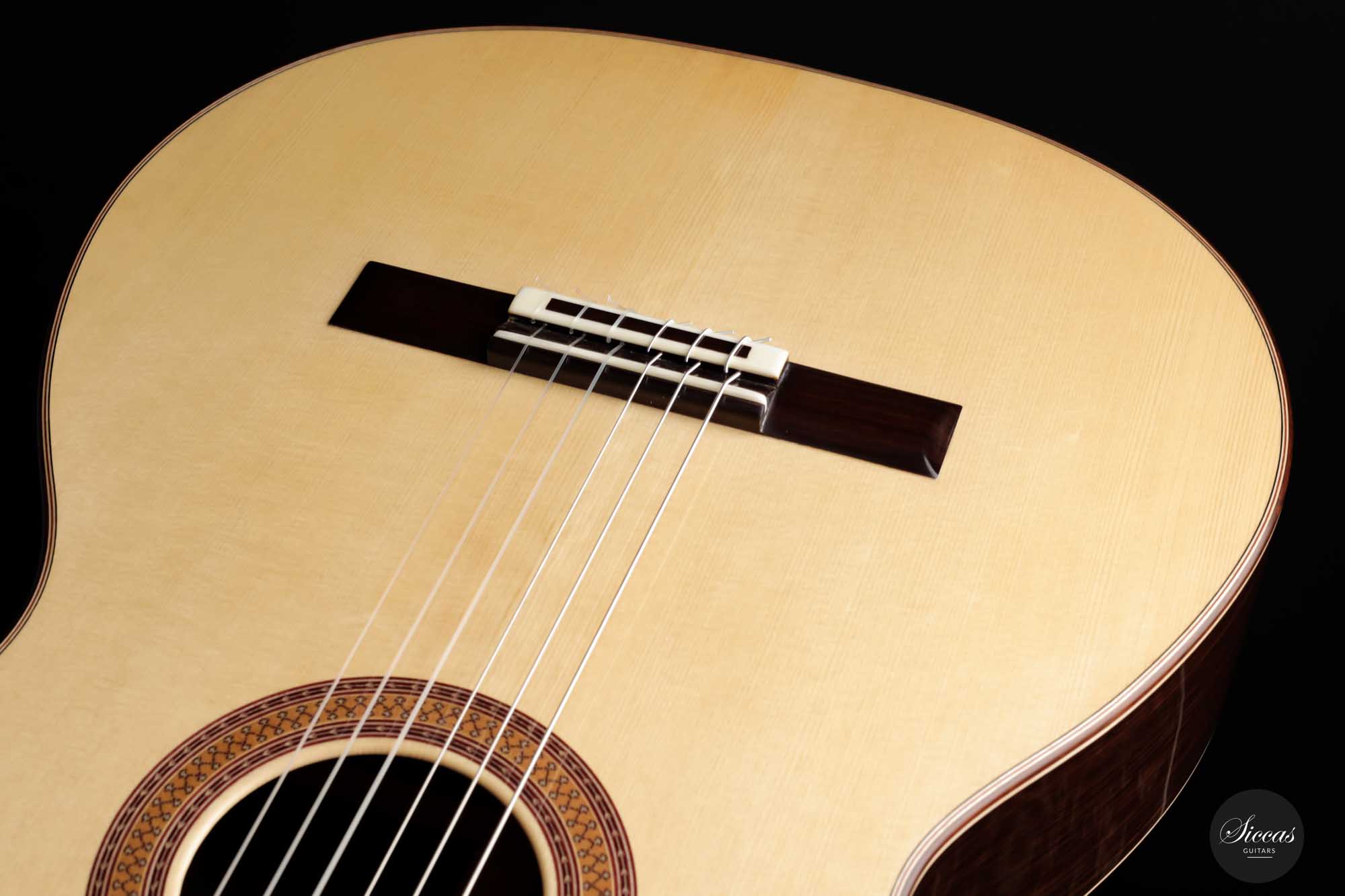 Stephen Hill is an English guitar maker based in Granada, Spain. In his inspiring career, he evolved from a talented flamenco guitarist to one of the most interesting and best builders of Spanish guitars on the market today. His inspiration came from legendary guitar makers as well as legendary guitarists with whom he built close relationships and friendships. Among others, one can mention Antonio Marin Montero, Paco Pena, Manuel Reyes, etc. Stephen Hill crafts fantastic Spanish guitars, but also shares his passion and knowledge with some talented students, from whom we have also received some very skillfully worked guitars.Stephen Hill offers a limited and exclusive production of his 2a guitars, built under Hill's complete direction in his own workshop by his experienced assistants. Only 6 per year are made. These guitars are built using excellent materials and are fully french polished. The 2a model is an outstanding opportunity to have a professional quality concert guitar built along the same lines as Stephen Hill 1a instruments. Each guitar is personally set up by Stephen Hill, individually voiced, and fine-tuned to produce a perfect instrument for concert use.