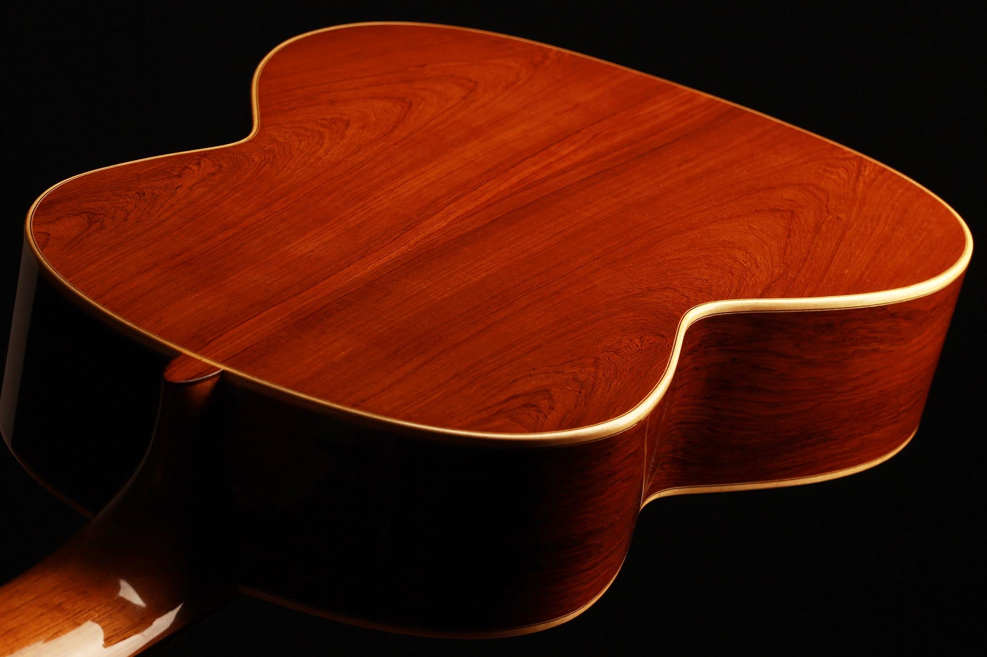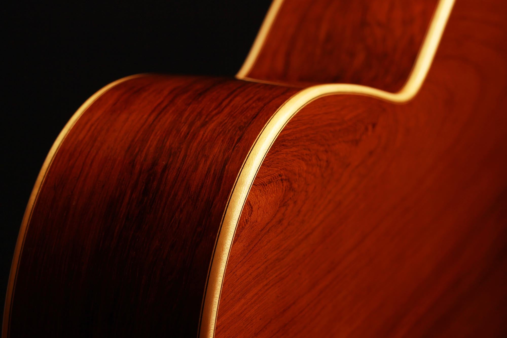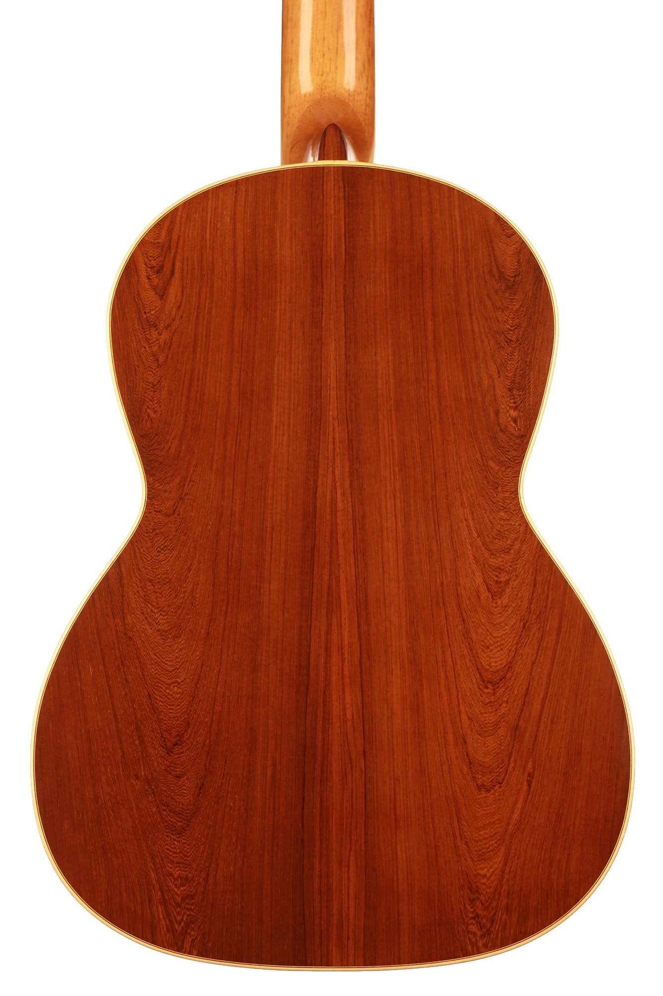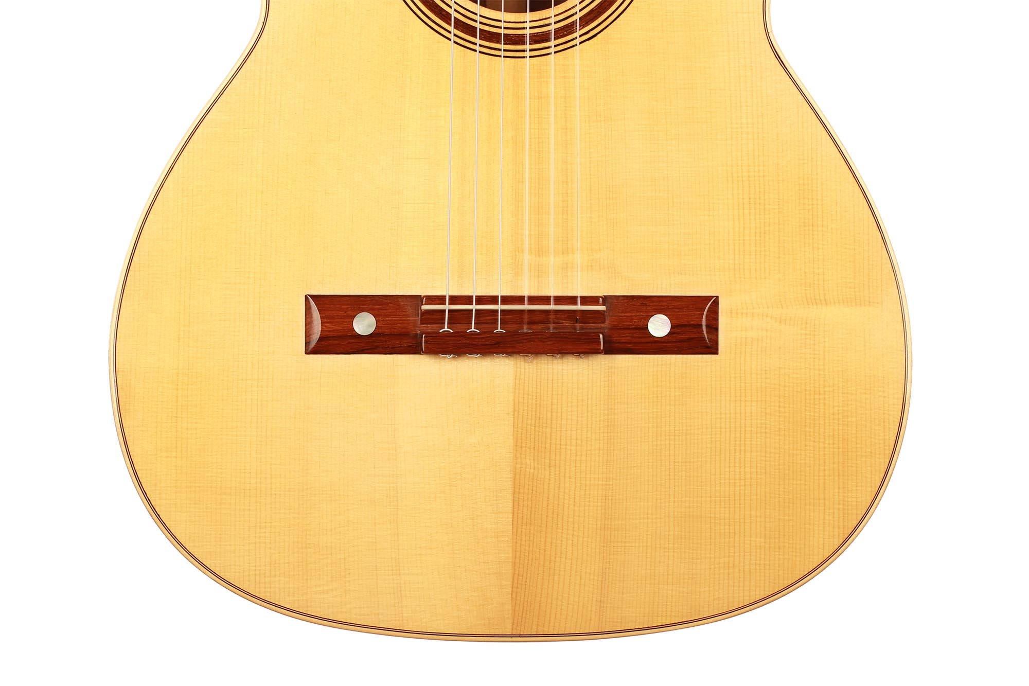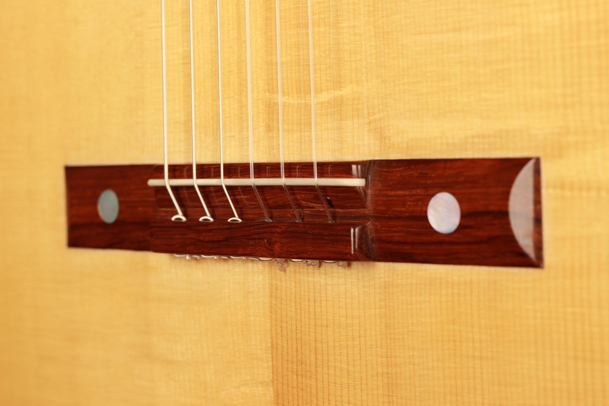 This beautiful guitar has a very traditional Spanish appearance, and one must say that the very mature tone also reminds of the warm singing Spanish guitars of the late nineteenth / early twentieth century. The round sweet trebles are very spontaneous and go very well along with the sustain-full traditional basses. A thinly worked neck as well as a 51,5 mm wide nut enhance the playability of this guitar and make it both a very comfortable and generously sounding instrument.