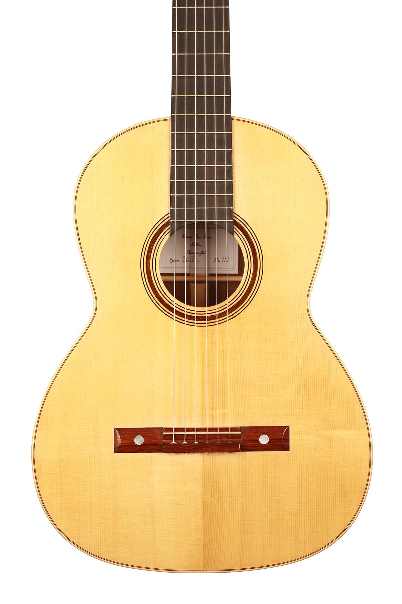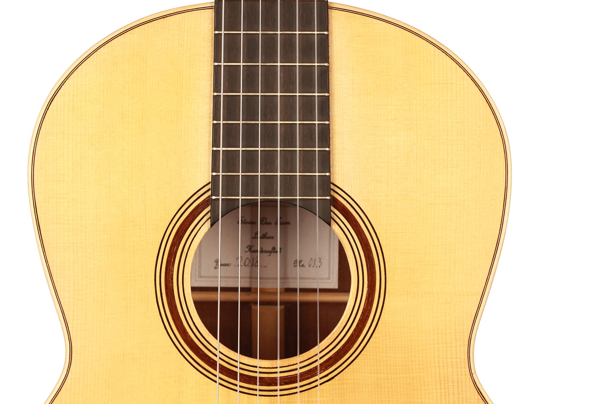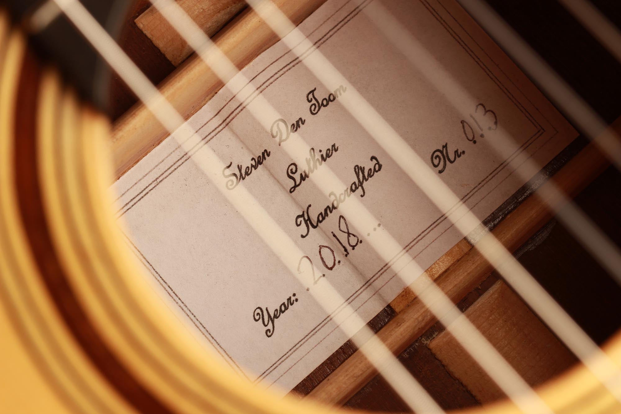 Steven den Toom is a Dutch luthier who set up his workshop in Germany in 2016. He previously followed an extensive guitar building course in Belgium where he developed a true curiosity and passion for the Spanish traditional guitar making. Vicente Arias, Antonio de Torres, and Francisco Simplicio’s guitars are his major sources of inspiration, and their influence can be felt in his lightweight, dynamic and responsive guitars.