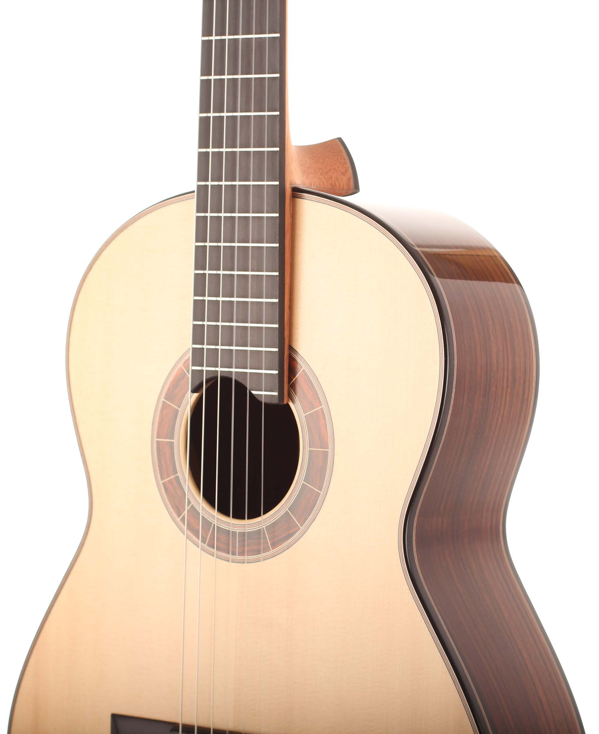 The classical guitar, with its soft nylon strings and characteristic timbre, has become a symbol of chamber music, Spanish tradition, and concert repertoire. Its modern form was shaped by Antonio de Torres in the 19th century, setting the standard for the body, fan bracing, and the 65-centimeter scale length that are still used today. Instruments in this category open up a rich palette from the refined Romantic miniatures of Tárrega to the majestic concertos of Rodrigo. Here you will find guitars that preserve historical continuity and at the same time inspire new interpretations.Look all products of the collection -