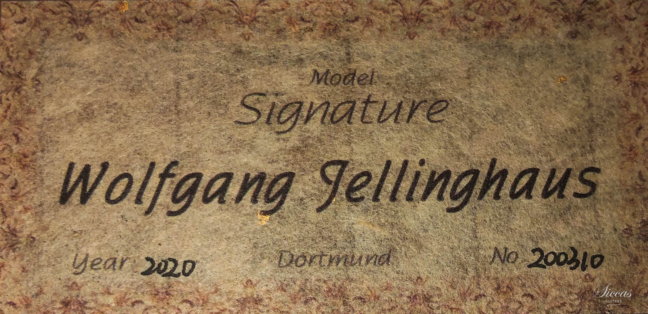 Seine neueste Serie sind die Wolfgang Jellinghaus Signature Modelle.Hierbei handelt es sich um ein sehr moderne Gitarre mit einigen interessanten Eigenschaften, wie beispielsweise dem schwebenden Griffbrett, das nicht an der Decke befestigt ist, wodurch auch dieser Bereich der Decke frei schwingt und zum Gesamtklang beiträgt. Das Klangvolumen wird dadurch sehr kräftig, auch dank der sehr leichten Double-top Bauweise. Dadurch ist es mit wenig Kraftaufwand der rechten Hand möglich einen sehr vollen und raumfüllenden Ton zu erzeugen, was für die rechte Hand sehr angenehm ist. Auch die Armstütze trägt zum Gesamt-Comfort bei. Die Gitarre ist mit Schellack veredelt und rundet sehr schön das Gesamtbild dieses Instruments ab. In diesem Preissegment ist die Gitarre mehr als überzeugend.