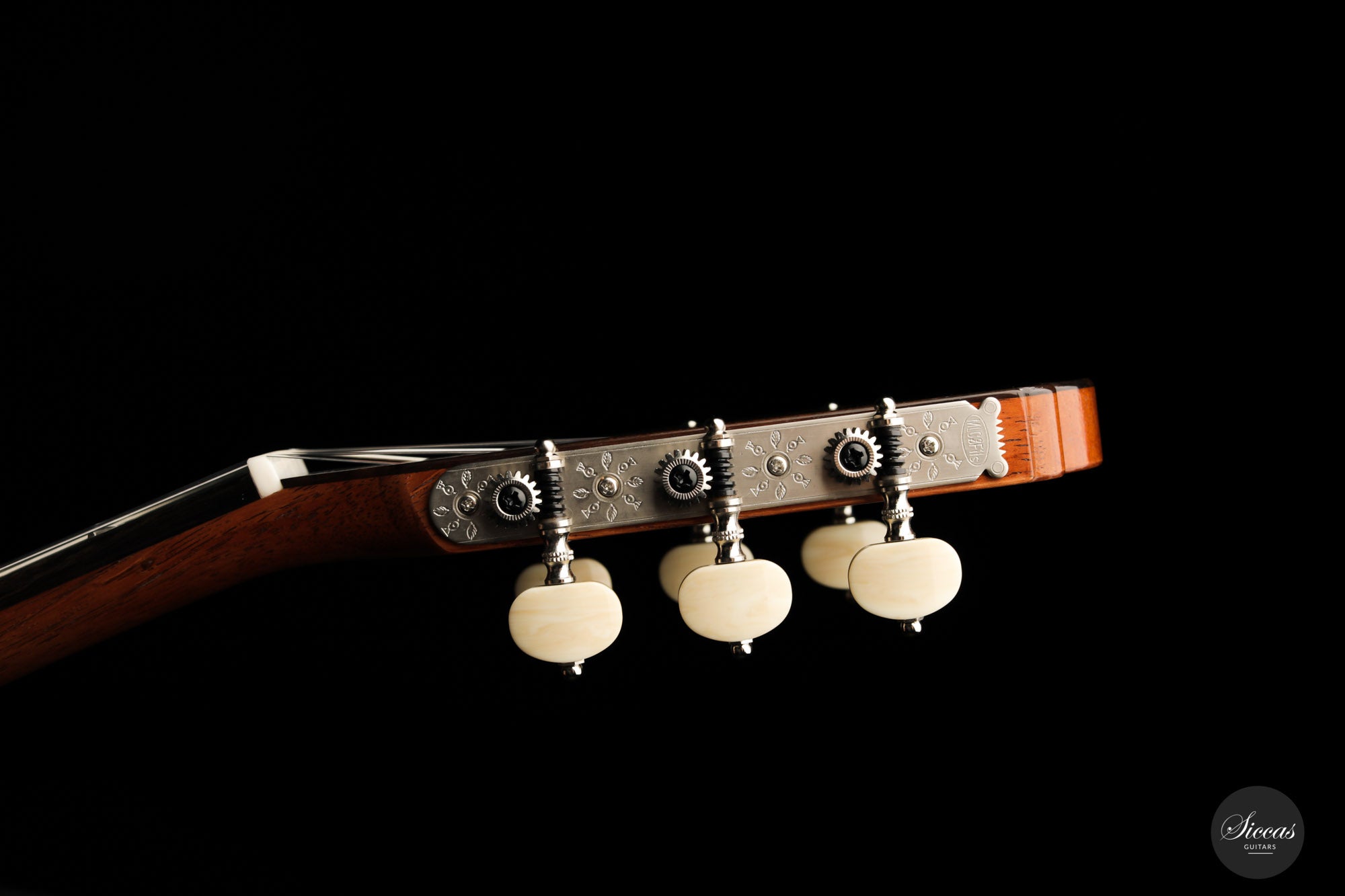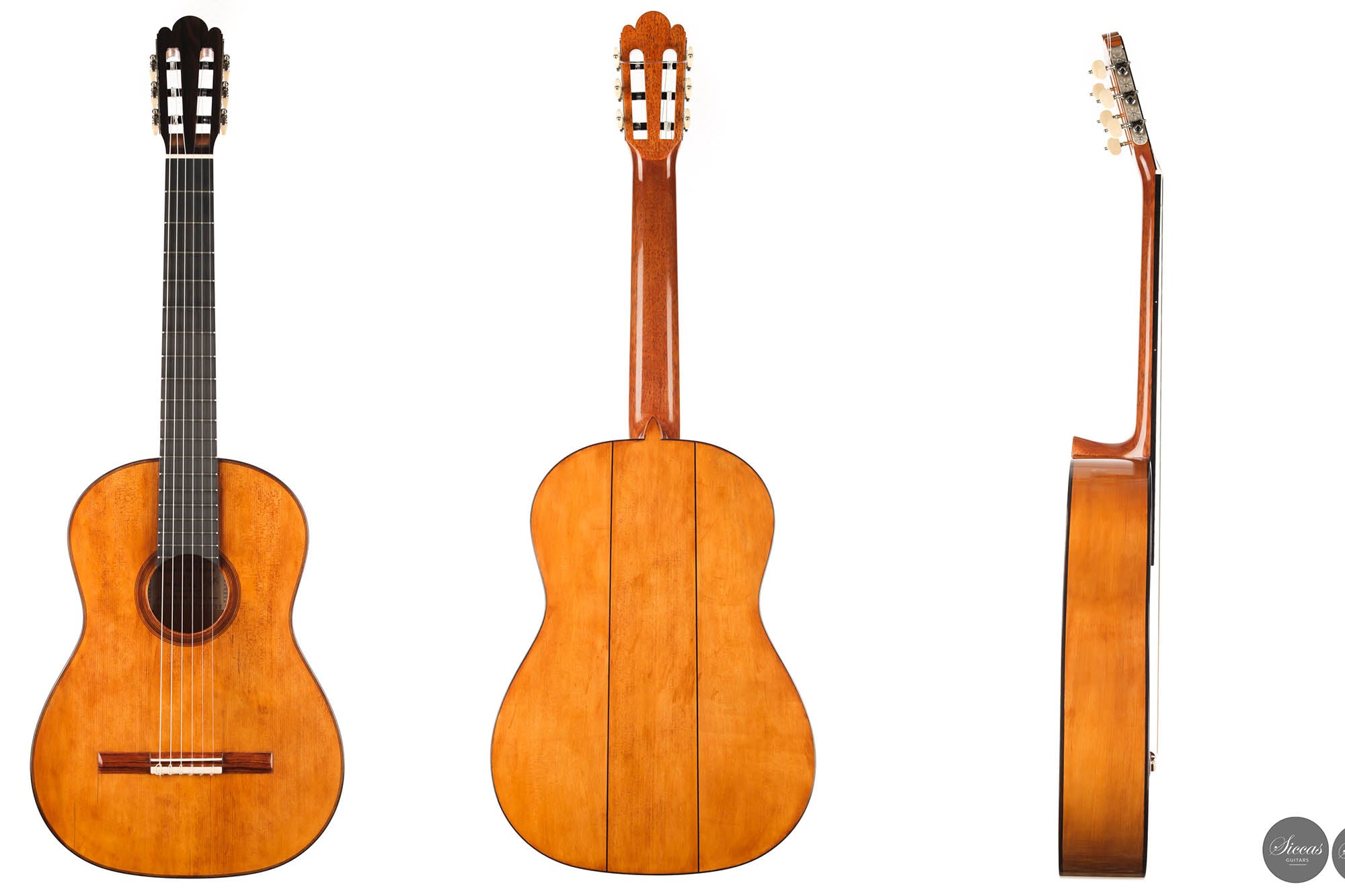 Lightweight, responsive, and visually captivating, this replica of the fourth guitar by Antonio de Torres is an absolute gem. This homage to one of Antonio de Torres' most famous instruments, also known as "La Leona", is phenomenal. One can actually feel the special charm coming from the warm tone and the singing ability of this beautiful guitar. The easy responsiveness of the instrument is a source of great pleasure, giving it a uniquely playful character and an inspiring expression.