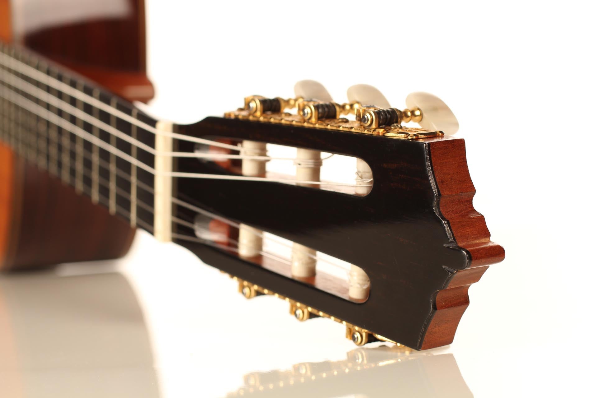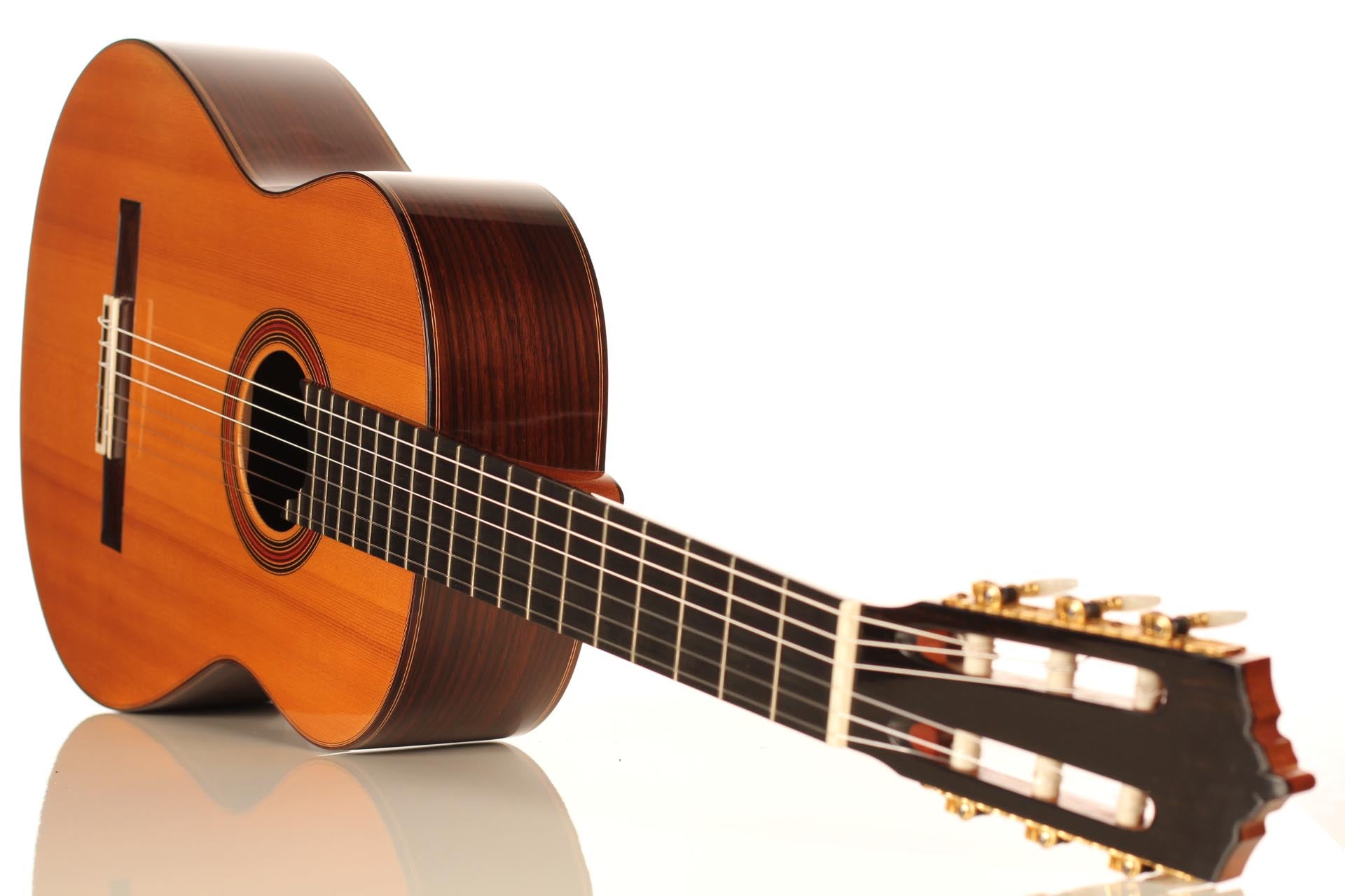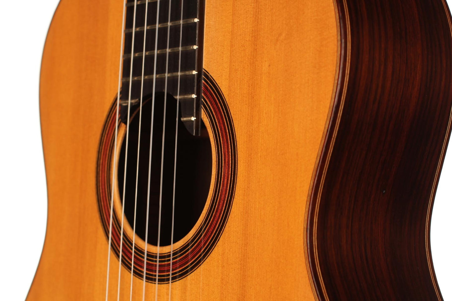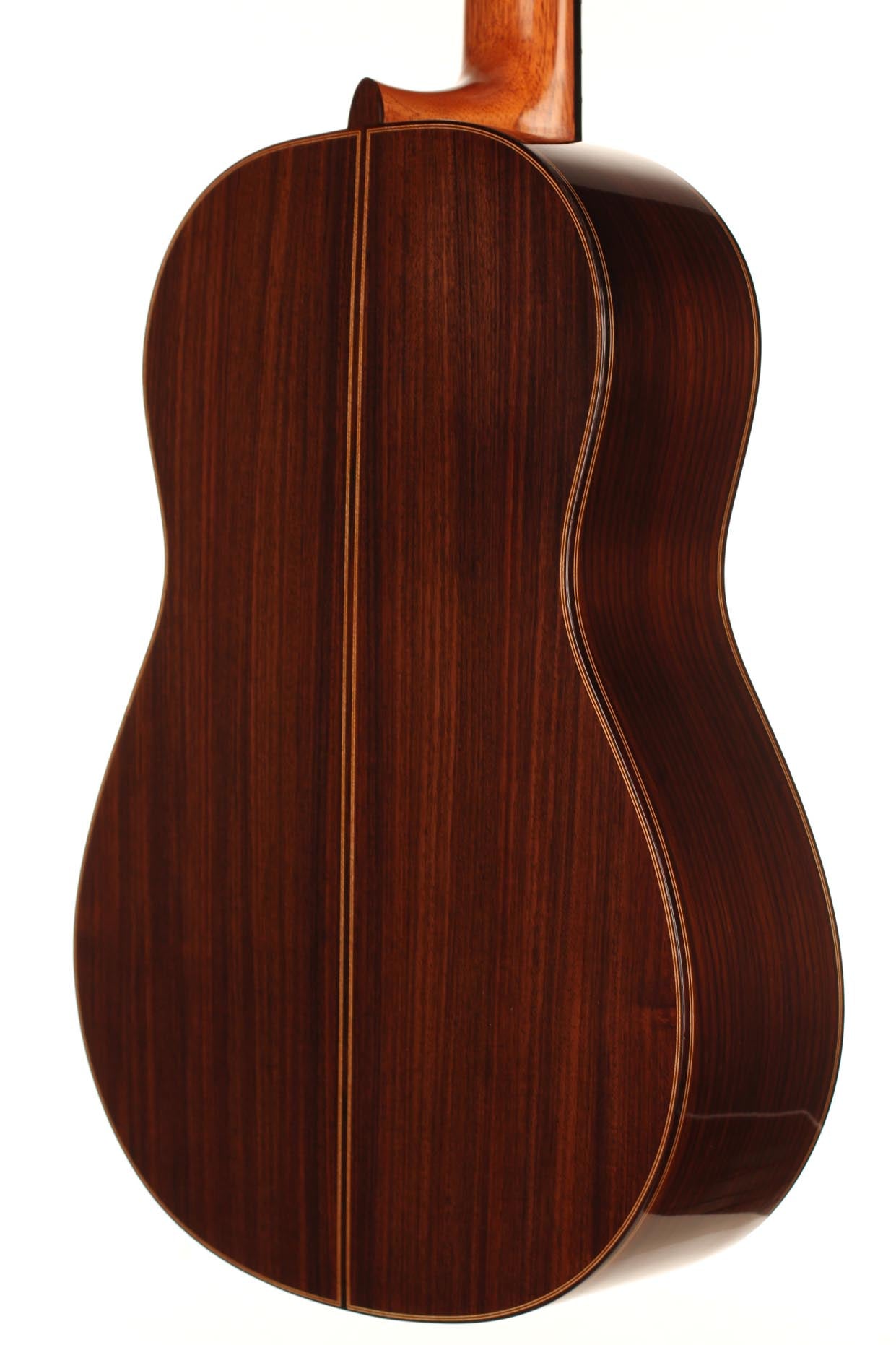 This beautiful guitar was built in 1987 and is in extraordinary good condition. It is in pristine condition and wears only a few superficial marks of playing. It is a fine and sober instrument with a very feminine plantilla. Several details such as the heel, the rosette and the choice of tone woods show very refined aesthetic taste. This guitar is a real pleasure to play and is perfectly set up, so the articulation of musical phrases comes out clear and transparent. It is a very balanced instrument, with a real soul and a strong personality. The tuning machines are made by Fustero. A hard-shell case is included.