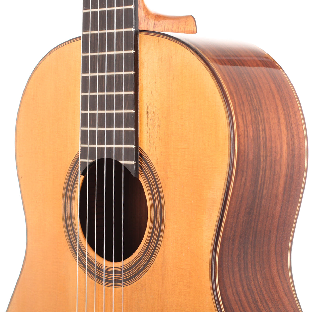 Preis auf AnfrageGitarrenbauer: Hermann Hauser IIBaujahr: 1956Decke: SpruceBoden und Zargen: Brazilian rosewood (CITES certified)Deckenoberfläche: French polishKorpusoberfläche: French polishLuftresonanz: F sharp / GGewicht (g): 1440Mechaniken: LandstorferZustand: Excellent -