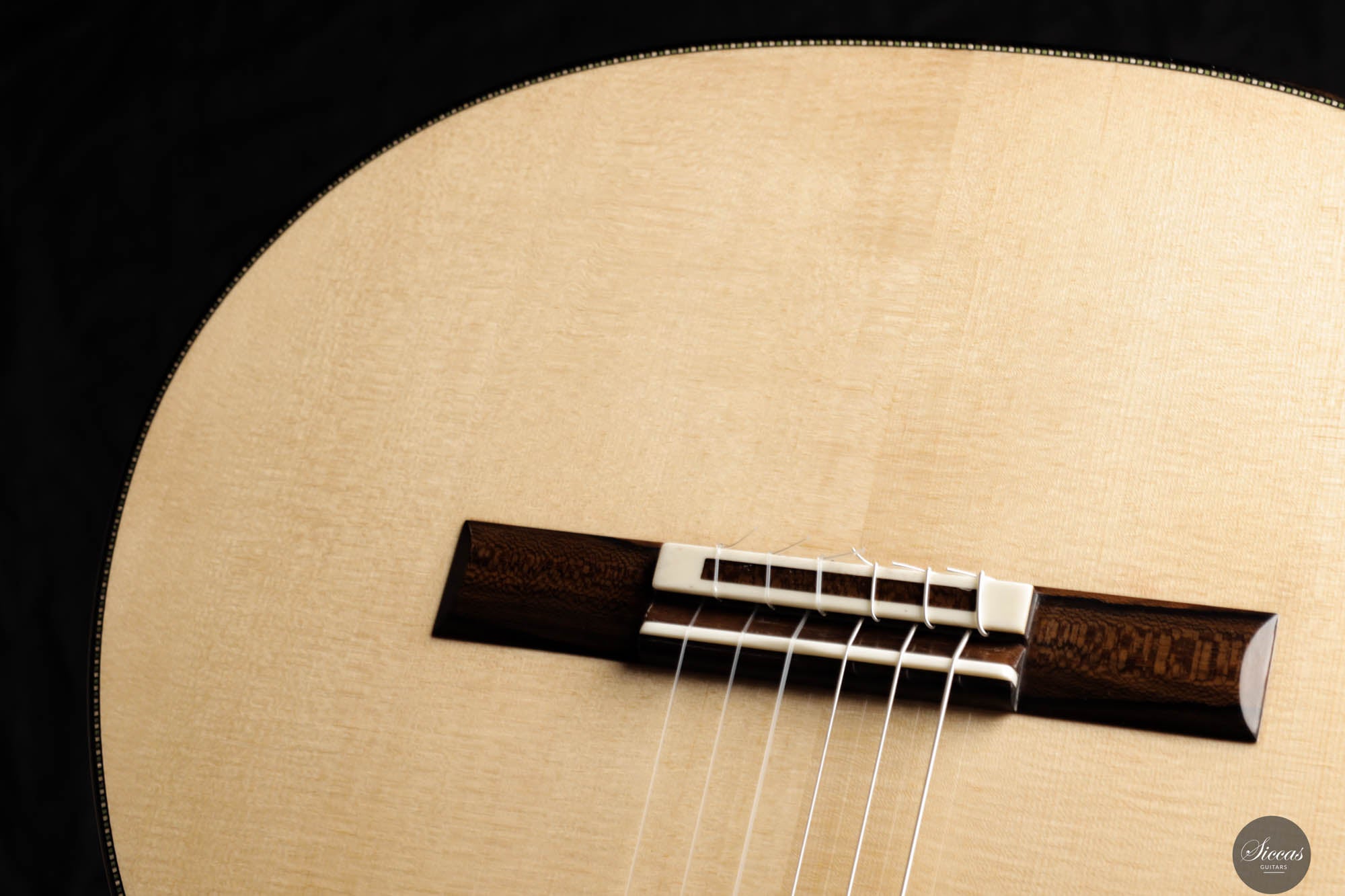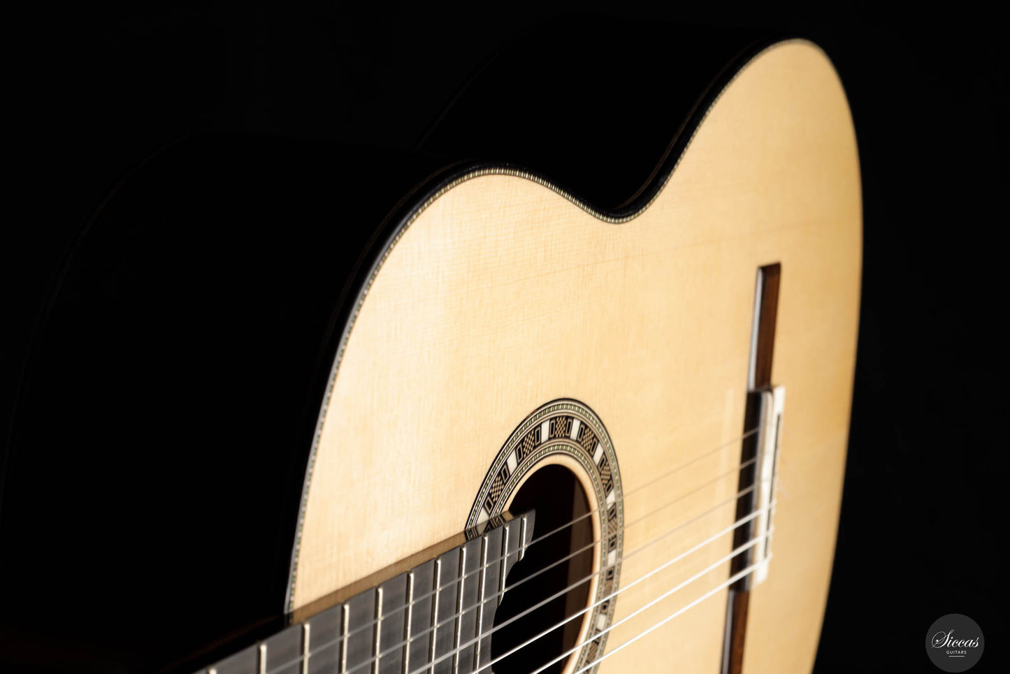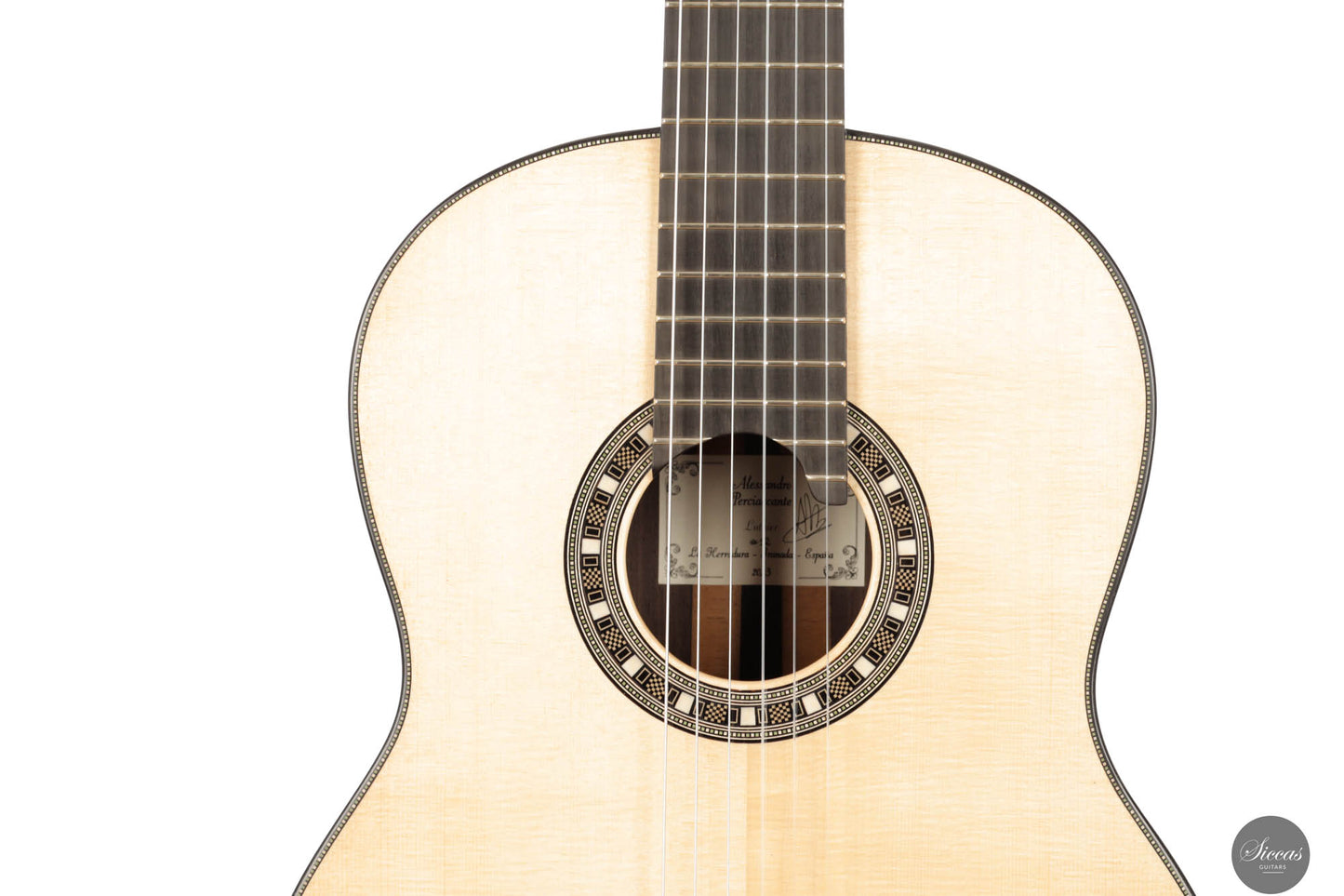 Alessandro Perciaccante ist ein klassischer Gitarrenbauer, der sich der Herstellung schöner, einzigartiger Gitarren widmet, die den individuellen Bedürfnissen seiner Kunden entsprechen. Er entdeckte seine Leidenschaft für den Gitarrenbau am Europäischen Institut für Gitarrenbau in Spanien, wo er unter der Anleitung des Gitarrenbaumeisters Stephen Hill und seines Lehrlings Evan Kingma seine erste Gitarre baute. Perciaccante verliebte sich in den Prozess des Gitarrenbaus und beschloss, zu bleiben und Hills Lehrling zu werden. Derzeit arbeitet er als Hills Assistent und als Lehrer in den Gitarrenbaukursen der EIGM. Perciaccante hat sich auf den Bau von klassischen und Flamenco-Gitarren spezialisiert und folgt dabei der traditionellen spanischen Bauweise. Seine Gitarren sind von der Schule der Gitarrenbauer aus Granada beeinflusst, insbesondere von der Arbeit von Antonio Marin Montero und seiner Zusammenarbeit mit dem französischen Gitarrenbauer Robert Bouchet. Er lässt sich auch von den großen Gitarrenbauern der Vergangenheit inspirieren, darunter Don Antonio de Torres, der als der Vater der spanischen Gitarre gilt. Er baut jedes Jahr eine begrenzte Anzahl von Gitarren, was es ihm ermöglicht, den hohen Grad an Raffinesse zu erreichen, den er sich für seine Instrumente wünscht. Im Jahr 2019 nahm er am Internationalen Gitarrenbauwettbewerb Antonio Marin Montero teil, wo er mit seiner Flamenco-Gitarre den vierten Platz belegte – eine bemerkenswerte Leistung für jemanden, der zu diesem Zeitpunkt erst vier Gitarren gebaut hatte.