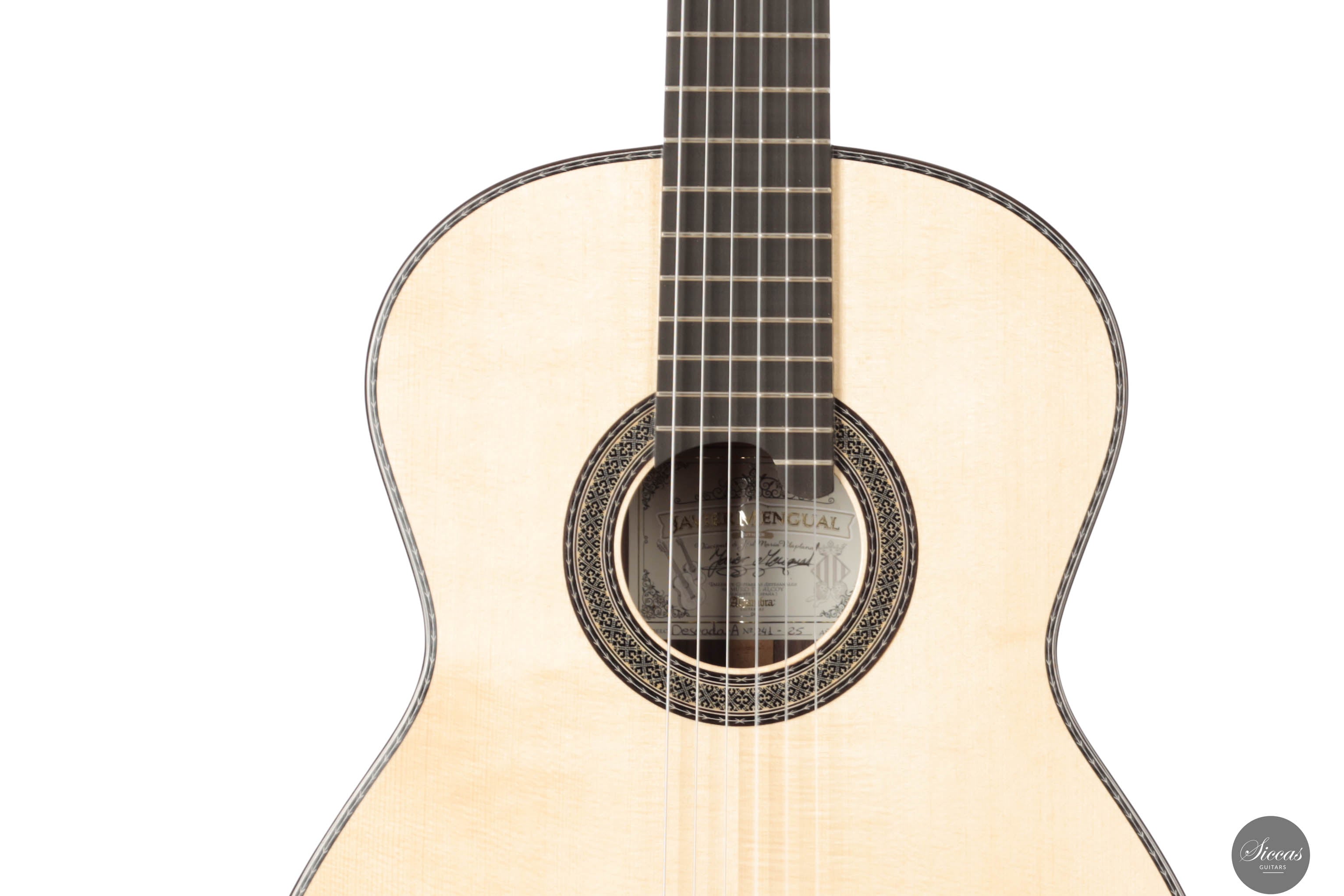 Javier Mengual is one of the most experienced and respected master luthiers at Alhambra Guitars, known for his role in creating high-end, handcrafted concert instruments within the company’s workshop in Muro d’Alcoy, Spain. Over the course of his career, he has refined his methods through collaboration with distinguished musicians and fellow guitar makers, maintaining a strong commitment to both Spanish guitar tradition and technical excellence. His work is characterized by deep tonal sensibility, meticulous craftsmanship, and a keen understanding of the needs of concert players. The “Deseada” model holds a special place in Mengual’s career. Developed through years of feedback from professional guitarists and enriched by a close collaboration with Joaquín Clerch, it embodies his vision of a modern concert instrument that retains the essential warmth and identity of the Spanish classical guitar. The model is also a personal tribute to his wife, with whom he shares a lifelong connection to the art of guitar making. Artists such as Julia Trintschuck and Ali Arango have chosen the Deseada as their main concert instrument, underlining its musical depth and expressive capability.About the guitar
