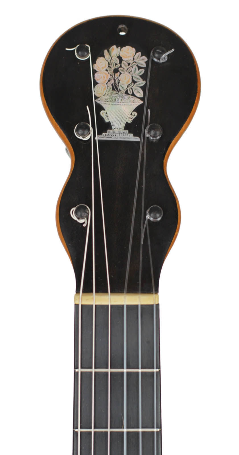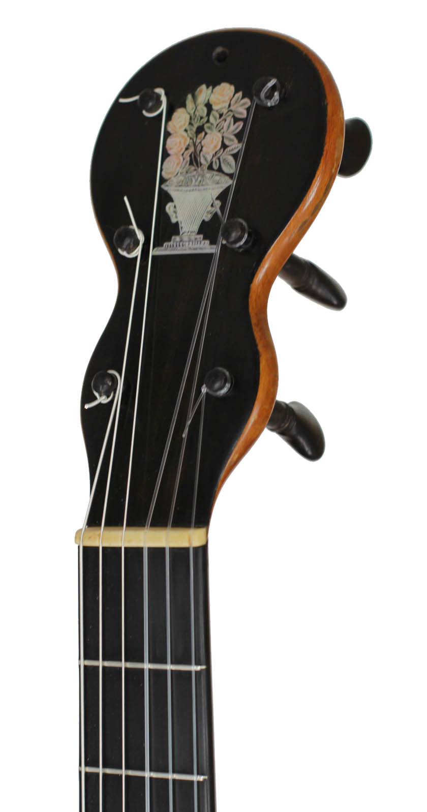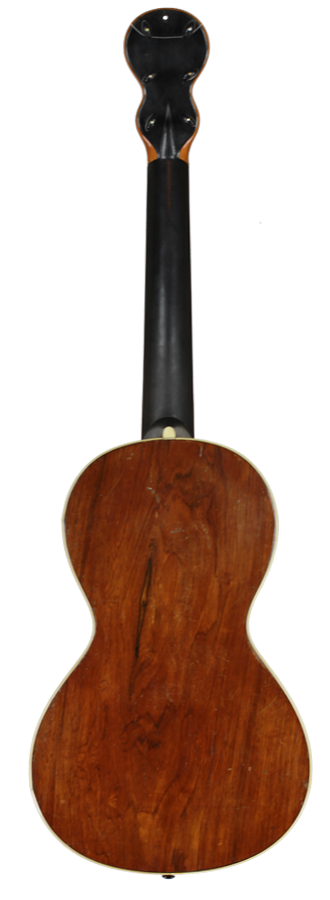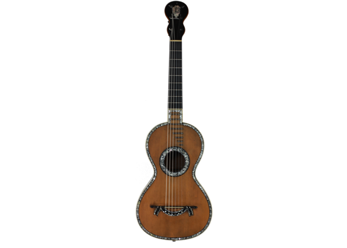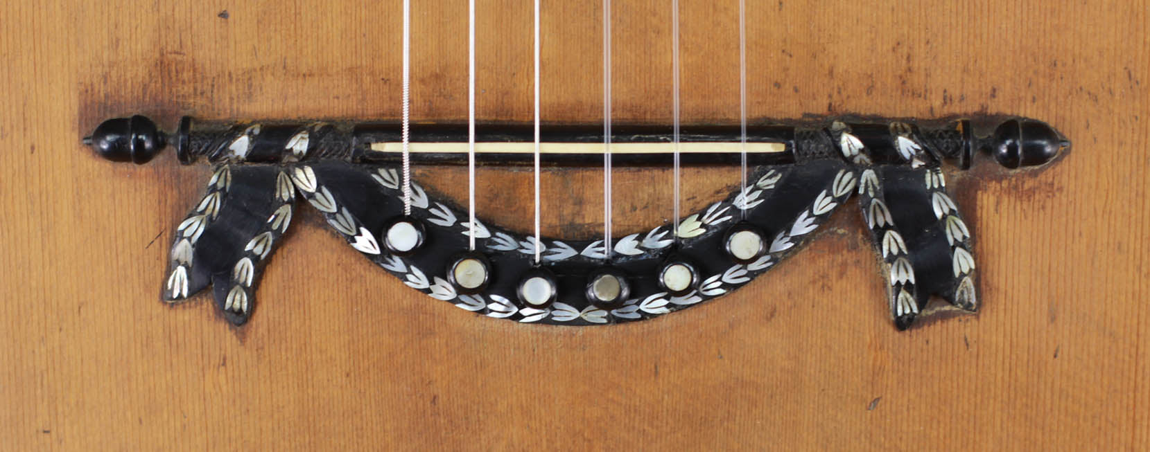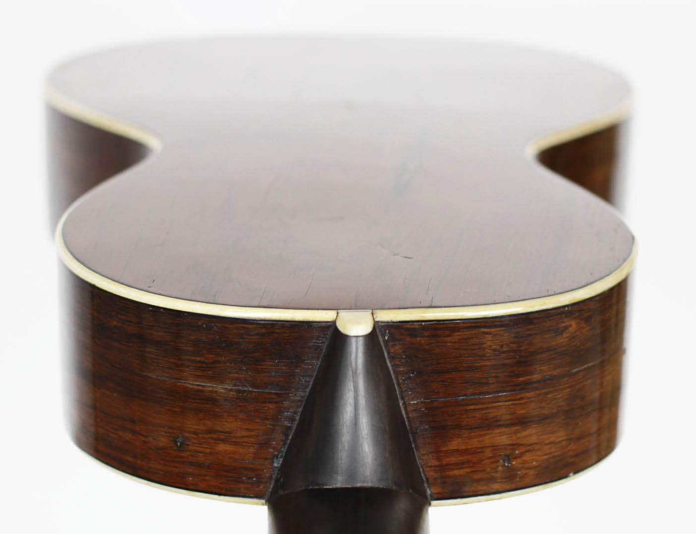Diese Gitarre stammt aus der Werkstatt von Alphonse Couturieux (siehe Stempel auf dem Boden)und wurde circa 1830 gebaut. Die reichlich mit Perlmutt verzierte Gitarre erinnerte an die Gitarren aus dem Workshop Aubry-Maire. Die Decke ist aus feinjähriger Fichte, der Boden und die Zargen sind aus Palisander. Der Boden ist im Inneren mit einem Fichtenfurnier belegt. Bis auf leichte Gebrauchspuren ist die Gitarre in einem sehr guten Zustand und perfekt spielbar.