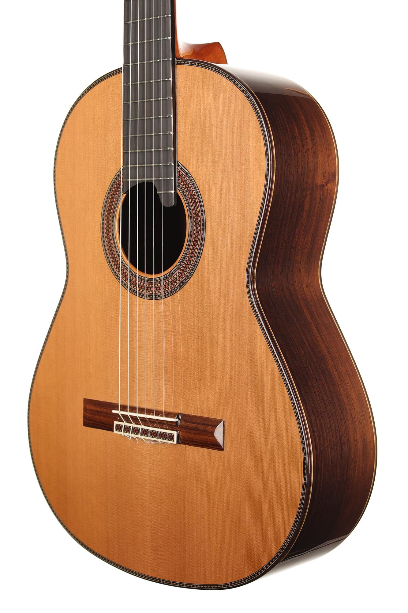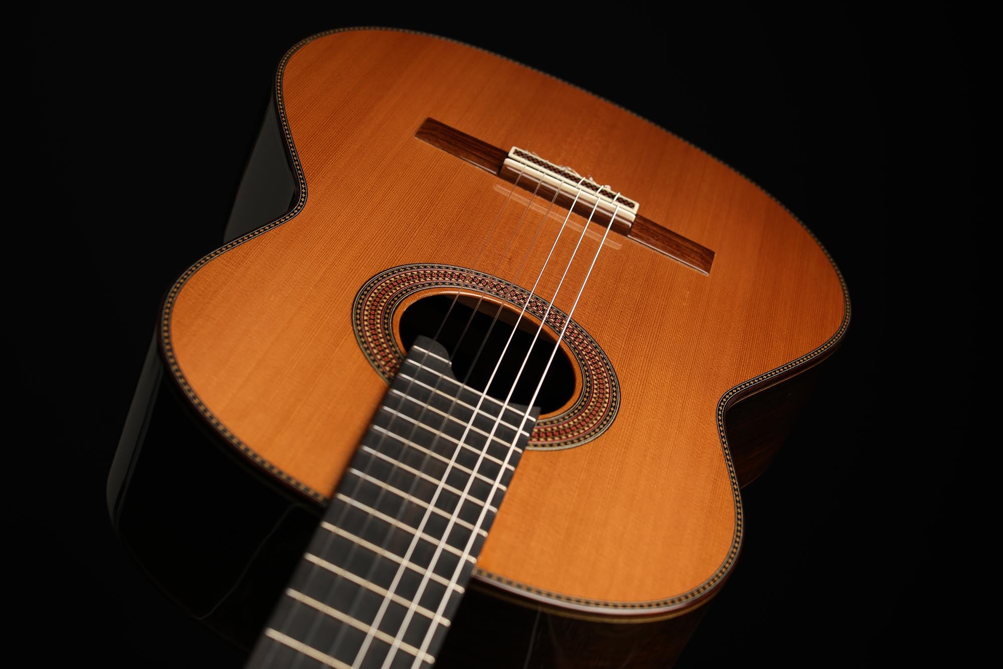 Die klassische Gitarre mit ihren weichen Nylonsaiten und ihrem charakteristischen Timbre ist zum Symbol der Kammermusik, der spanischen Tradition und des Konzertrepertoires geworden. Ihre moderne Form prägte Antonio de Torres im 19. Jahrhundert, indem er den Standard für Korpus, Fächerbeleistung und die 65-Zentimeter-Mensur setzte, die bis heute verwendet werden. Instrumente dieser Kategorie eröffnen eine reiche Palette von den feinen romantischen Miniaturen Tárregas bis zu den majestätischen Konzerten Rodrigos. Hier finden Sie Gitarren, die historische Kontinuität bewahren und zugleich zu neuen Interpretationen anregen.
