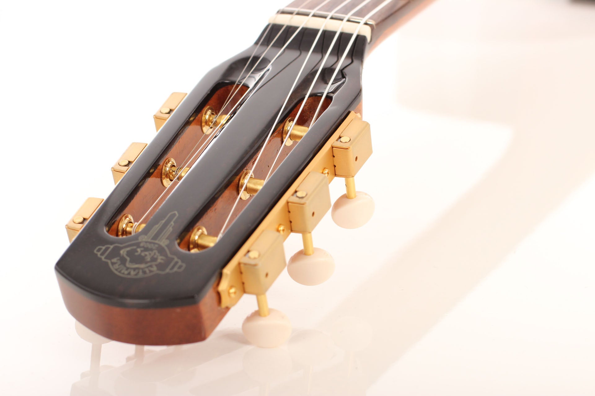 Die klassische Gitarre mit ihren weichen Nylonsaiten und ihrem charakteristischen Timbre ist zum Symbol der Kammermusik, der spanischen Tradition und des Konzertrepertoires geworden. Ihre moderne Form prägte Antonio de Torres im 19. Jahrhundert, indem er den Standard für Korpus, Fächerbeleistung und die 65-Zentimeter-Mensur setzte, die bis heute verwendet werden. Instrumente dieser Kategorie eröffnen eine reiche Palette von den feinen romantischen Miniaturen Tárregas bis zu den majestätischen Konzerten Rodrigos. Hier finden Sie Gitarren, die historische Kontinuität bewahren und zugleich zu neuen Interpretationen anregen.Alle Produkte der Kollektion ansehen -