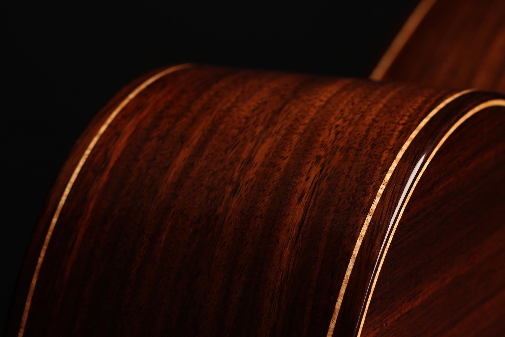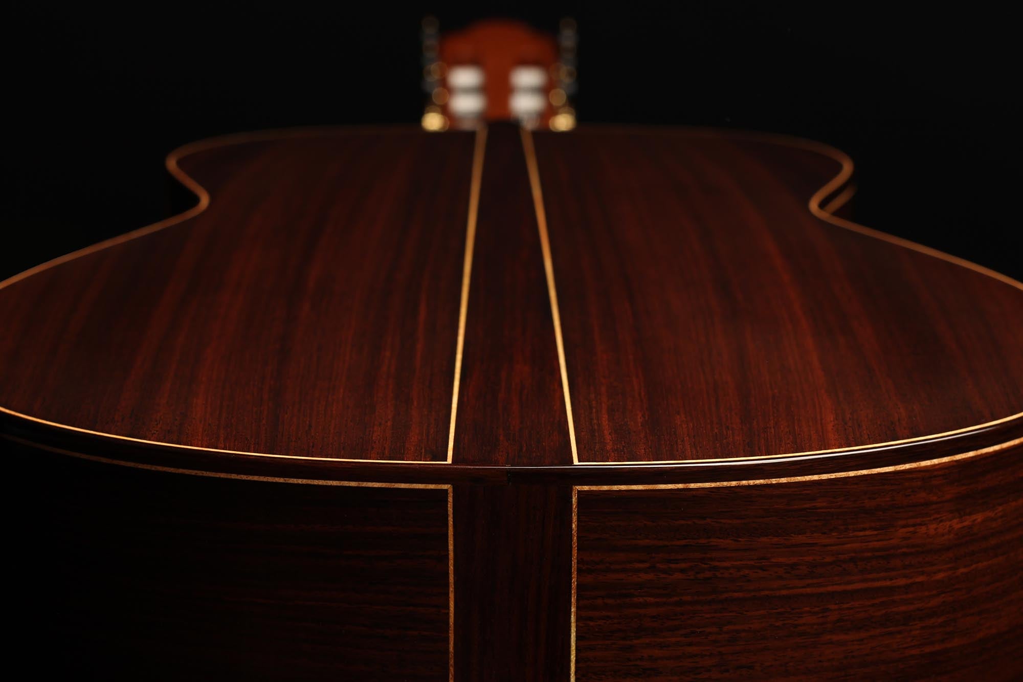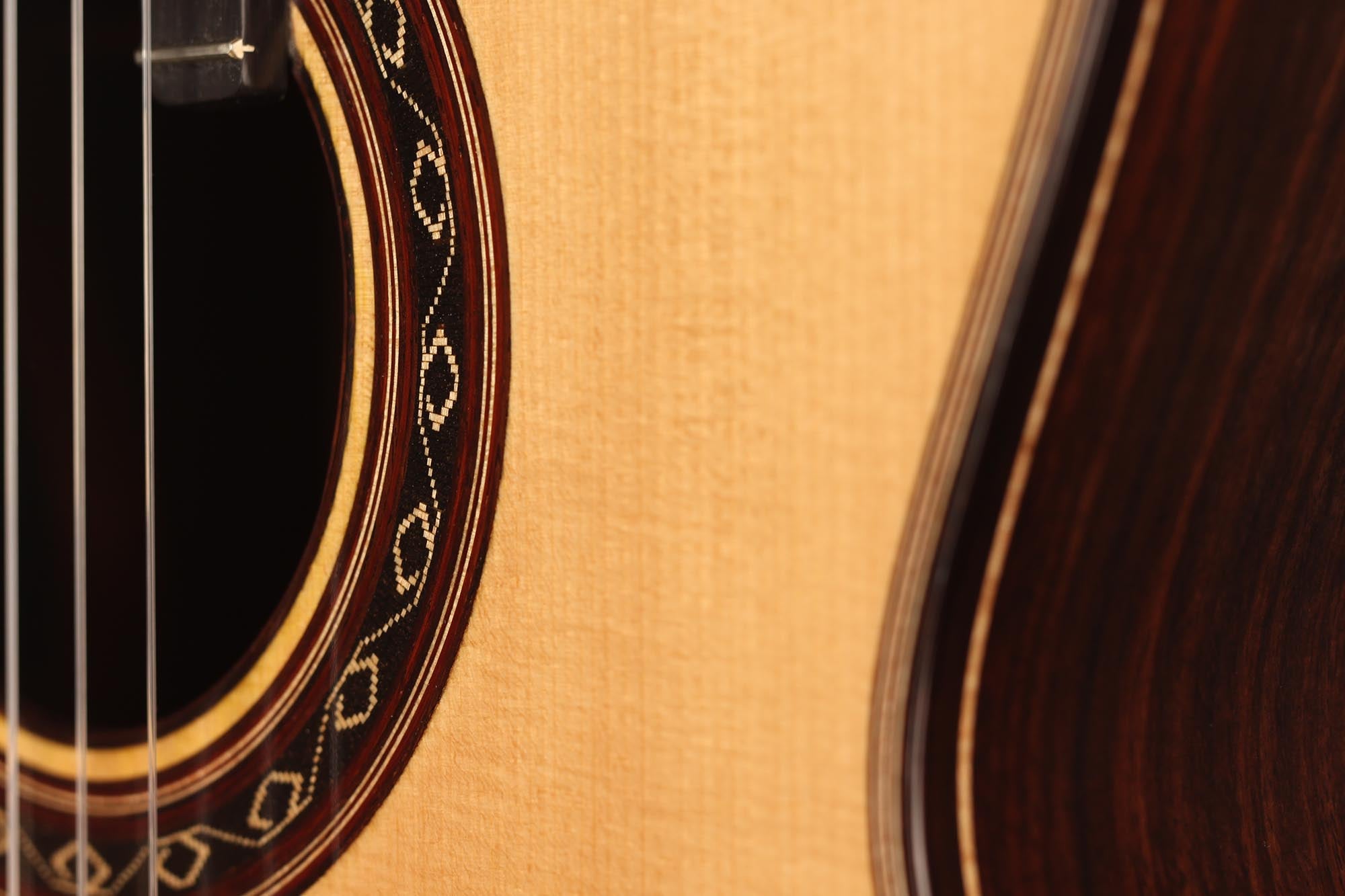 Diese neue Gitarre wurde Anfang 2020 gebaut. Die Decke ist aus Fichte, Boden und Zargen sind aus hochwertigem indischem Palisanderholz gefertigt. Ihr Klang ist hell und intensiv, mit starken Bässen, die die Gitarre gut projizieren lassen. Insgesamt ist dies ein gelungenes Instrument mit einem gehaltvollen Klang und angenehmer Bespielbarkeit.