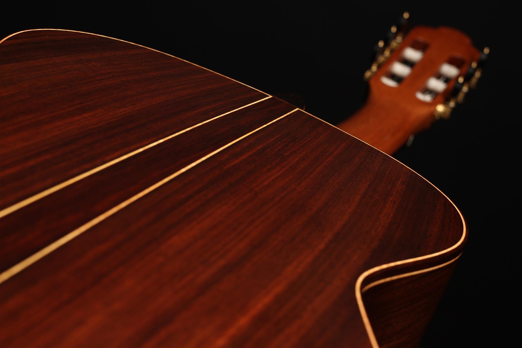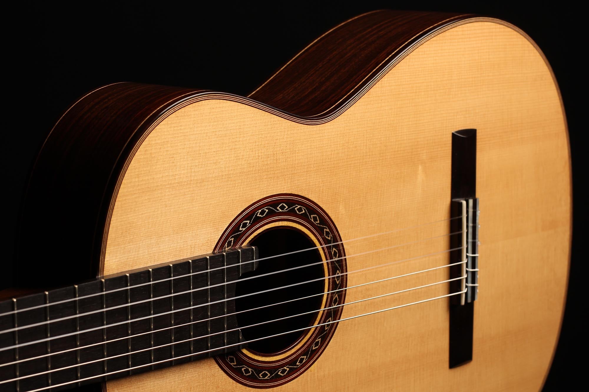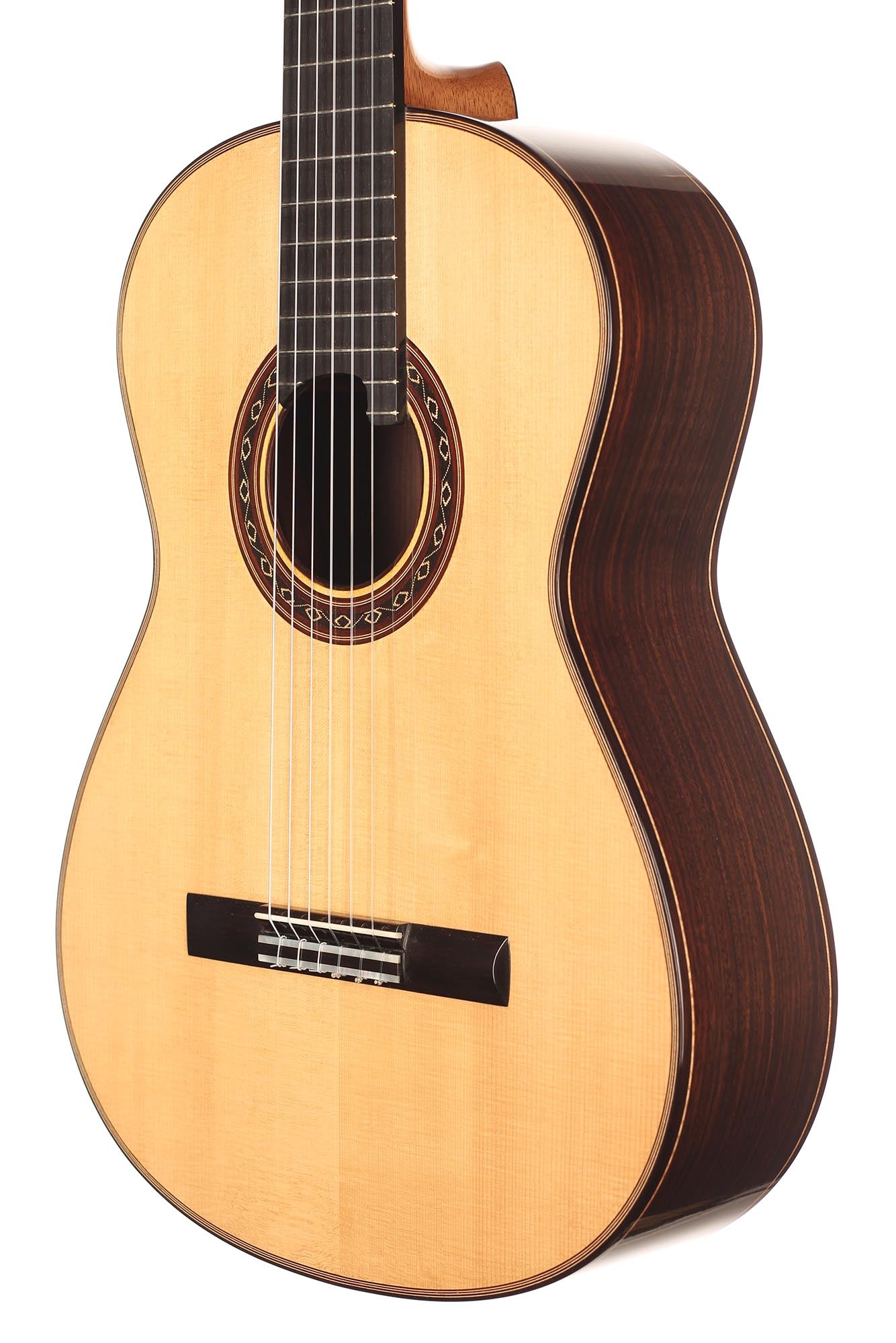 Diese neue Gitarre wurde Anfang 2020 gebaut. Die Decke ist aus Fichte, Boden und Zargen sind aus hochwertigem indischem Palisanderholz gefertigt. Ihr Klang ist hell und intensiv, mit starken Bässen, die die Gitarre gut projizieren lassen. Insgesamt ist dies ein gelungenes Instrument mit einem gehaltvollen Klang und angenehmer Bespielbarkeit.