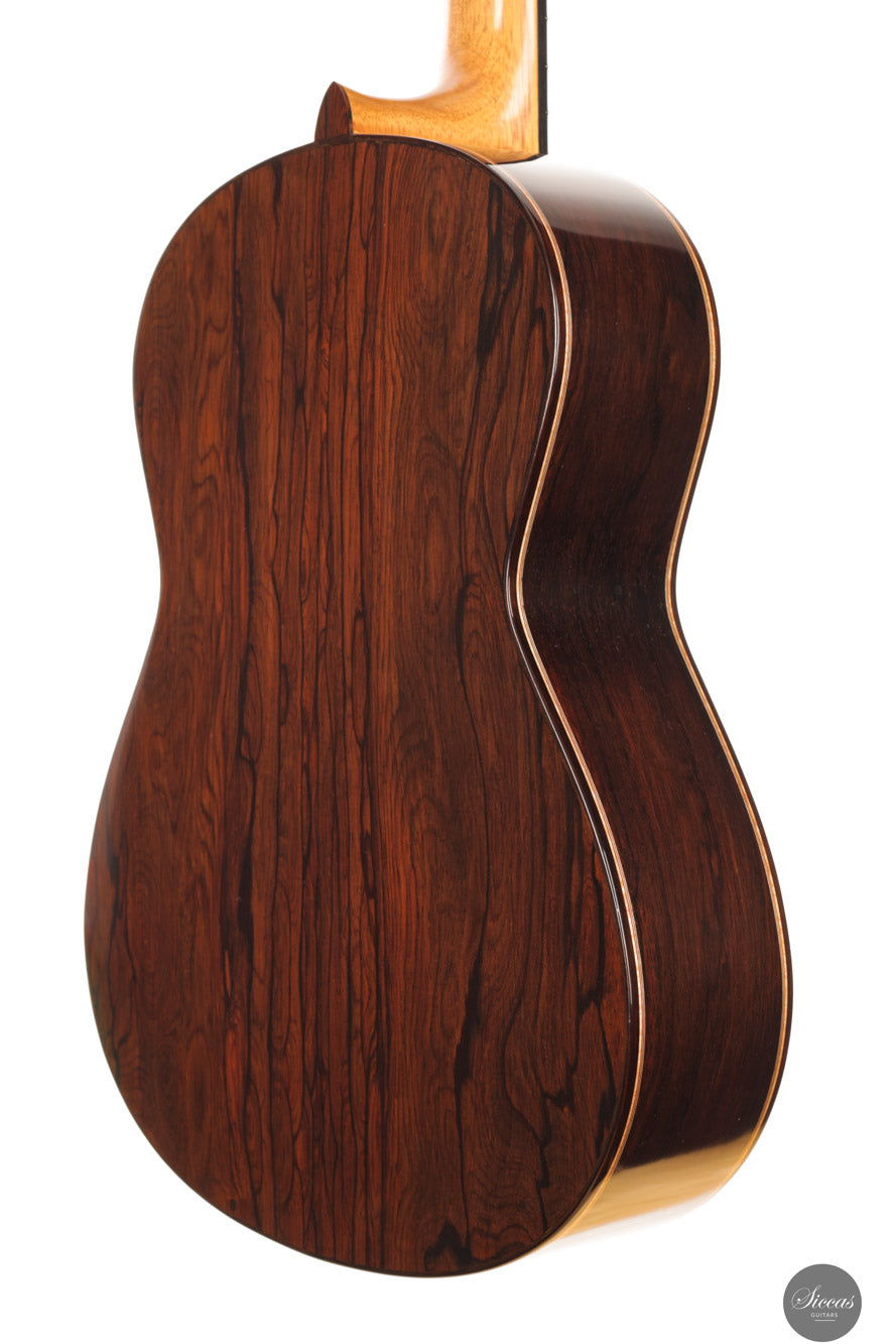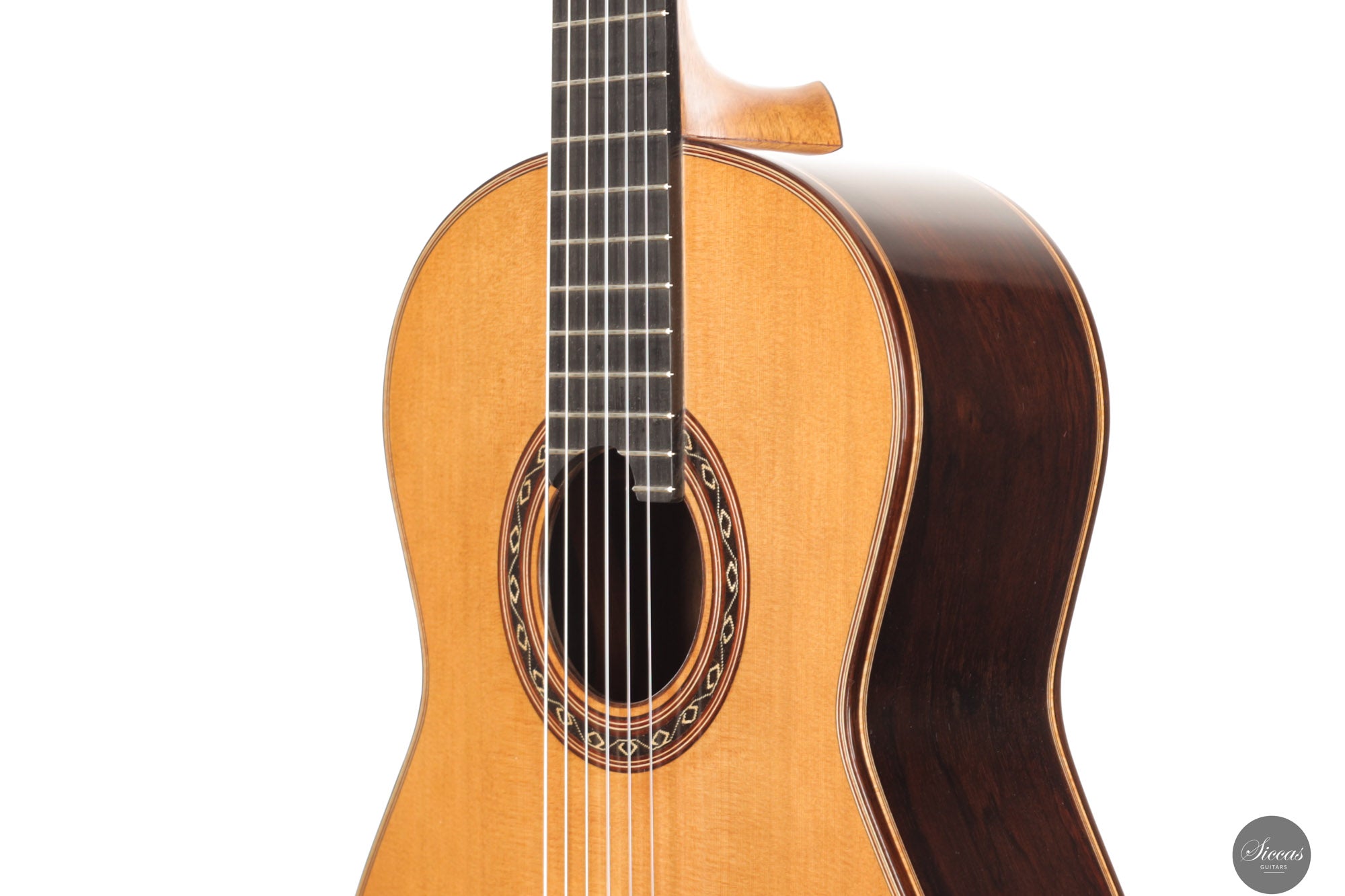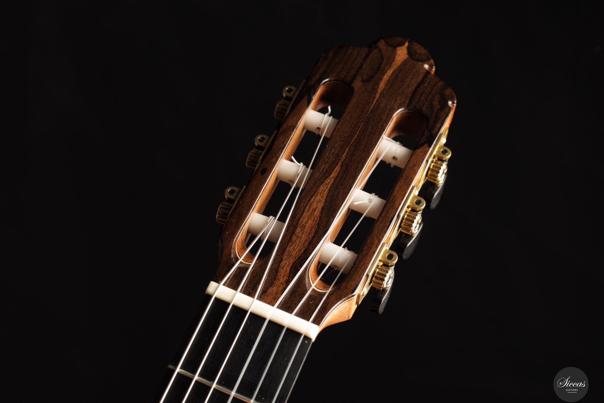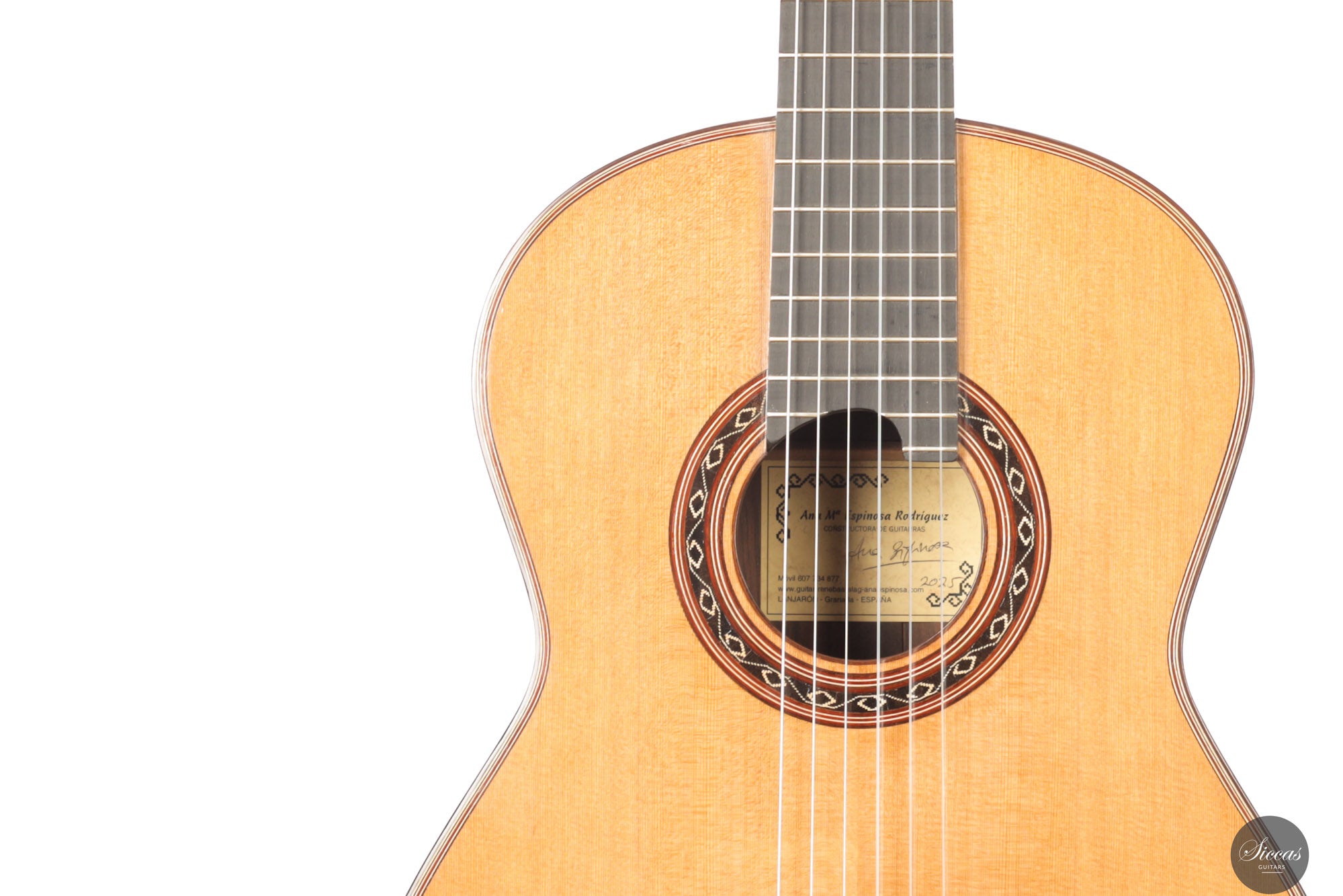 Ana Maria Espinosa Rodríguez began her guitarmaking career in 1996 under the mentorship of René Baarslag. Her initial focus on the Antonio de Torres model led her to conduct extensive physical and acoustic analyses, forming the foundation for a personal model that reflects both her research and Baarslag’s deep expertise. Espinosa Rodríguez’s guitars are known for their expressive tonal qualities and graceful aesthetics, consistently featuring high power and strong projection. These attributes contribute to a responsive instrument that supports effortless and nuanced performances. Each guitar is marked by her distinctive headstock and rosette design, built from carefully selected woods and finished to the highest standard.About the guitar